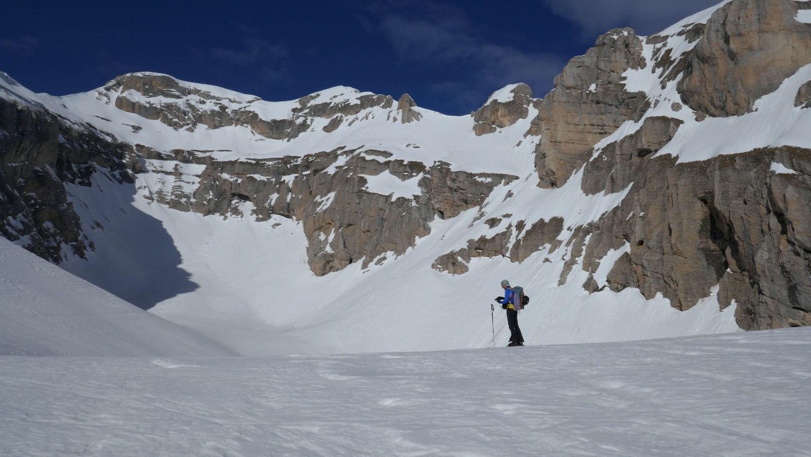 En dessous du passage expo, c'est beaucoup mieux et on skie jusqu'au pied du pas de la cloche. On mange un bout avant de remonter. Un troupeau de chamois est juste à côté.