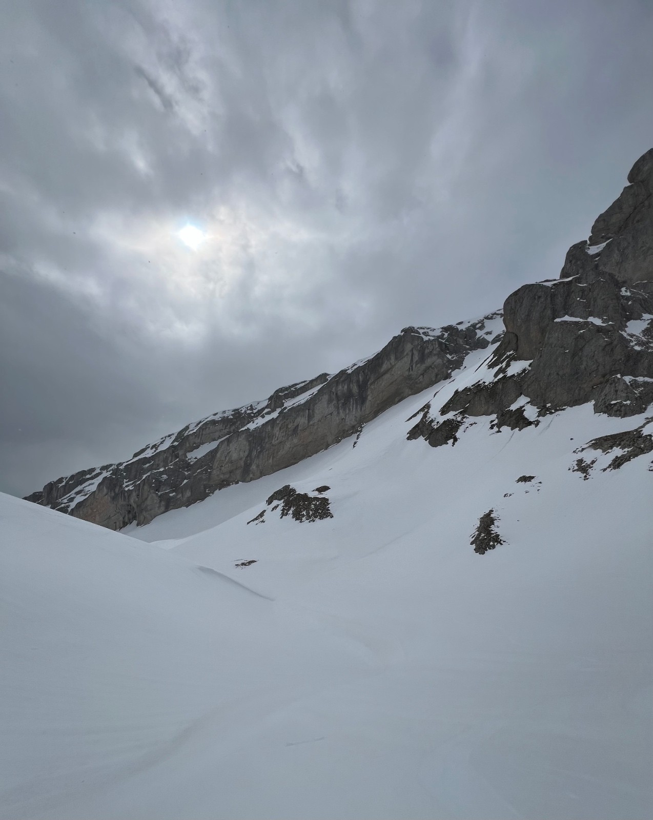 Itinéraire suivi : Depart de la cabane de l'oriol, longue traversée pour retrouver la montée classique Grand Ferrand, retour pas de la coche, montée crête de l'etoile, descente en nord par le petit couloir a coté de la Baume des Toulousains, Vallon de la Truchiere remontée au petit collet sous la tête de l'oriol retour cabane