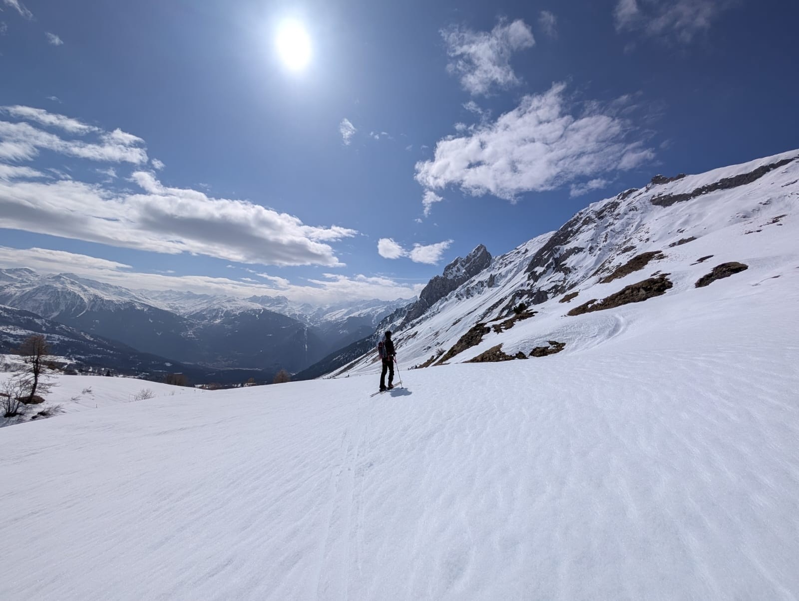 Météo/températures : Beau, chaud à la montée, Du vent à l'approche du col et en haut. Légèrement couvert à la mis après midi, on a même eu quelques micro flocon
