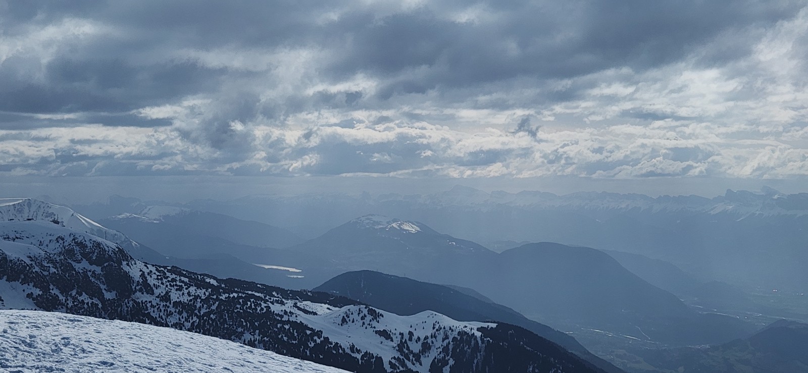 Altitude de chaussage/déchaussage : montée côté Lac Crozet = c'est le carnage, alternance de glace, plaques pleines de caillou et grandes zones de terre. Ca chausse donc à la sortie des lacets de la forêt vers 1680m. Descente côté Colon Ouest. Ca skie presque jusqu'aux 4 chemins (2 petits déchaussages obligatoires) puis skis sur le sacs au parking.