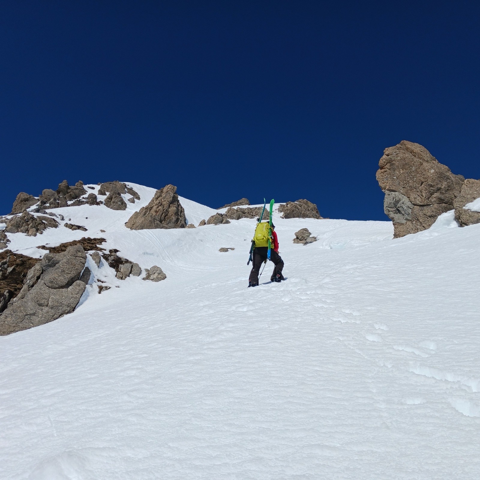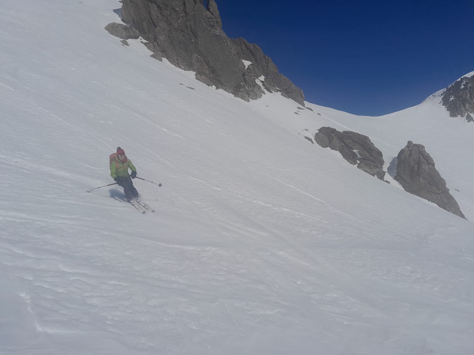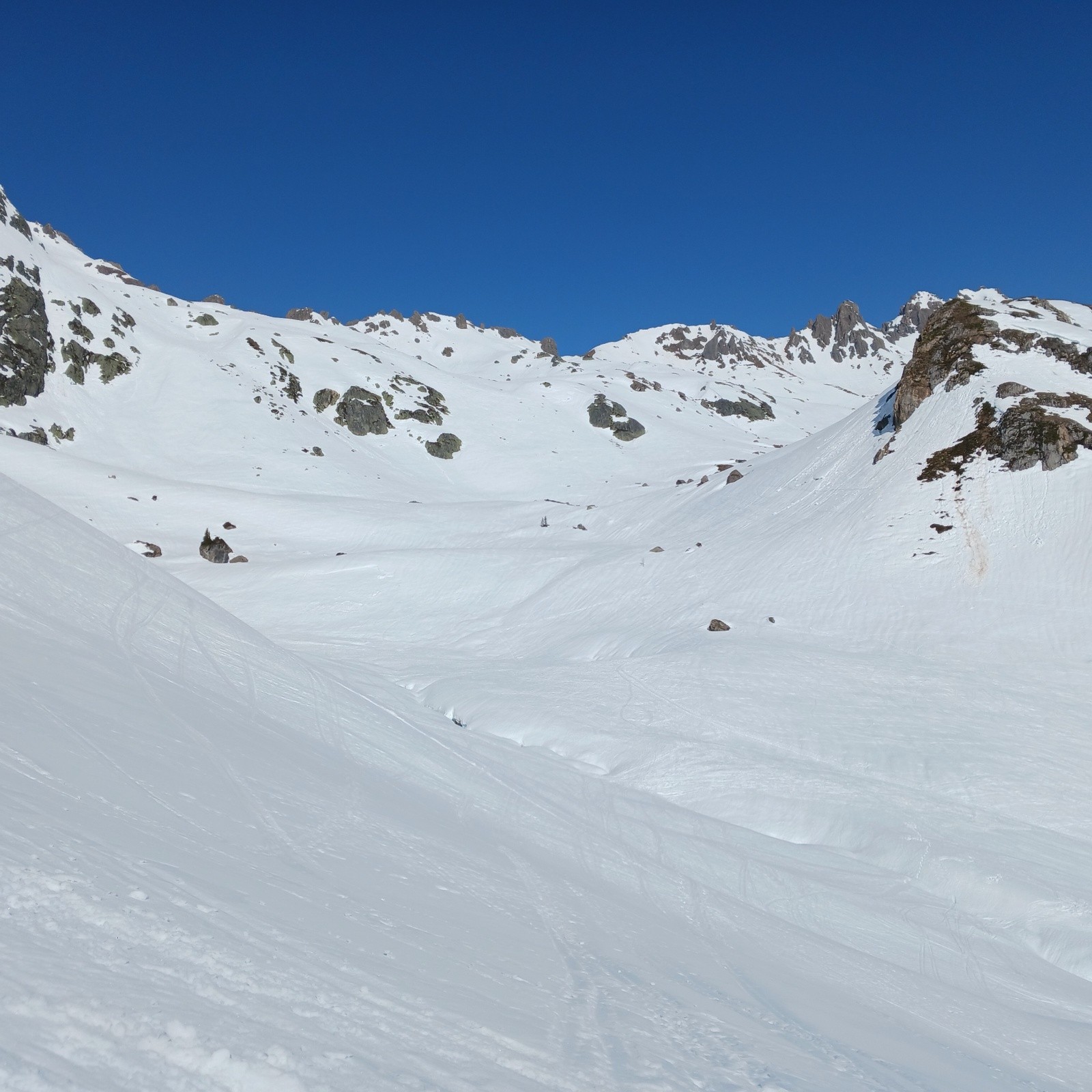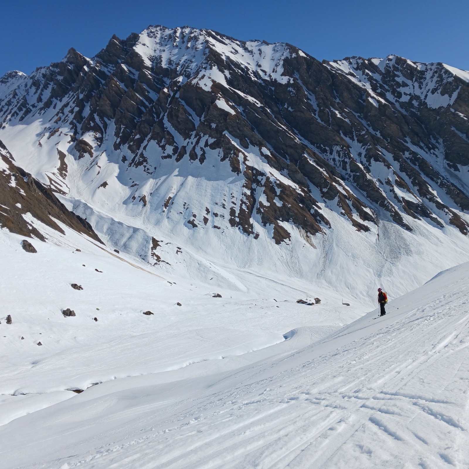 Conditions pour le ski : Léger regel, la neige du matin est un peu zippante. Conditions printanières excellentes pour la descente à partir de 13h. Le couloir Sud de Presset est parfaitement décaillé. Puis neige béton mais bien lisse pour rejoindre le refuge. Plus bas, et jusqu'à l'arrivée, festival de moquette. C'est à peine si on a poussé aux bâtons dans le bas du Vallon de l'Ormente.