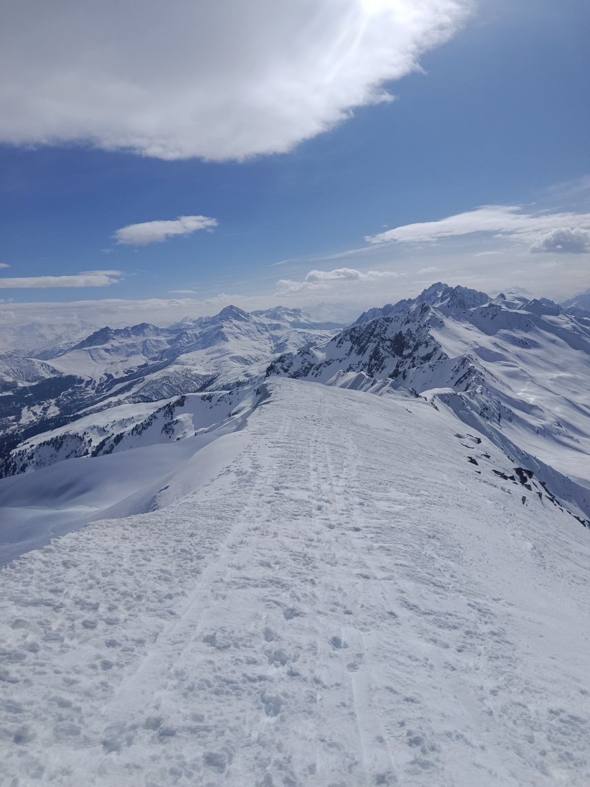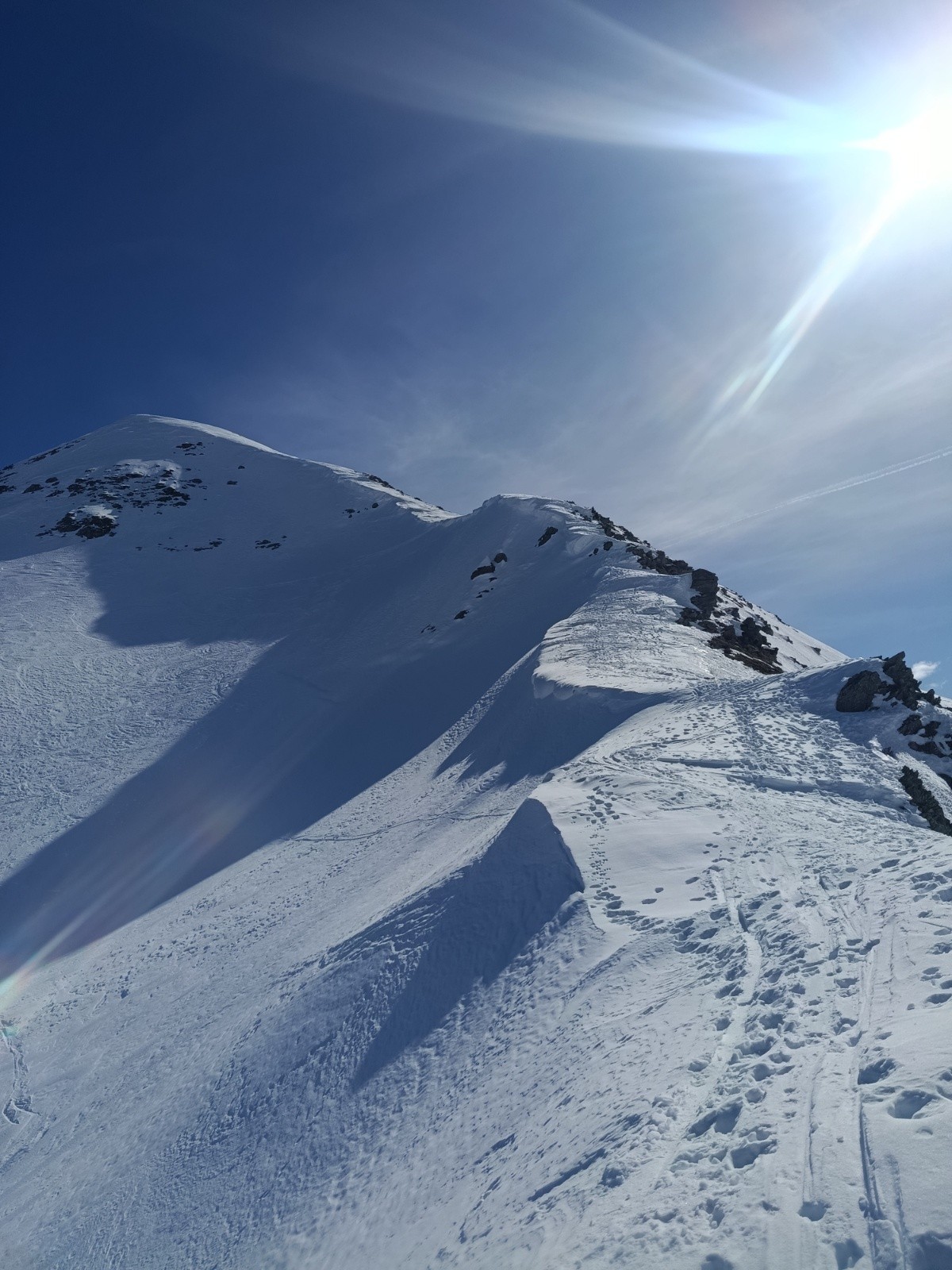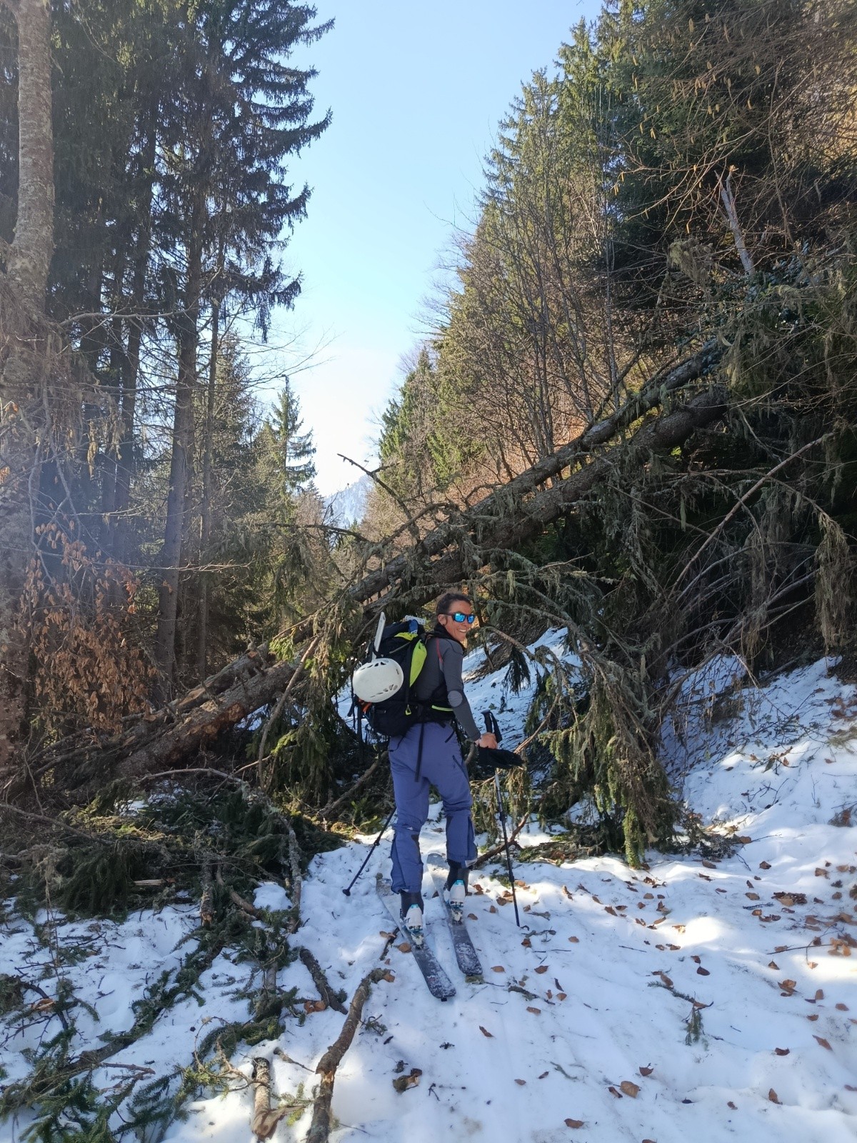 Conditions pour le ski : neige très changeante, globalement revenue mais quelques passages durs. Neige très lourde sous 1500