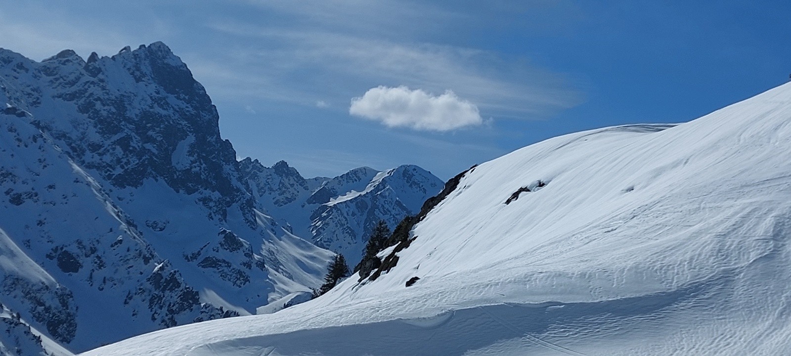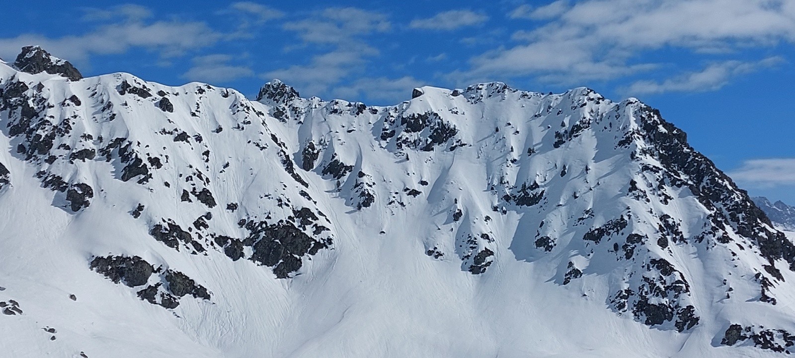 Conditions nivo et activité avalancheuse : RAS ce jour, mais résidus d'anciennes coulées d'ampleur (notamment celle du 22 février - grosse cassure et monstrueux dépôt encore bien visibles).