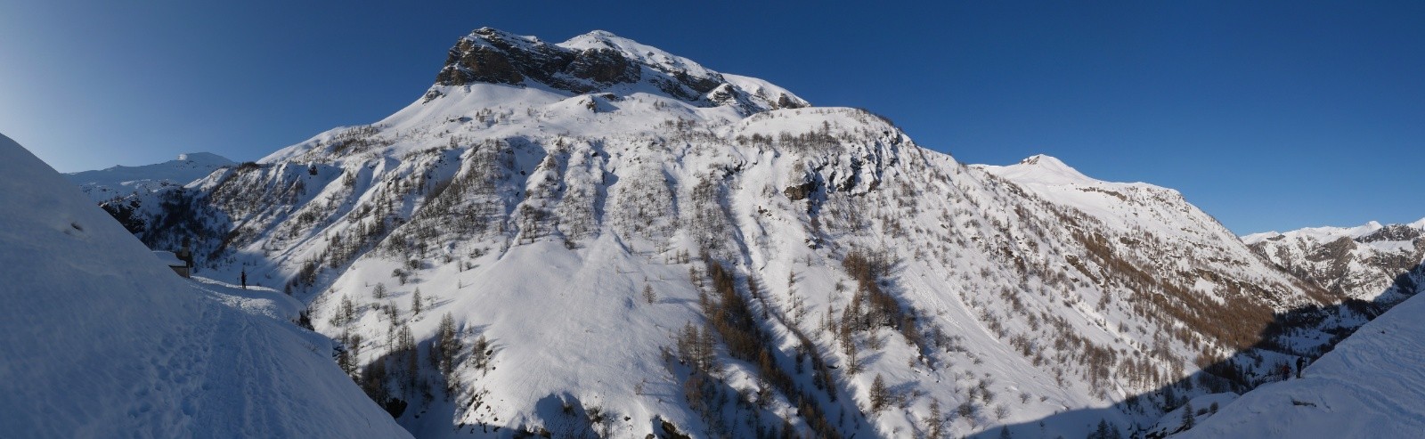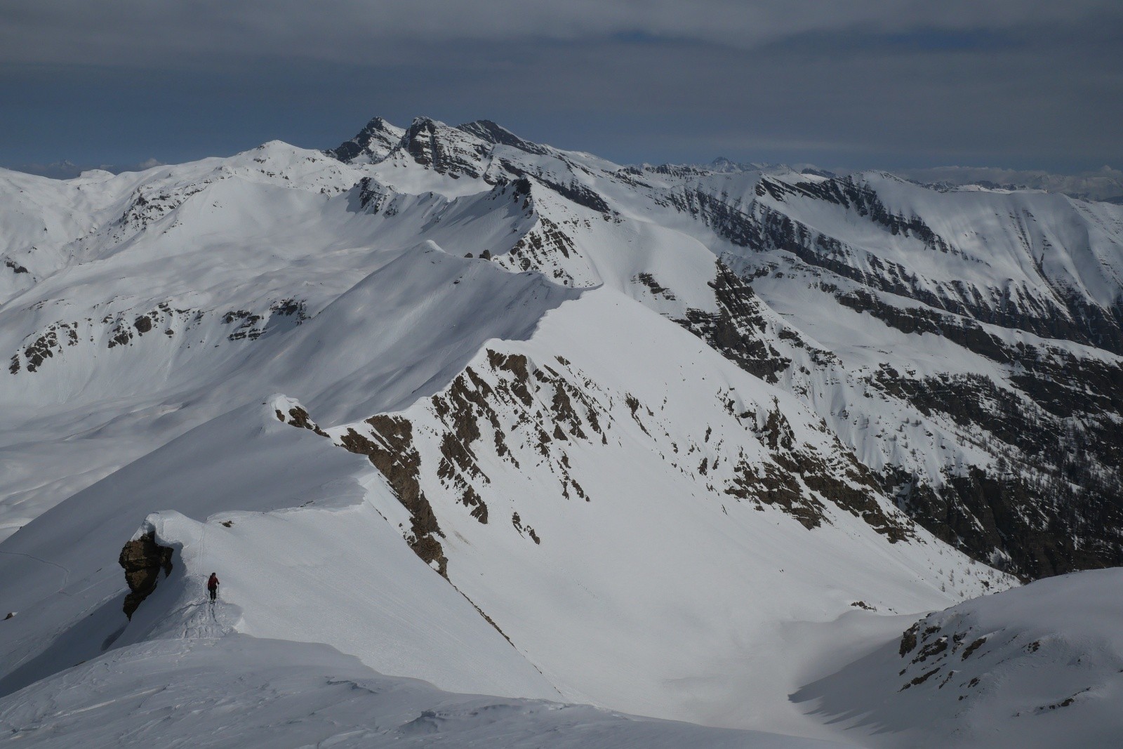 Une remontée par l'arête de l'Homme, toujours en brassant dans une épaisse couche de vieille poudreuse. Hop un petit sommet et une descente dans la meilleure vieille poudre de la saison. Rien à jeter. Enfin si, après il fallait se refaire les pistes de ski de fond mais finalement, on s'y fait. 13h l'équipe est au village de Prapic, dernier casse dale et il est déjà temps de charger les vélos.