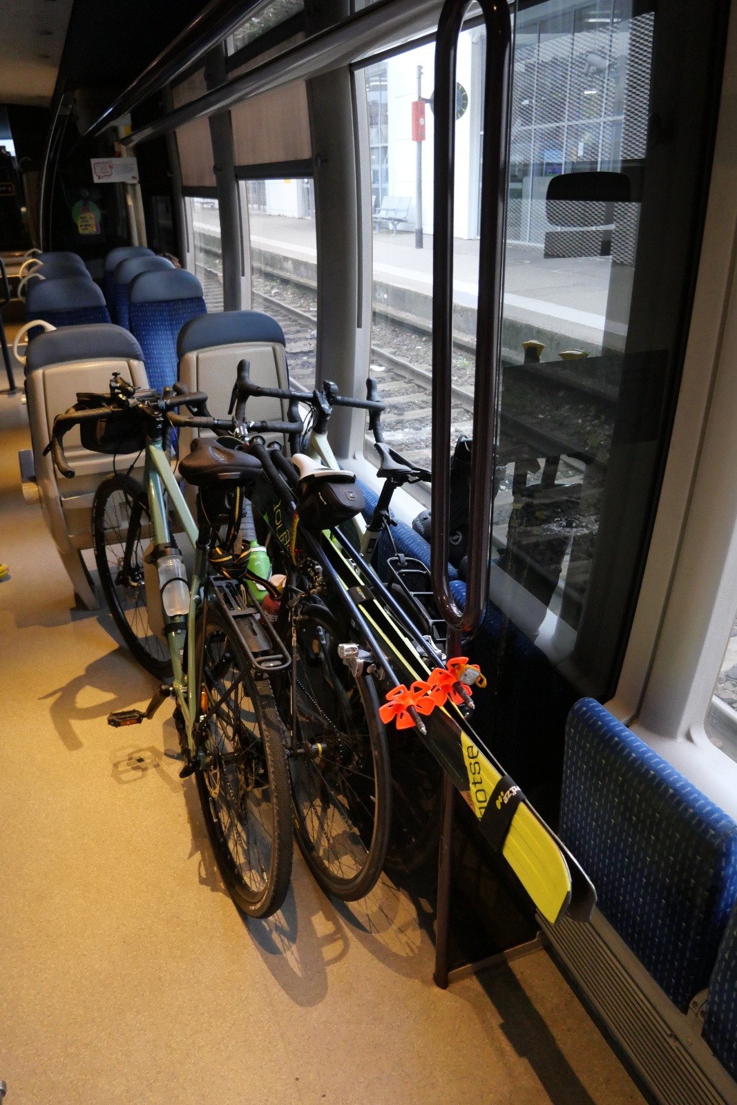 Et puis le train c'est l'occasion de contempler et de discuter, de faire connaissance et surtout, de lancer les premières parties de belote. Spéciale dédicace au conducteur de train qui lui-même est venu à vélo et se renseigne sur notre itinéraire.