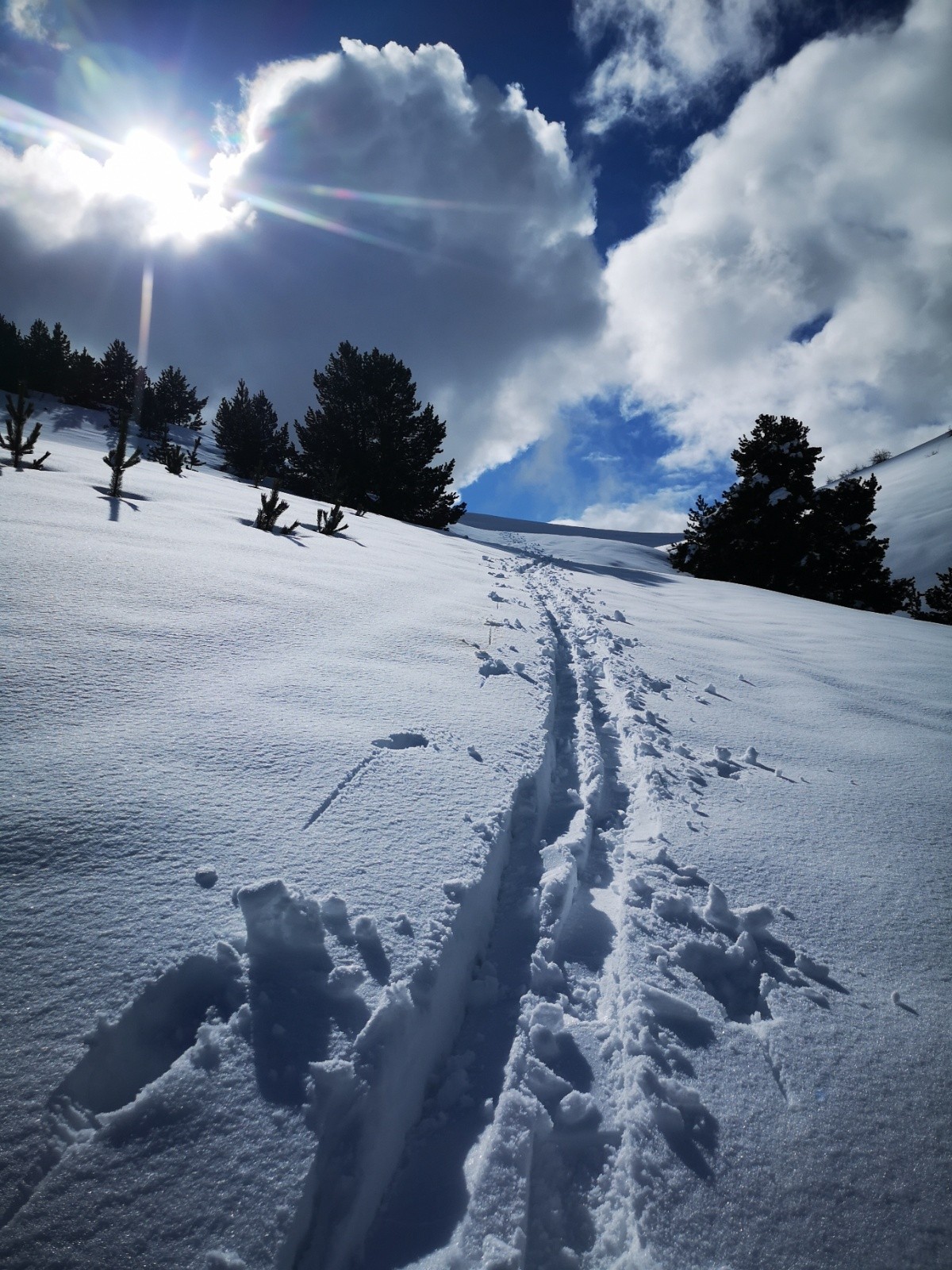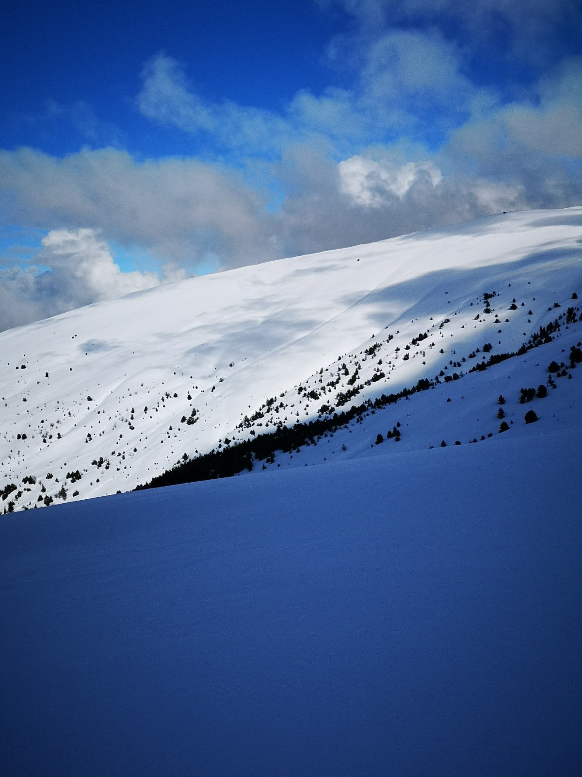 Conditions pour le ski : 5 à 25cms tombée après la pluie? Manteau bien trempé dessous mais agréable à tracer, dès passé 1700m la couche passe de 5 à 15 cms puis 20 à 25. Encore bon 1ère desc torrent corniche bon jusqu'à 1750 puis lourd, marseillais reste frais et bon en NW