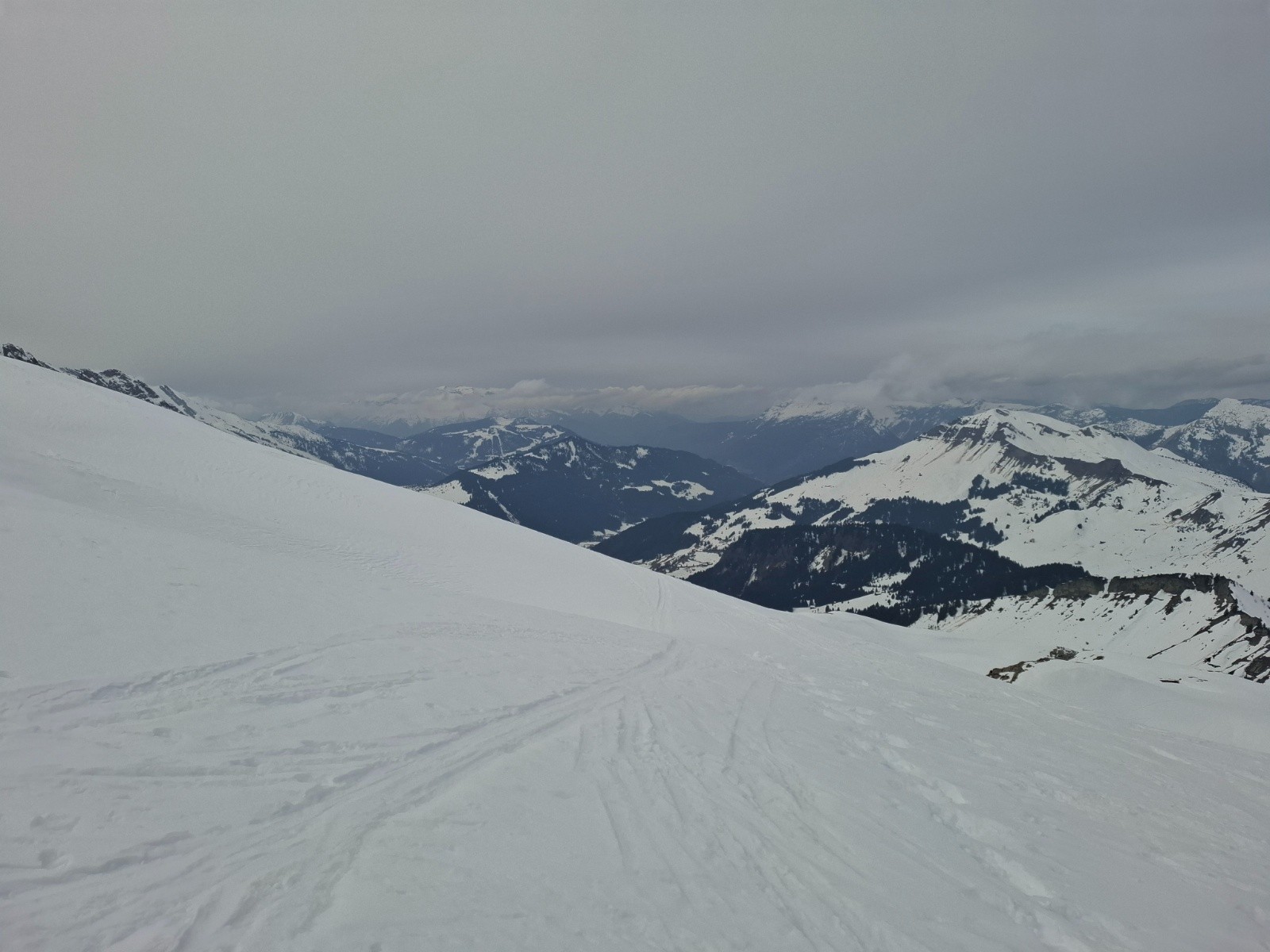 Récit : Départ de Lormay. Ciel bien maussade dès le départ, la pluie n'est pas loin mais finalement j'y échapperai, Neige molle, pas de regel. la montée au parking des Troncs passe très bien, un seul déchaussage pour traverser un ruisseau. Montée ensuite par la forêt à pied pour rejoindre Plattuy. Repeautage et montée dans la combe pour rejoindre la piste arrivant du col des Annes via le col de l'Oulettaz. On retrouve des traces que je suis jusqu’ en haut de la Carmélite. Quelques cailloux sur l'arête finale mais ca passe en Ski. Par contre ça commence à se boucher de plus en plus, avec du jour blanc, descente avec repérage des cairns pour retrouver la trace en direction du refuge de la Pointe Percée (ex Gramusset), la neige est béton sous le sommet de la Carmélite puis correcte type farine vers le milieu mais le manque de visibilité ne permet pas d'en profiter😒. Le refuge est rempli de chasseurs alpins visiblement en mission exercice DVA. Ca se dégage un peu, je décide de monter au col des Verts. je croise 6 personnes qui redescendent, il commence à neiger. Redescente dans le brouillard en suivant les traces de montée. Re stop au refuge pour regarder les bidasses qui visiblement passent des examen. Pour la descente finale, je prend la descente directe sous le refuge, il y a des traces anciennes, donc même avec brouillard ca le fait😜. la neige reste molle mais assez facile et on trouve parfois un peu de farine sur une neige plus dure, ca serait bon mais probleme on n'y voit rien et il faut rester vigilant pour ne pas perdre les vieilles traces. Vers 1400m, le brouillard part enfin, je rejoint le vallon de Plattuy et opte pour rive gauche pour la descente directe sur les troncs. La neige devient de plus en plus molle, la descente sur les troncs est vraiment pénible, neige traffollée et soupe sur la fin.