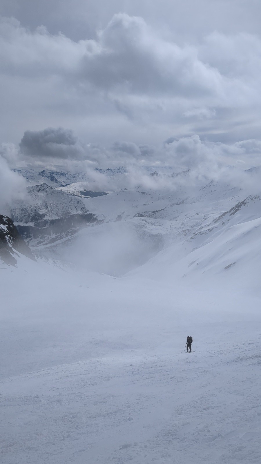 Conditions pour le ski : le temps couvert n'a pas vraiment permis de ramollir la neige, c'était un peu mieux en dessous de 2000m à la descente, pour la montée c'était agréable, les skis accrochaient bien sans avoir besoin de mettre les couteaux.