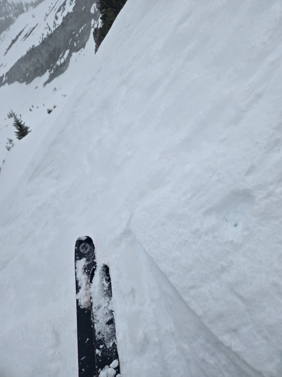 On change de plan dernière minute pour aller visiter cette belle ligne repérée il y a peu. Probablement pas une ouverture, j'attends des retours d'information, mais n'ayant jamais vu de trace ou eu de retours, je suppose que ce n'est pas fait souvent. La ligne juste à gauche, plus centrale et évidente a plus de chances d'avoir été faite.