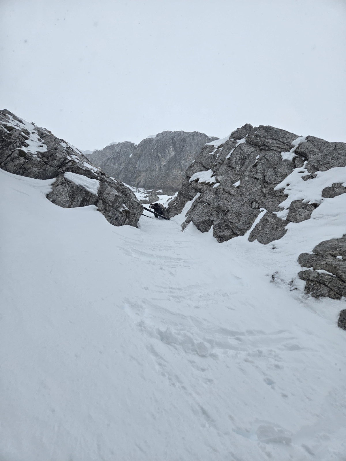 Gros stress sur le bas, en traversant un éperon il se retrouve sur une dalle lisse, glissade.