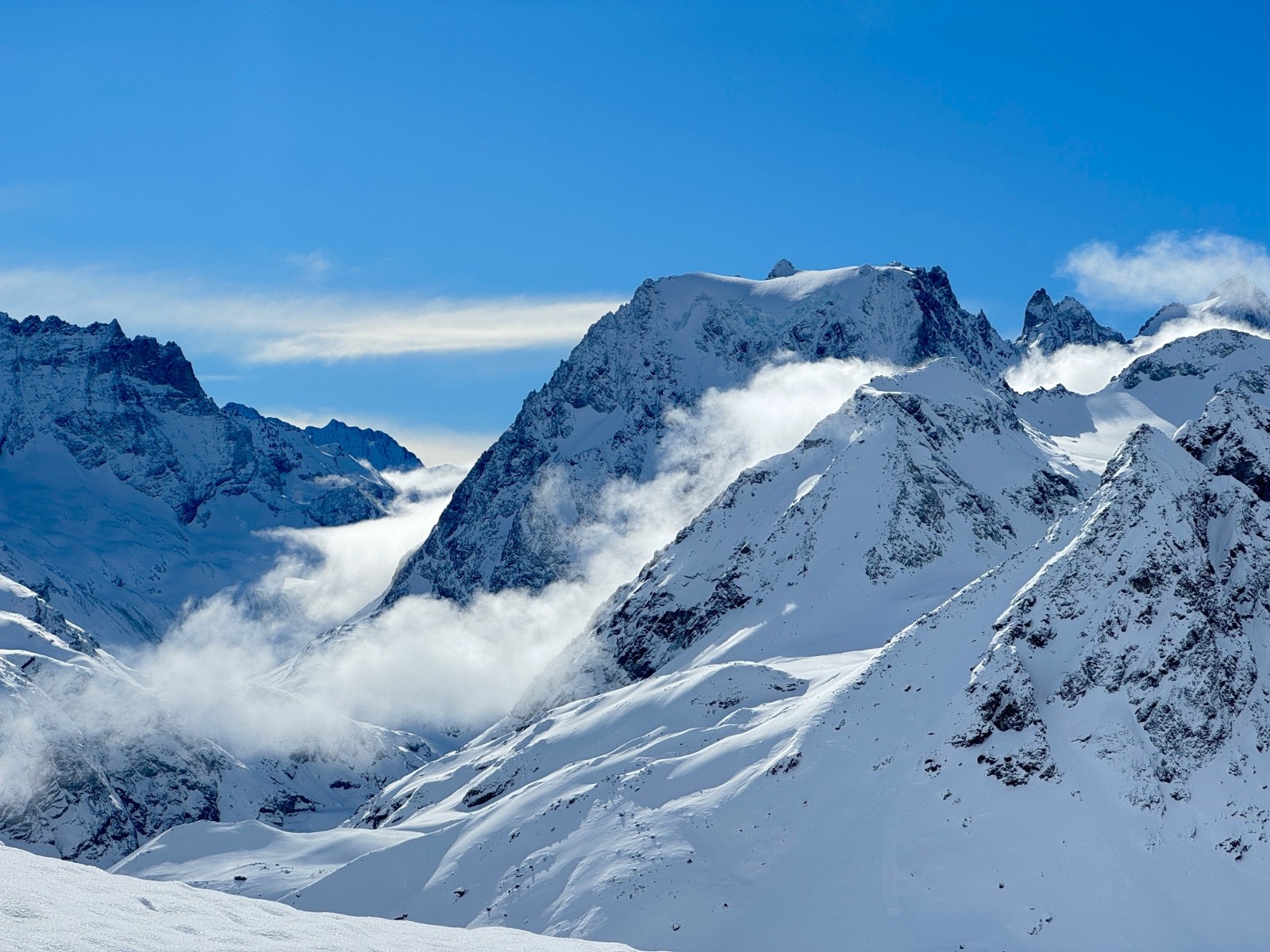 Météo/températures : Après la neige de la nuit, le ciel se dégage rapidement dès 9h. Grand soleil jusqu'à 13h puis rares nuages d'altitude. Doux, les versants Sud chauffent vite.