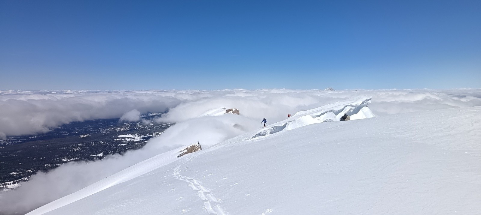 Conditions pour le ski : Bien bonnes surtout en split, 10/15 cms de fraîche >1800m tombée avec du vent, neige un peu lourde sous 2000m, poudreuse dense au dessus avec des parties décapée mais pas gelée.