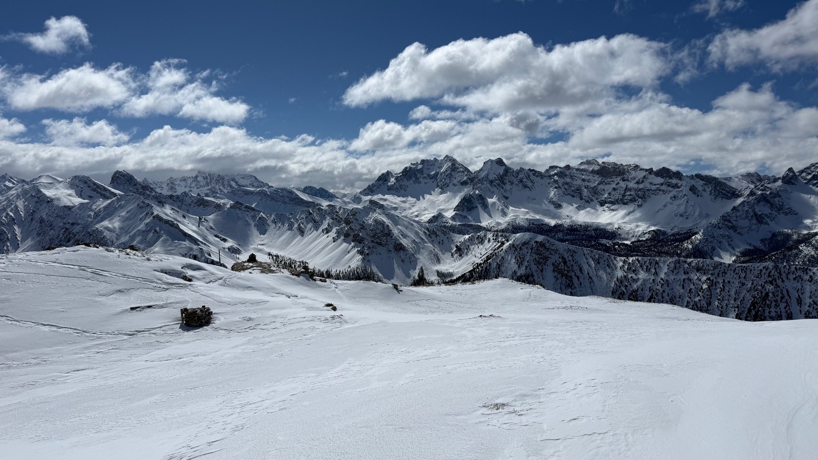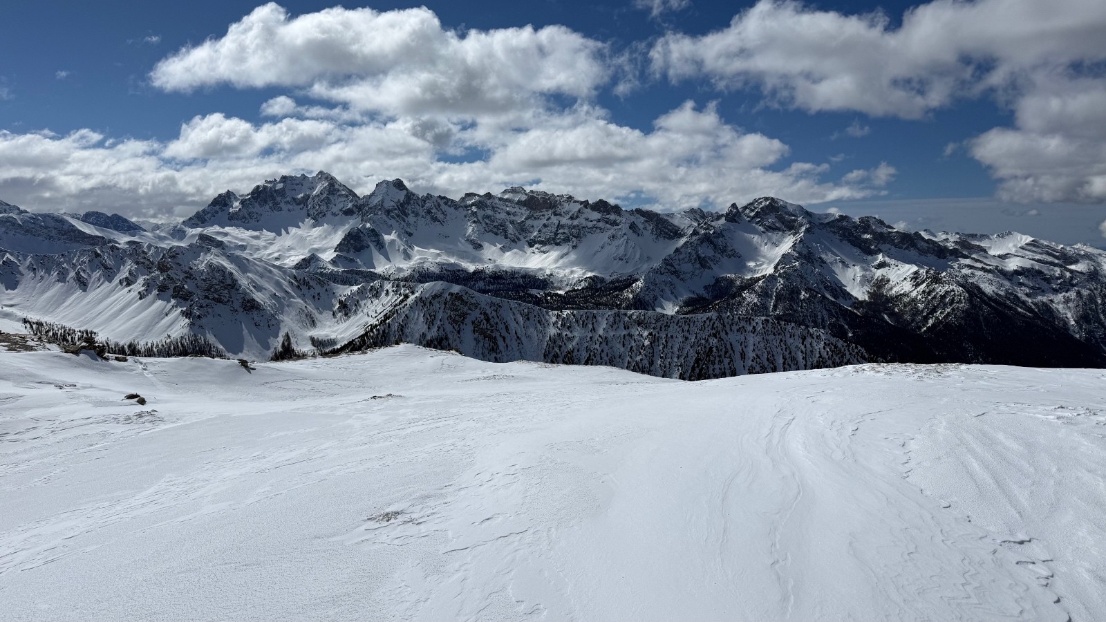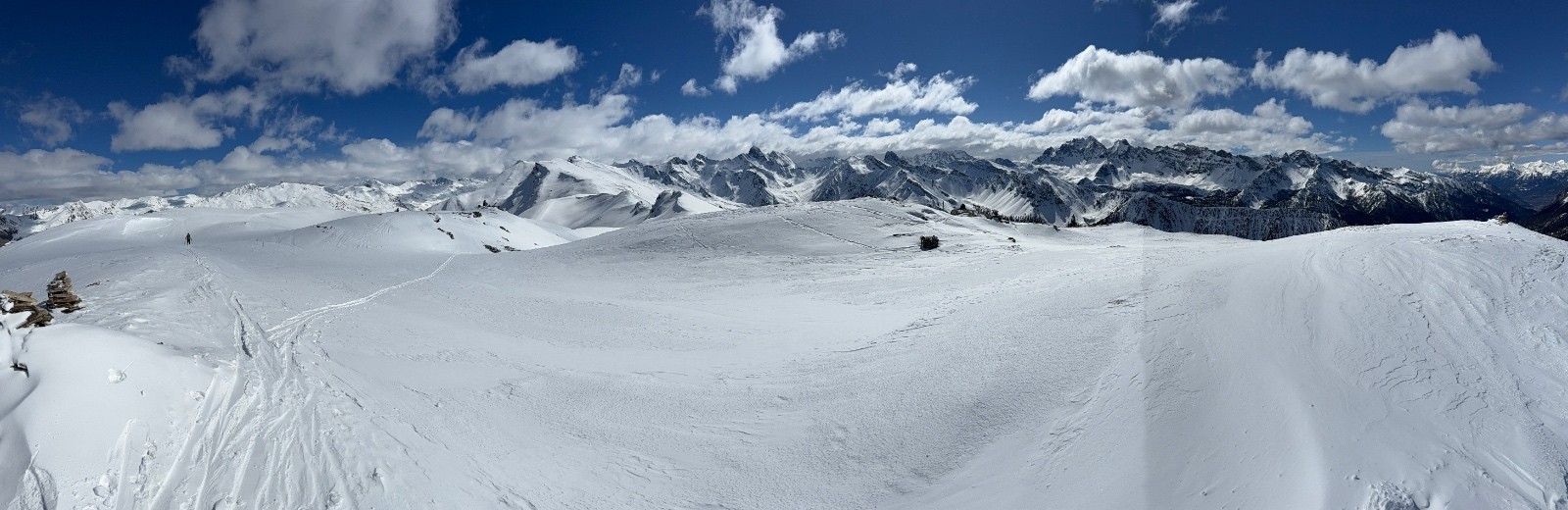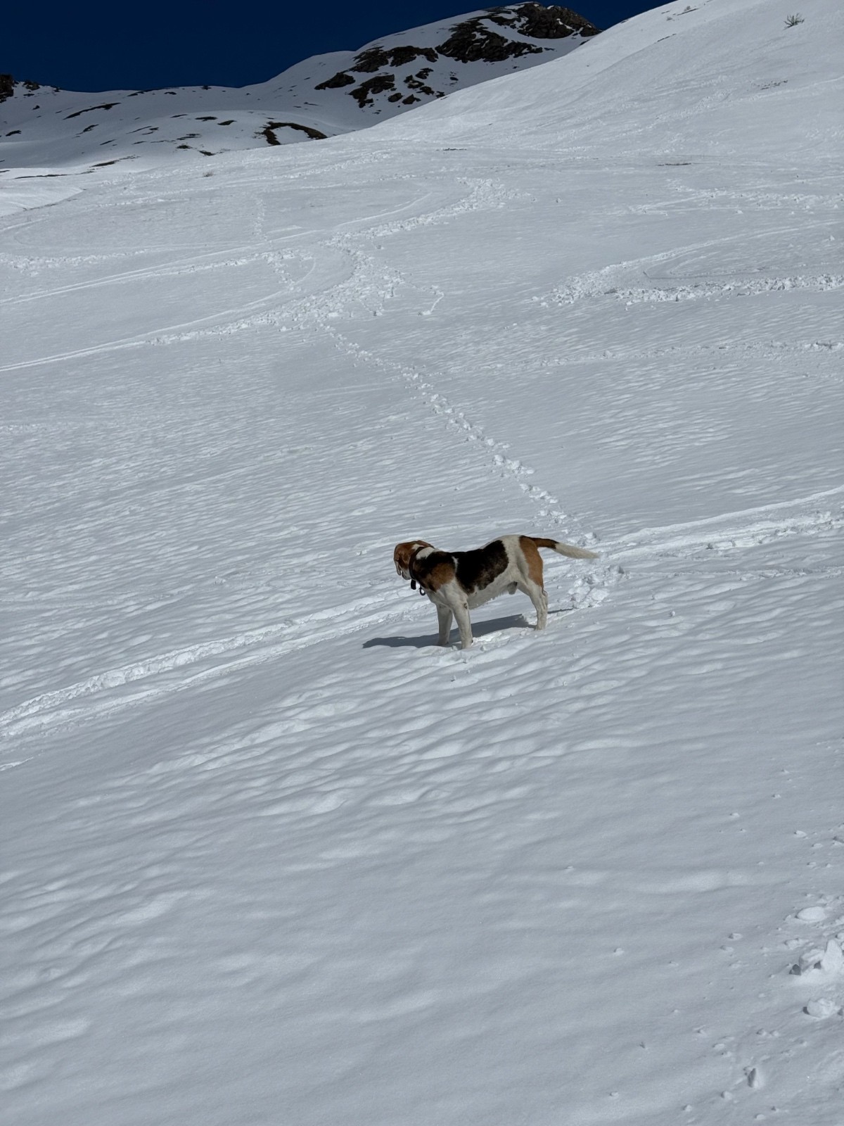 Conditions pour le ski : petit saupoudrage sur neige transfo avec bon regel. Inconvénient : ça botte par moments. Au-dessus des Chalmettes, il n’y a plus beaucoup de neige mais ça passe encore