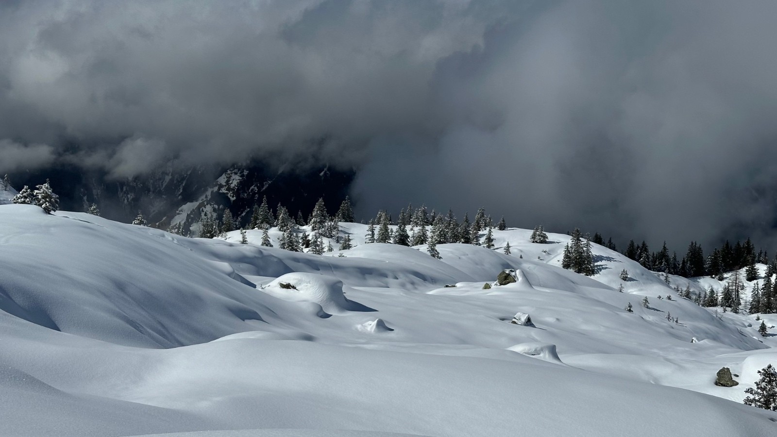 Conditions nivo et activité avalancheuse : Neige fraiche, environ 10 cm au-dessus de 1600m.
