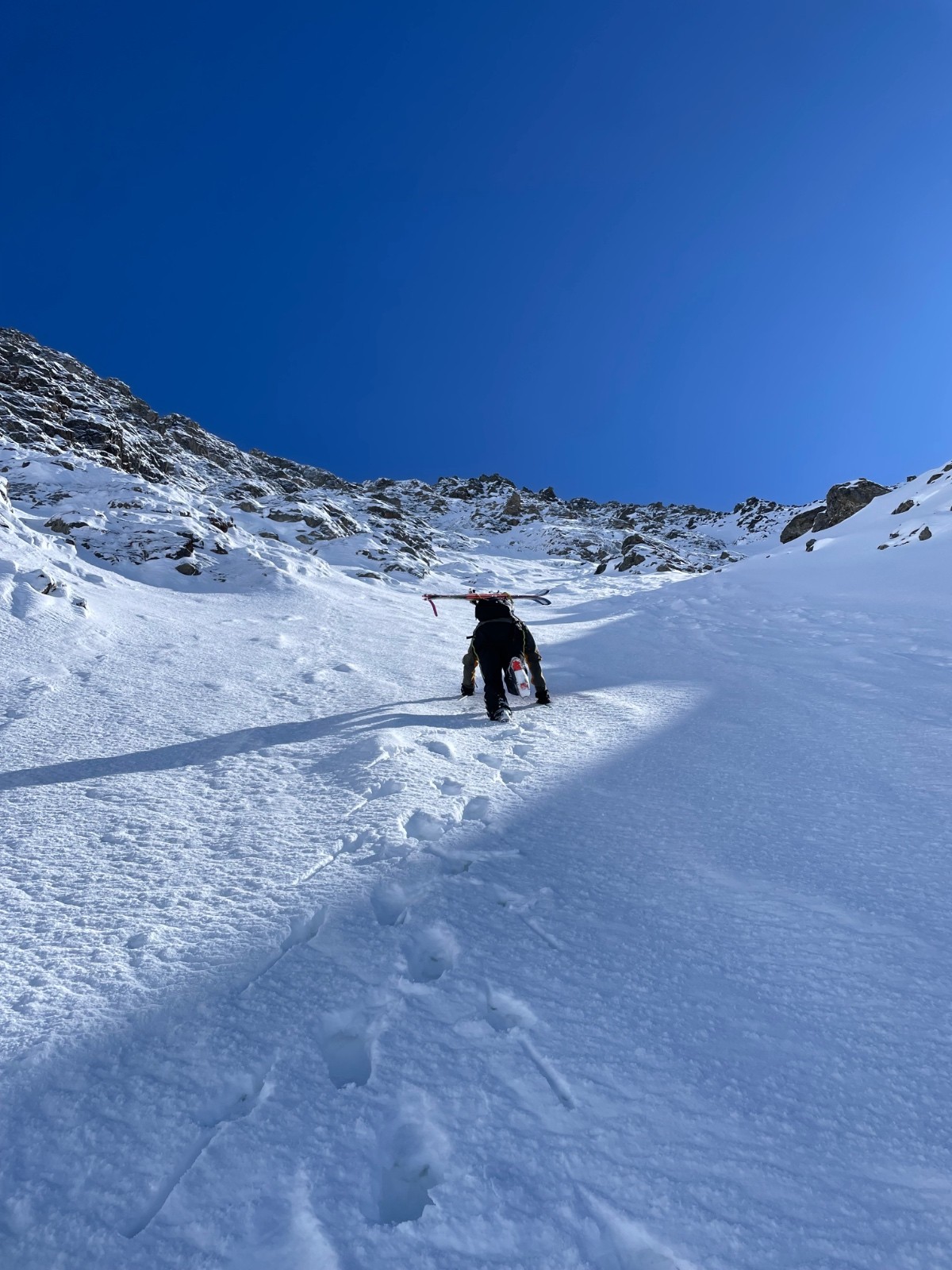 Les conditions étaient quasi parfaites, quasi parfaites. 800m de face en poudre, bon ça fatigue à tout tracer mais quelle descente!