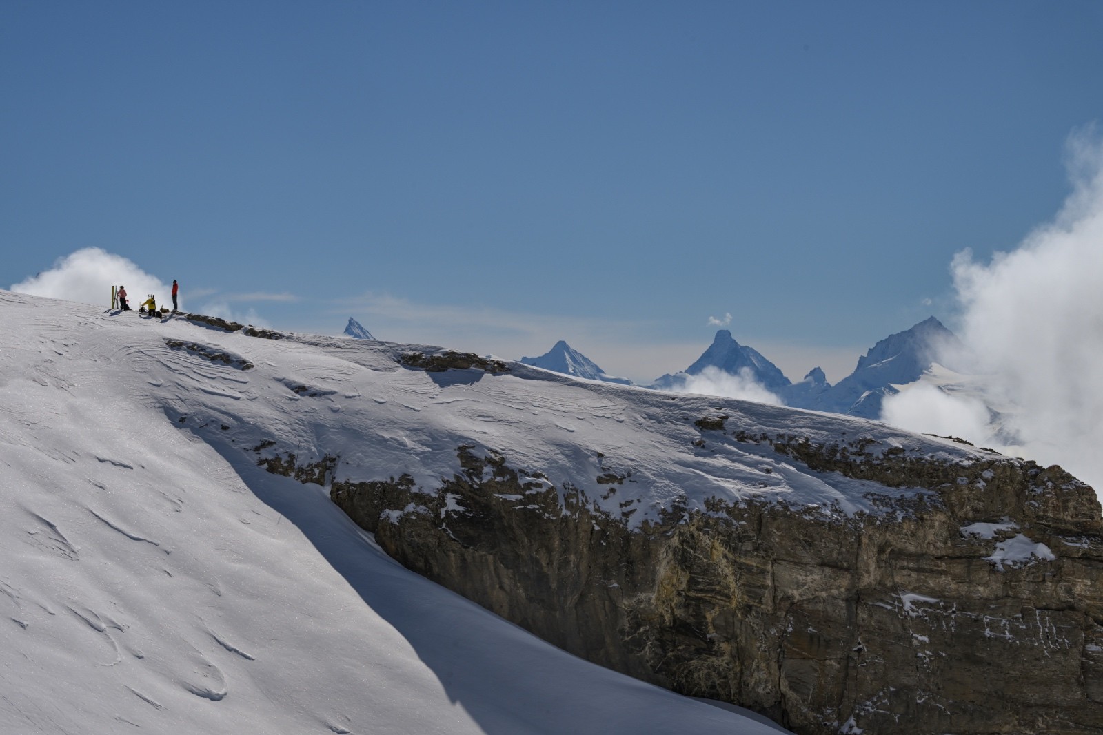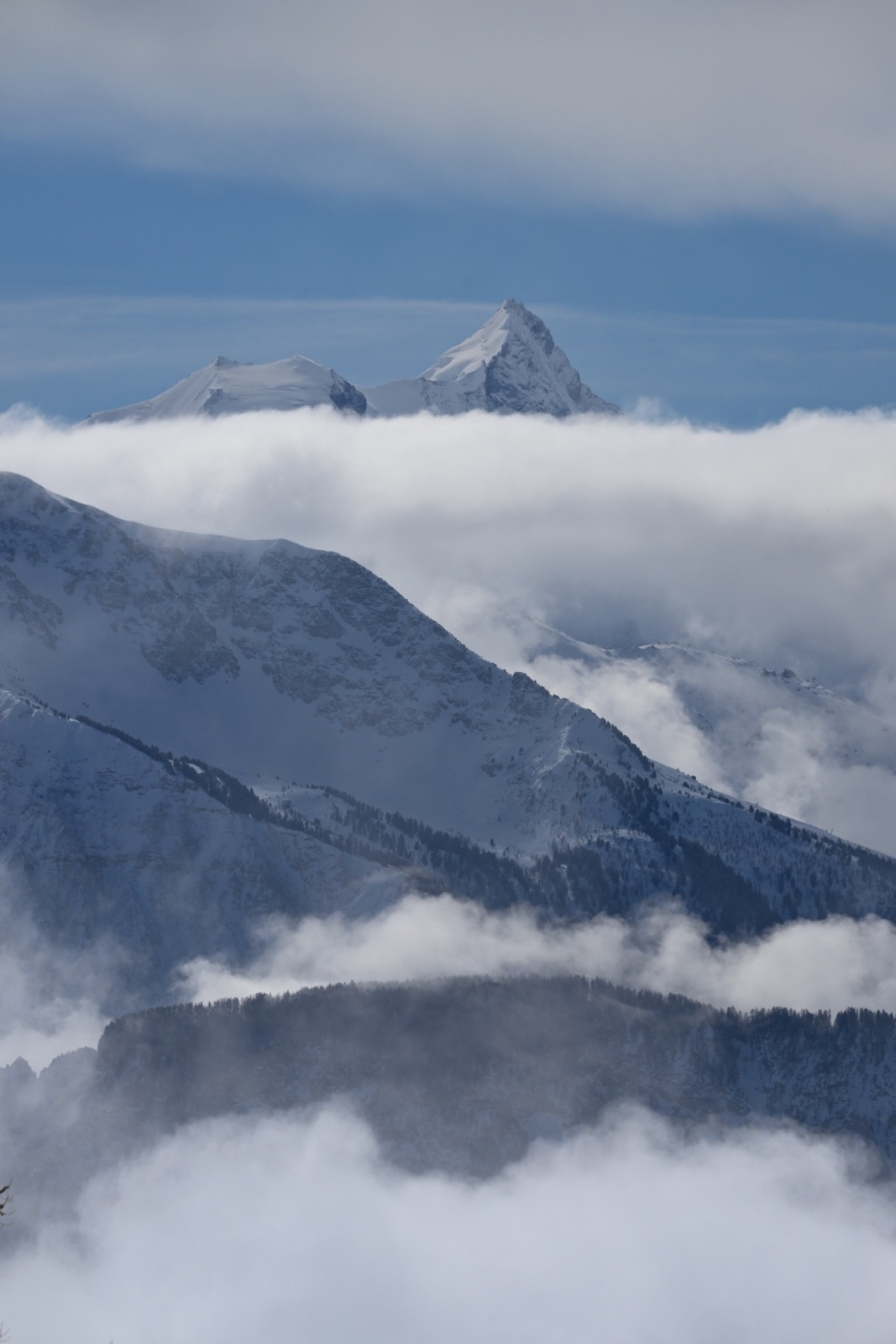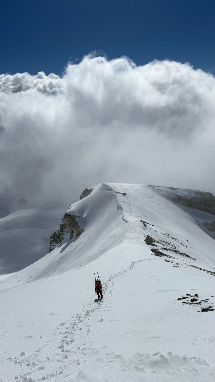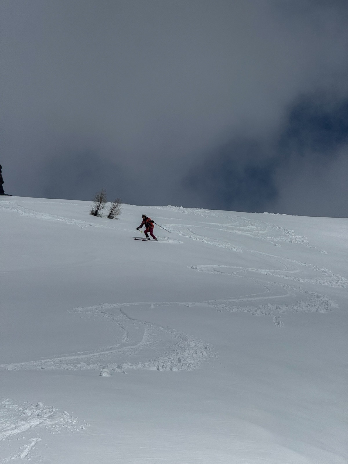 Horaires : montée 4h ,des paysages grandioses avec les nuages qui se déchirent sur la crête des Alpes valaisanne, le ski est bon mais pas excellent car on sent le fond humide sous la couche de neige fraîche , sinon le picnic au sommet et l’ambiance du matin à la trace dans le vallon de la tieche resterons mémorable !!