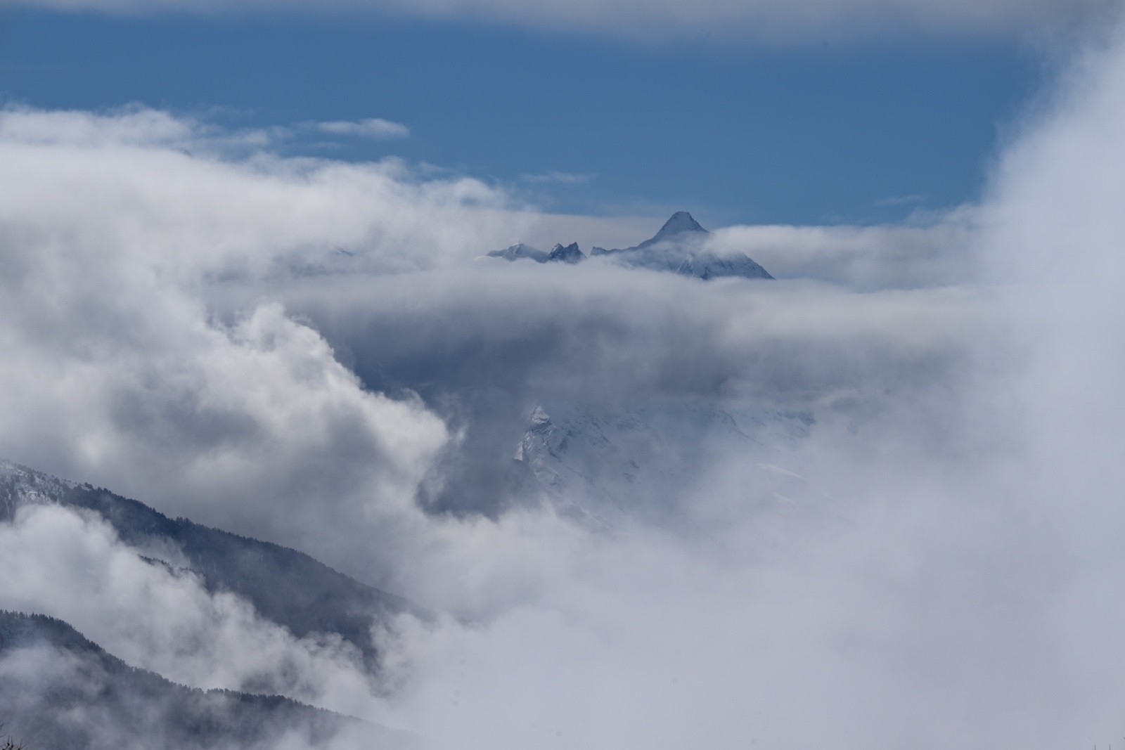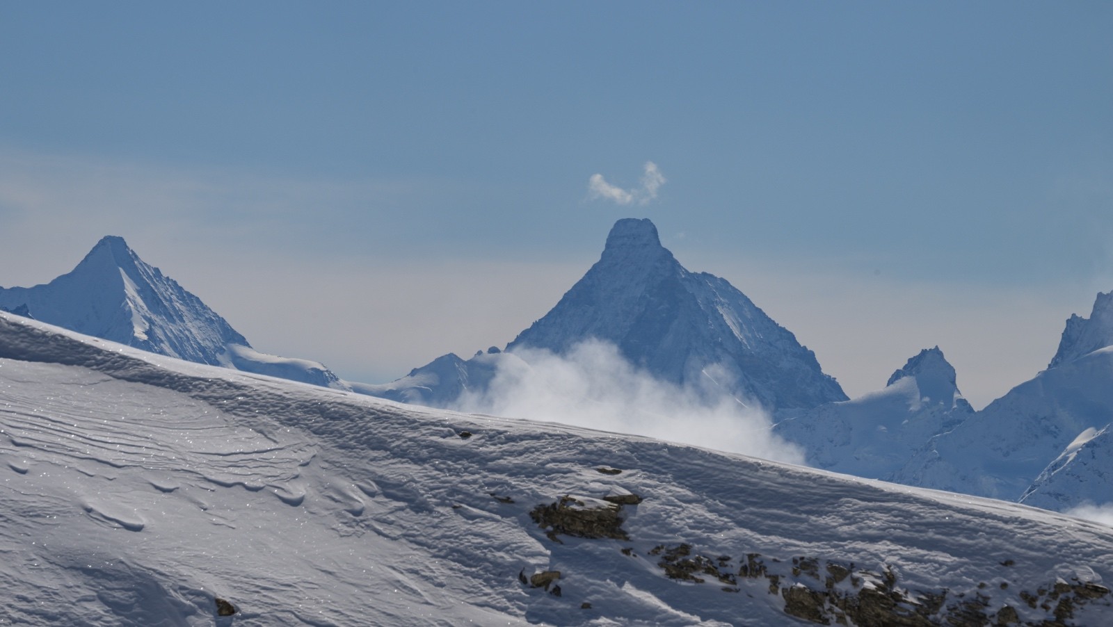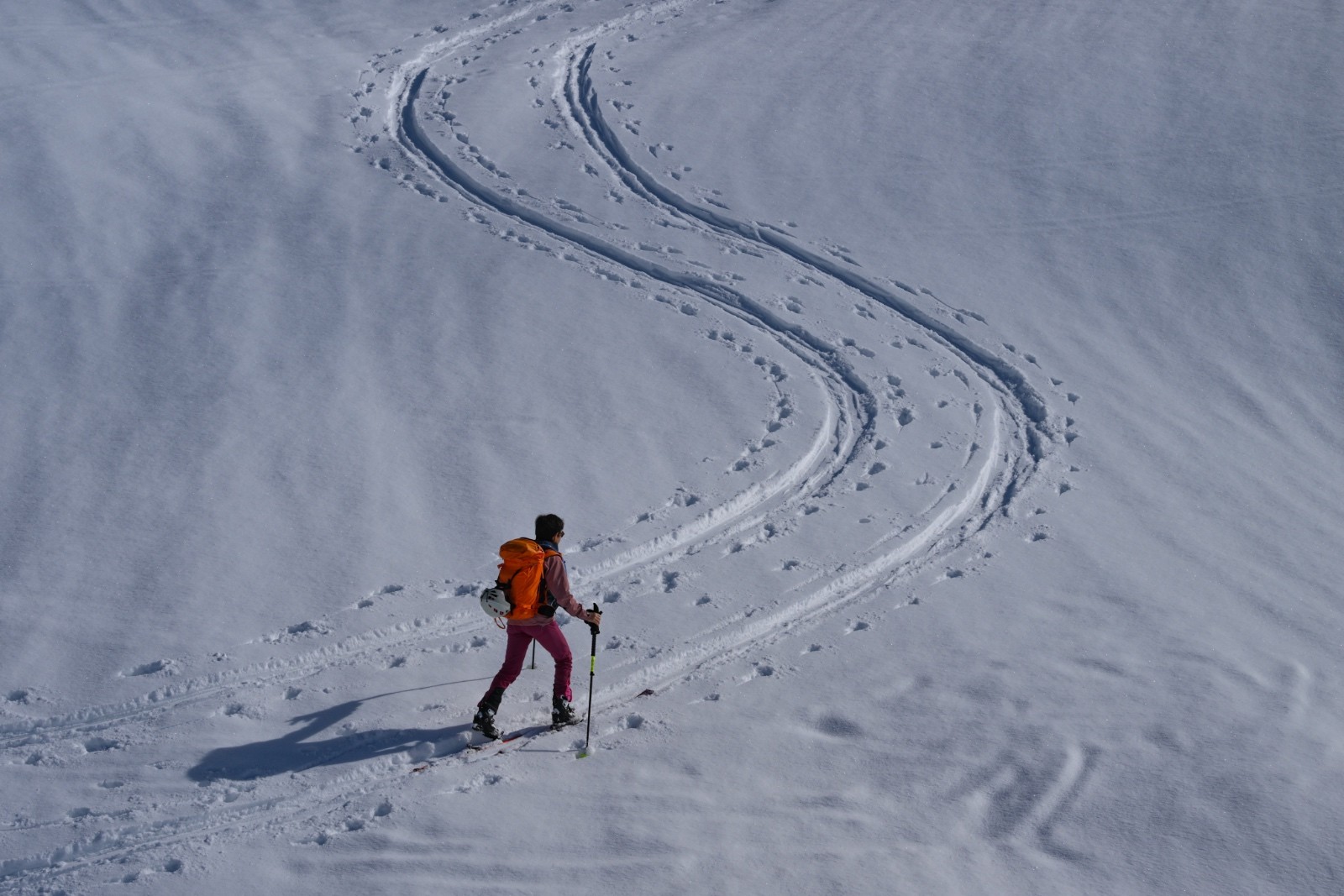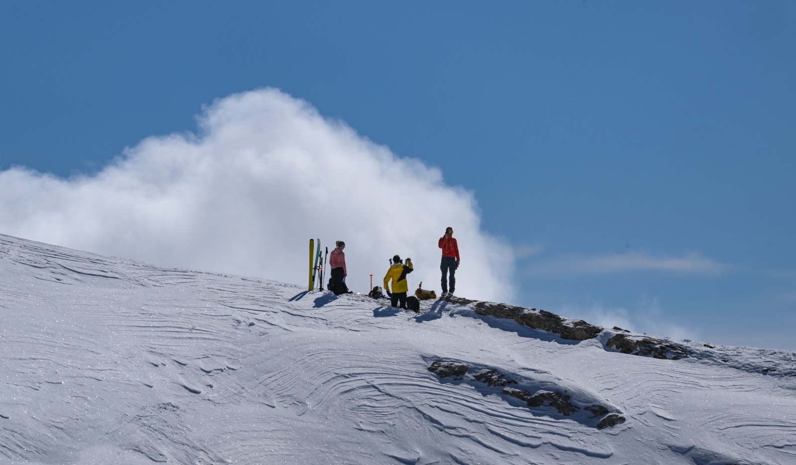 Horaires : montée 4h ,des paysages grandioses avec les nuages qui se déchirent sur la crête des Alpes valaisanne, le ski est bon mais pas excellent car on sent le fond humide sous la couche de neige fraîche , sinon le picnic au sommet et l’ambiance du matin à la trace dans le vallon de la tieche resterons mémorable !!