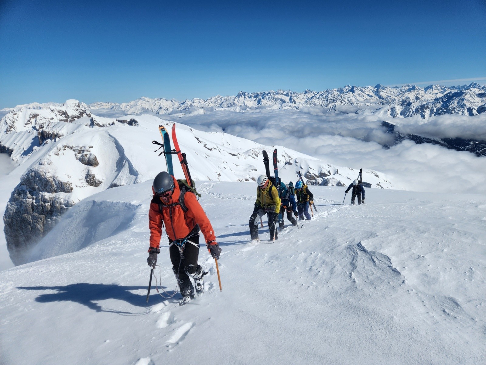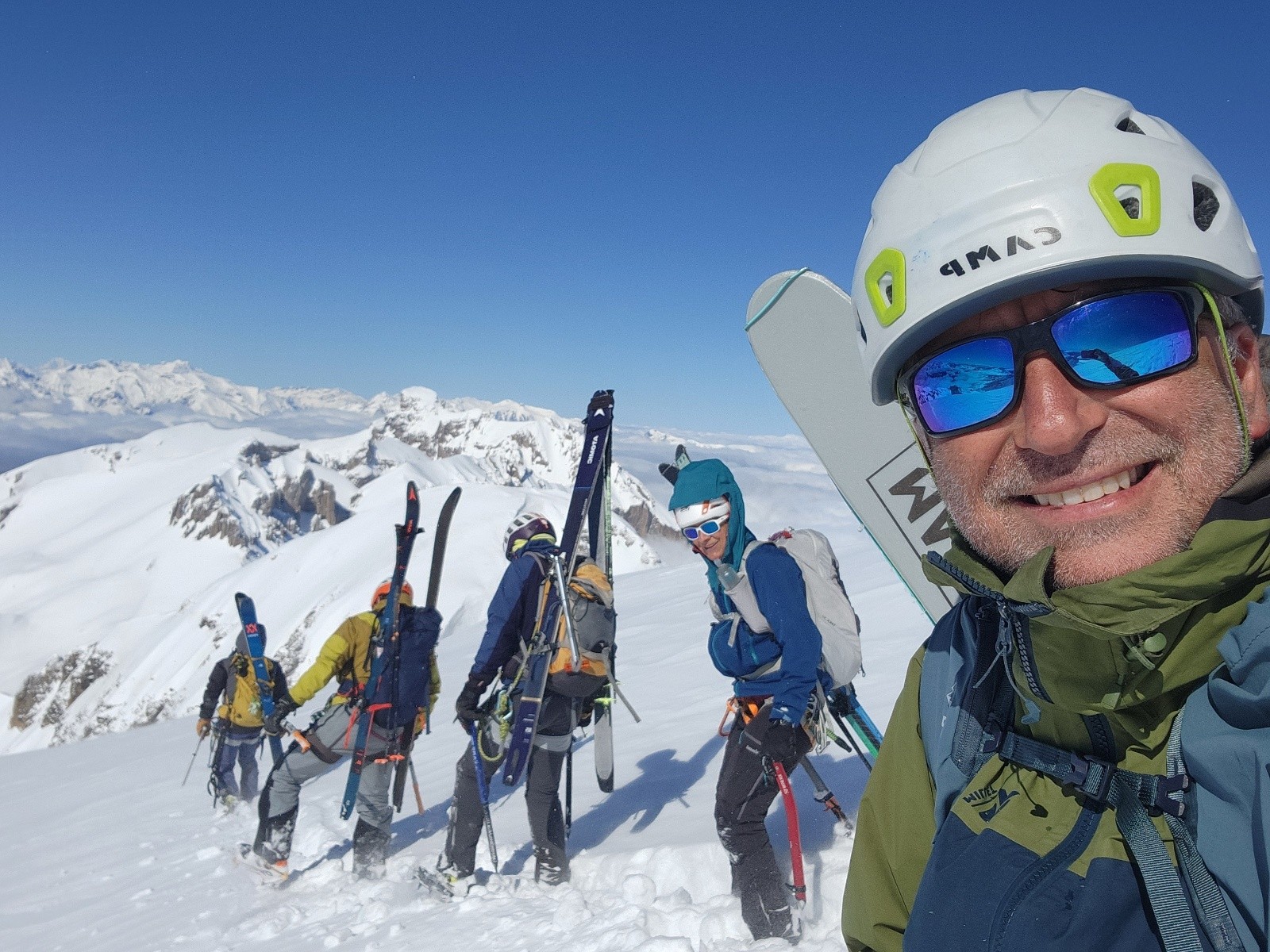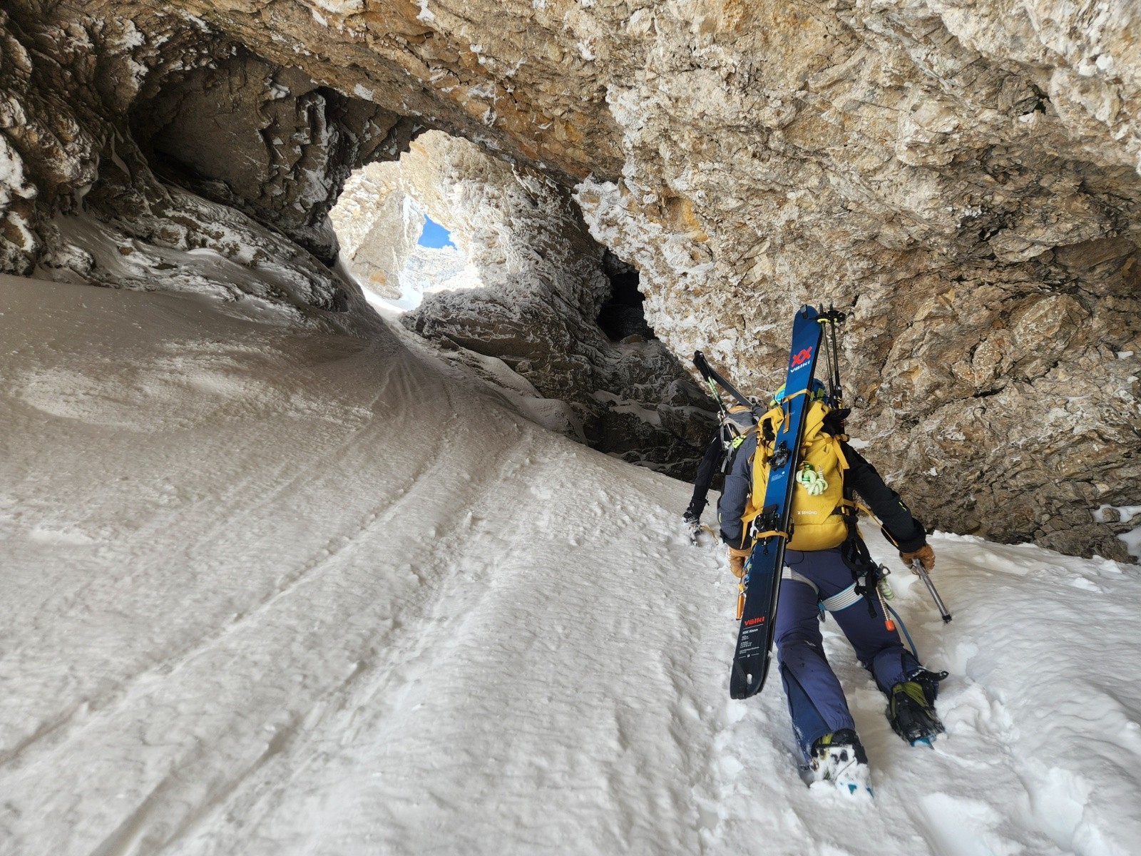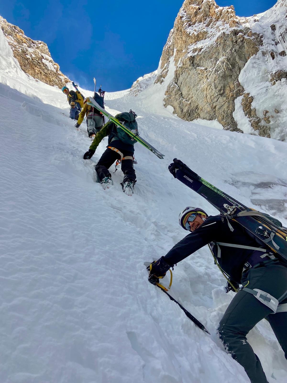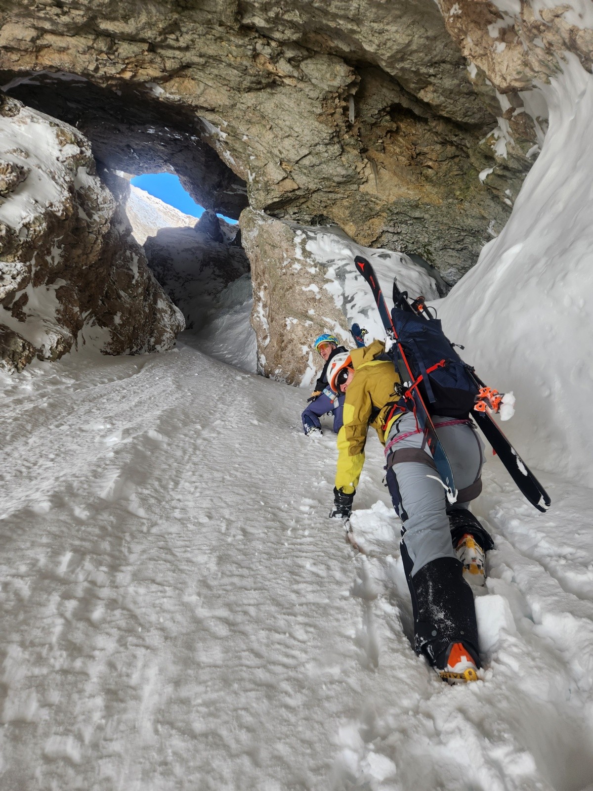 Conditions pour le ski : poudre dense, s'alourdissant beaucoup au fil des heures. Entre les 2 choroums 60- 80 cm de poudre dans les couloirs