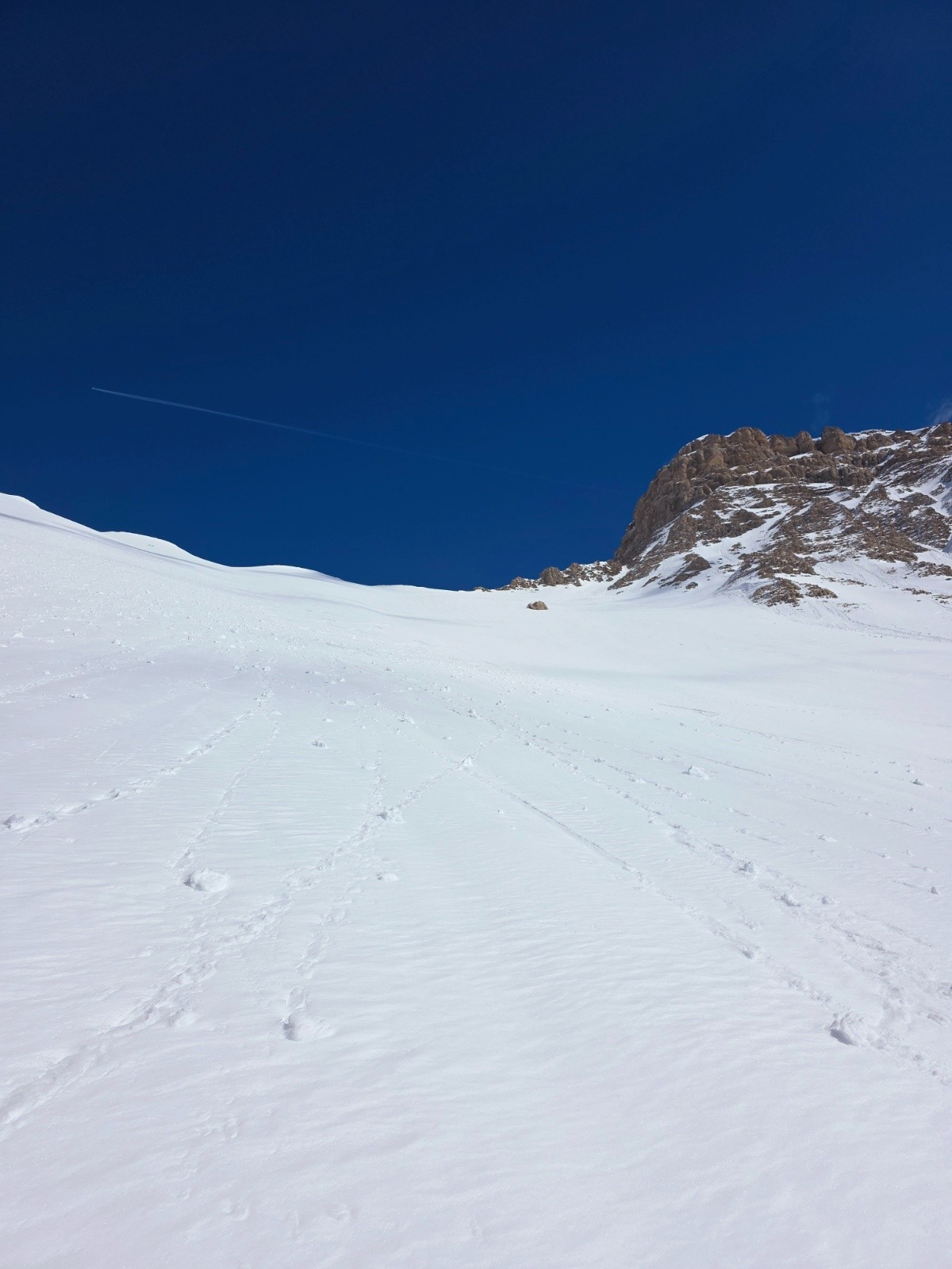 Itinéraire suivi : montée à la cabane des mulets par la piste. 3 discontinuités dont une seule nécessite d'enlever les skis (à la montée comme à la descente). Ensuite ça monte très bien jusqu'au col. Couteaux pour la forme dans la dernière pente mais la neige était très sécurisante car bien revenue. Dans la partie la plus raide, on sent un peu la croûte à la descente juste sous la neige de printemps mais ça reste agréable et sympa. Après le replat à 2100m c'est plus homogène. Descente sur la piste pas très agréable car beaucoup de traces à pieds mais quel bonheur de partir skis aux pieds dans la vallée à 1400m mi mars !