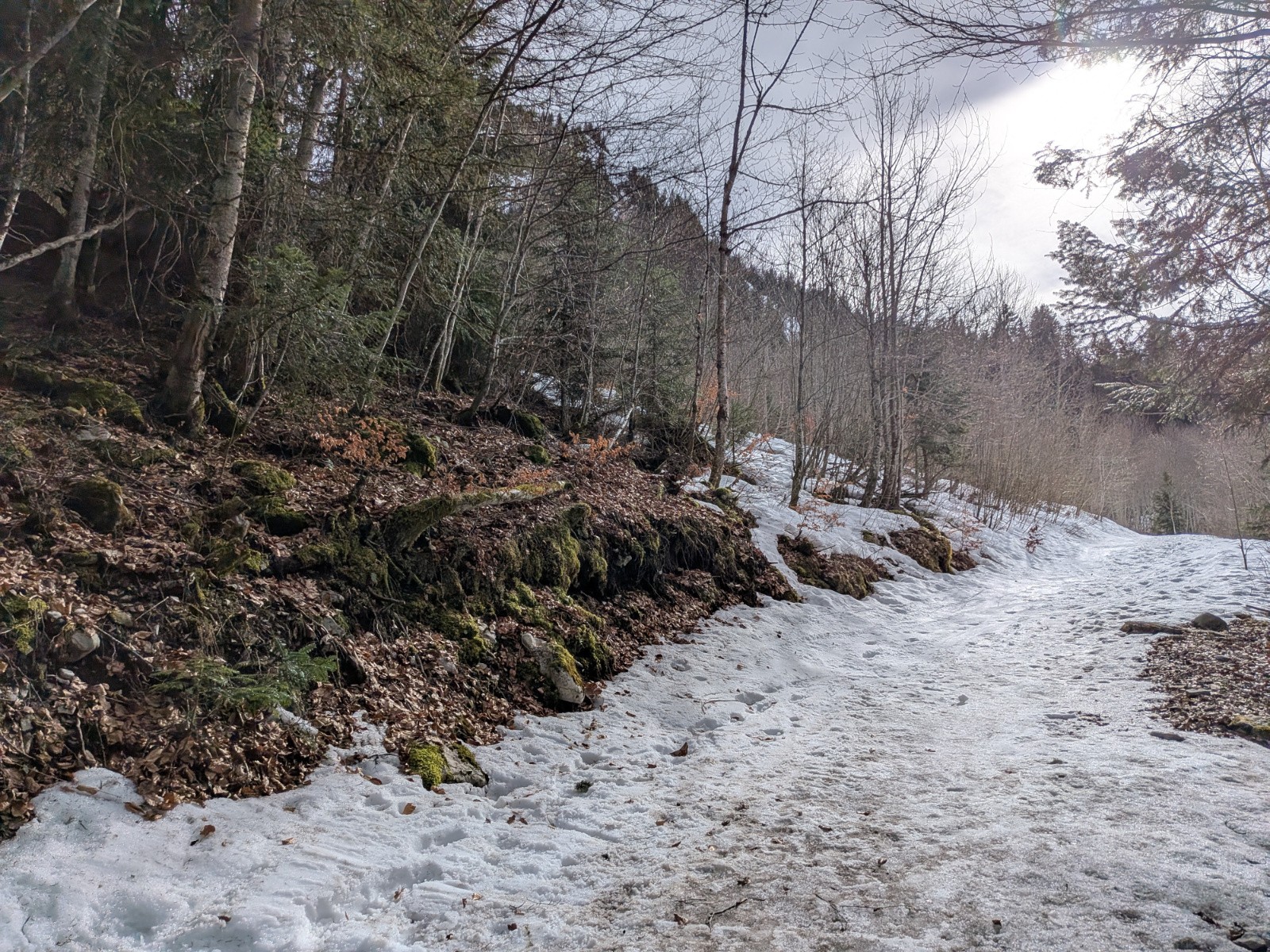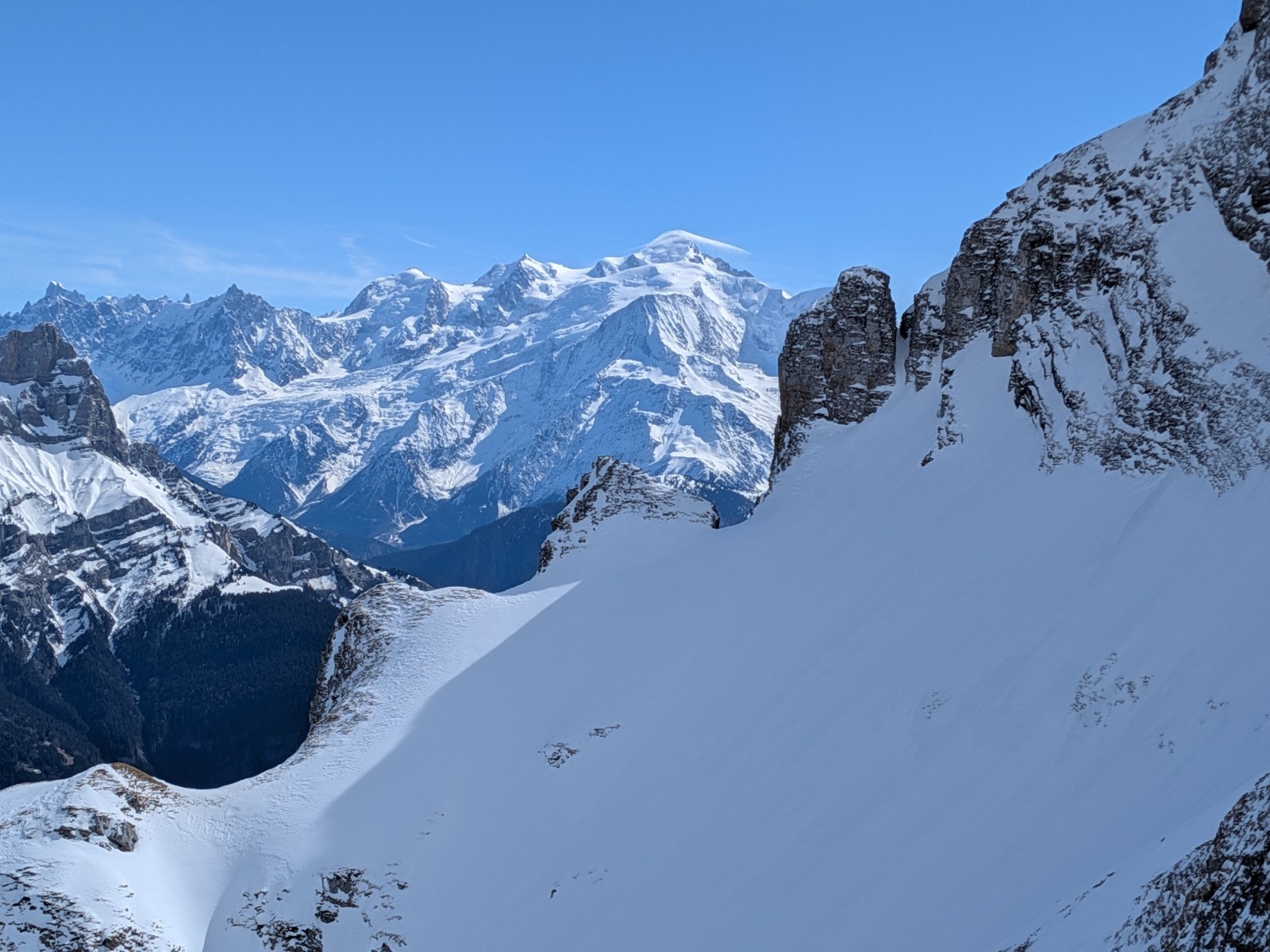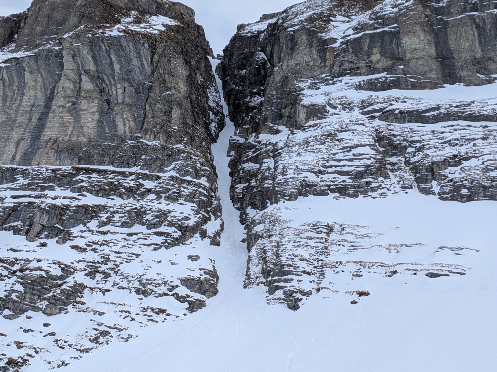 Conditions pour le ski : Couloir bien rempli avec un seul passage avant moi et environ 20 cm de neige tombée la veille pas encore trop lourde, le dessous reste bien dur. Neige transfo hyper lourde en descendant, attention à la sortie en bas du couloir, changement de neige , je me suis pris un bon râteau. Boules de glace en bas de Brion.