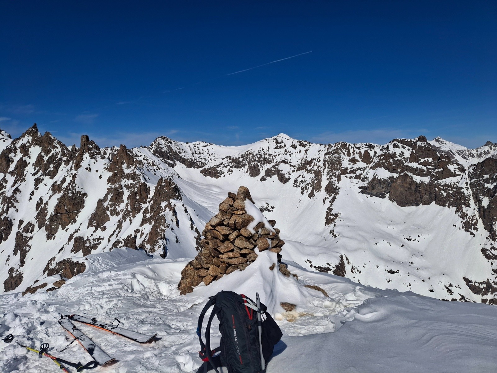 Conditions pour le ski : neige compact avec bon regel à la montée ( neige printemps à la descente à partir de 2000 m) puis progressivement belle poudreuse (chute de mercredi) jusqu’à 25-30 au sommet.