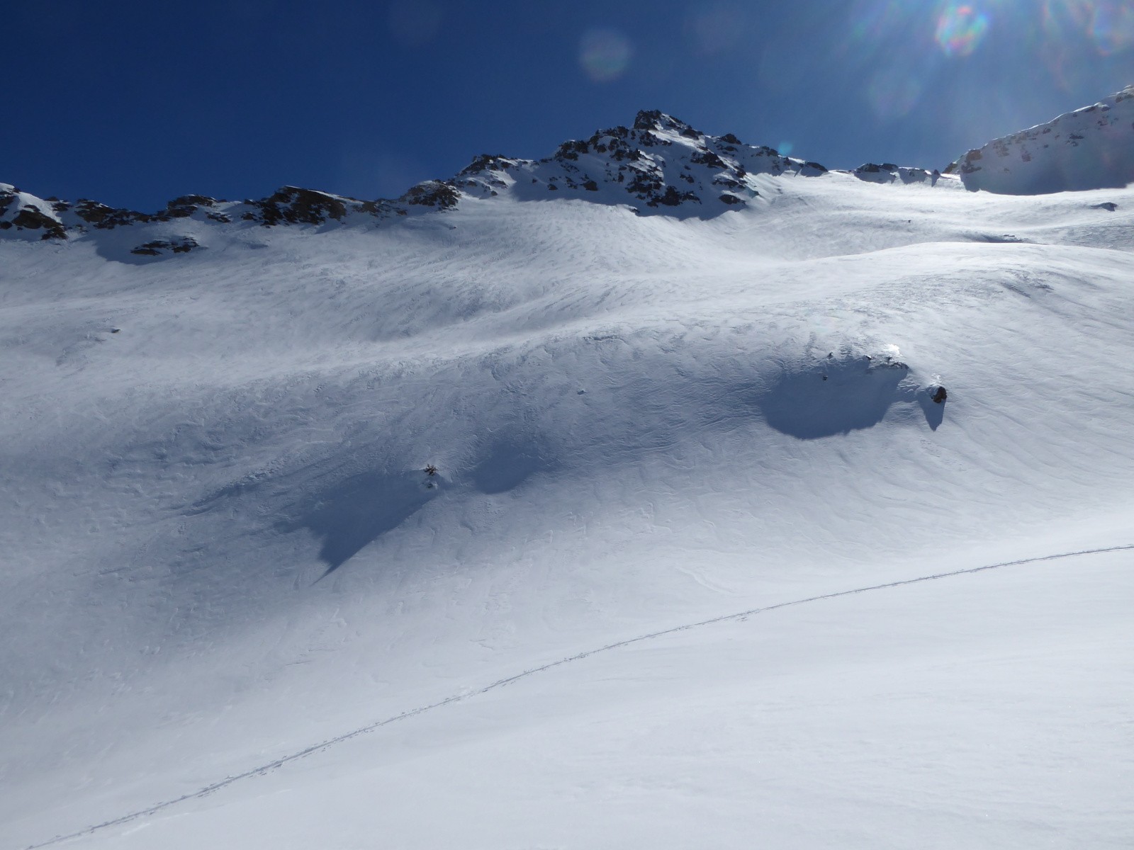 Météo/températures : Beau temps, très bon regèle matinal, +1.5°C le matin et +14.5°C à 15 h au Mollard,un peu de vent en altitude