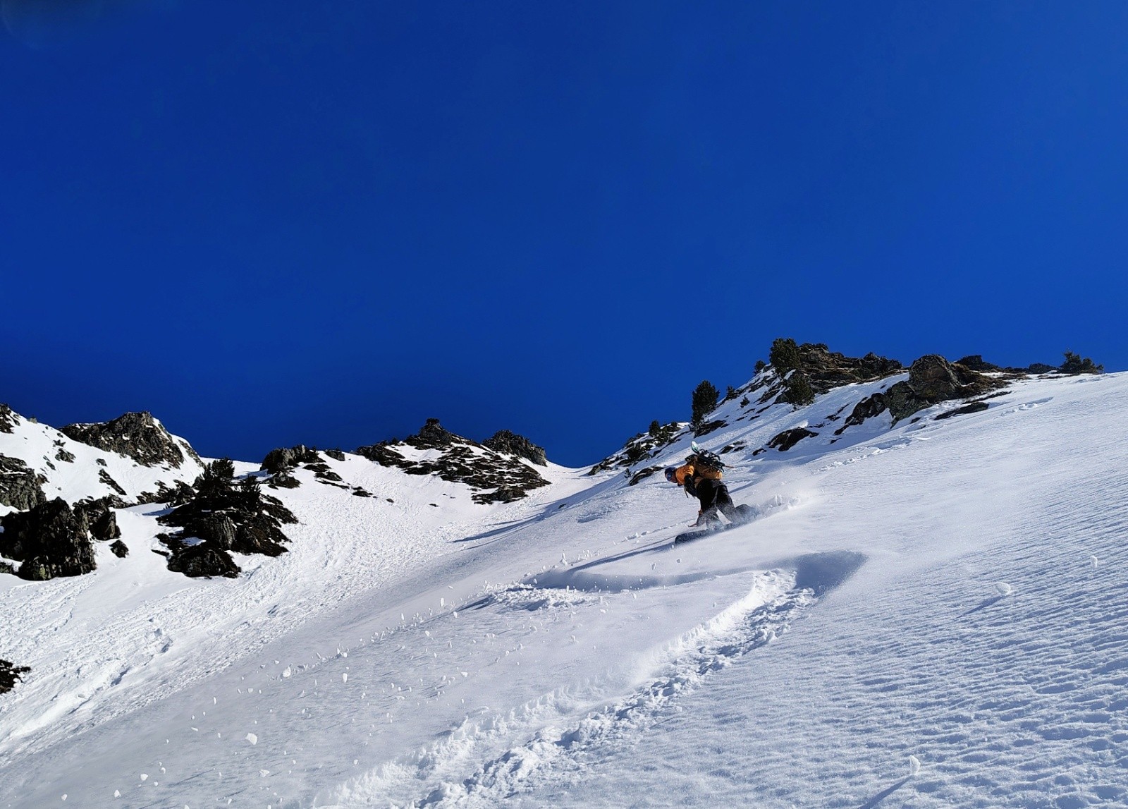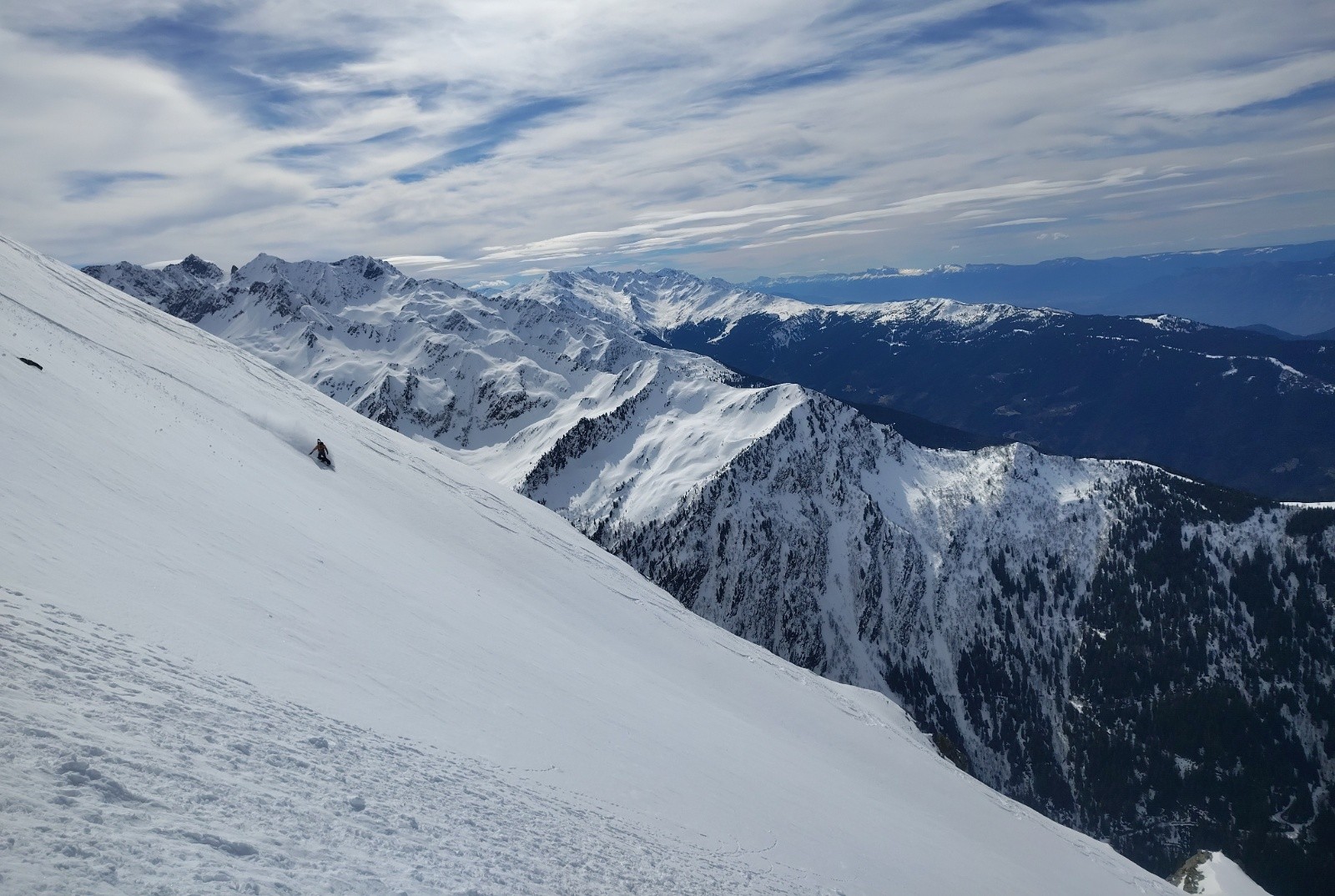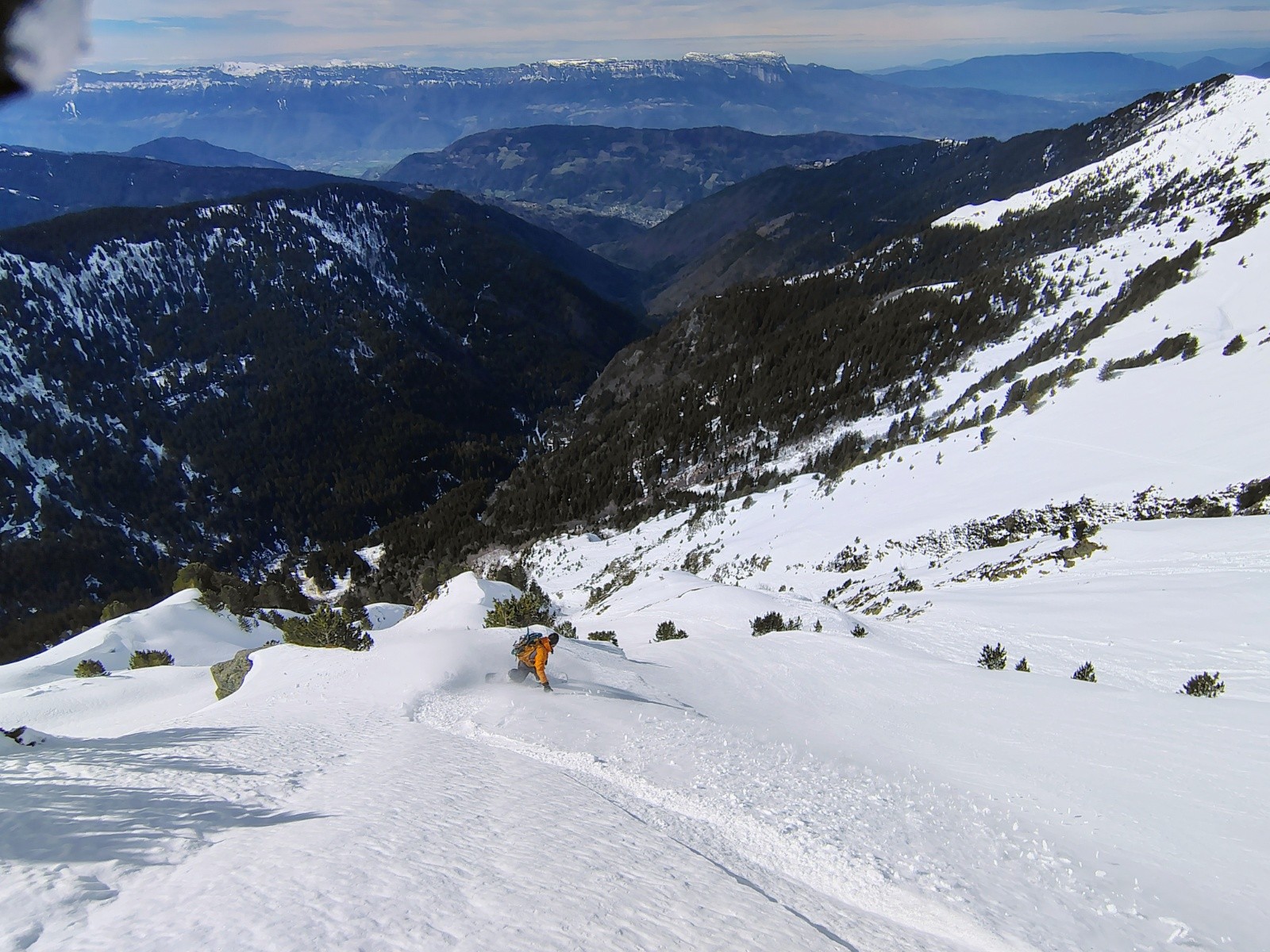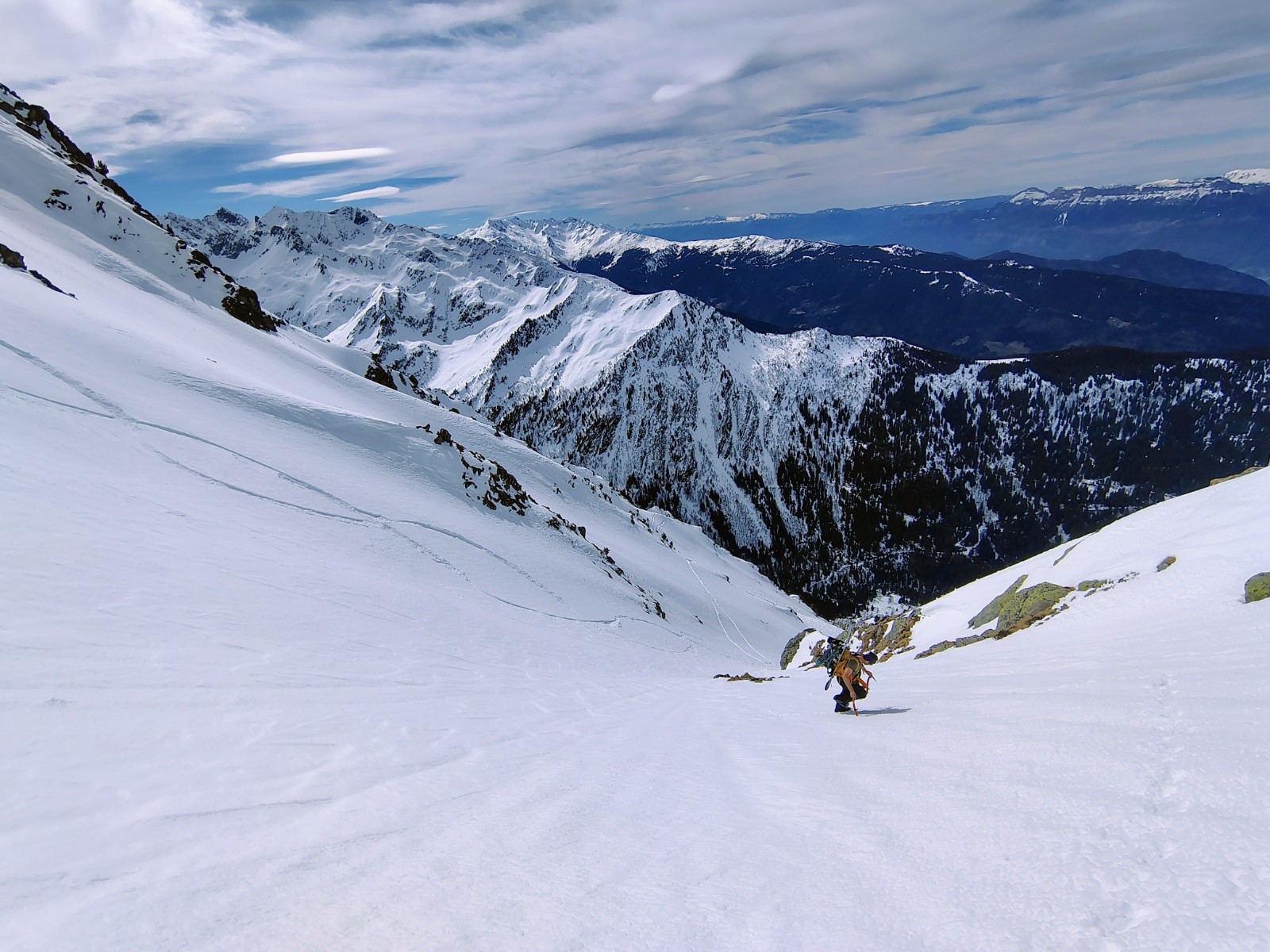 Face très belle de loin, j'ai trouvé l'ambiance sympa dans les couloirs. Vraiment pas très raide (sur la partie skié en tout cas, peut être plus raide plus bas 🤔). Assez large et skiant. Ça mérite une visite, mais il faut aimer les manips !