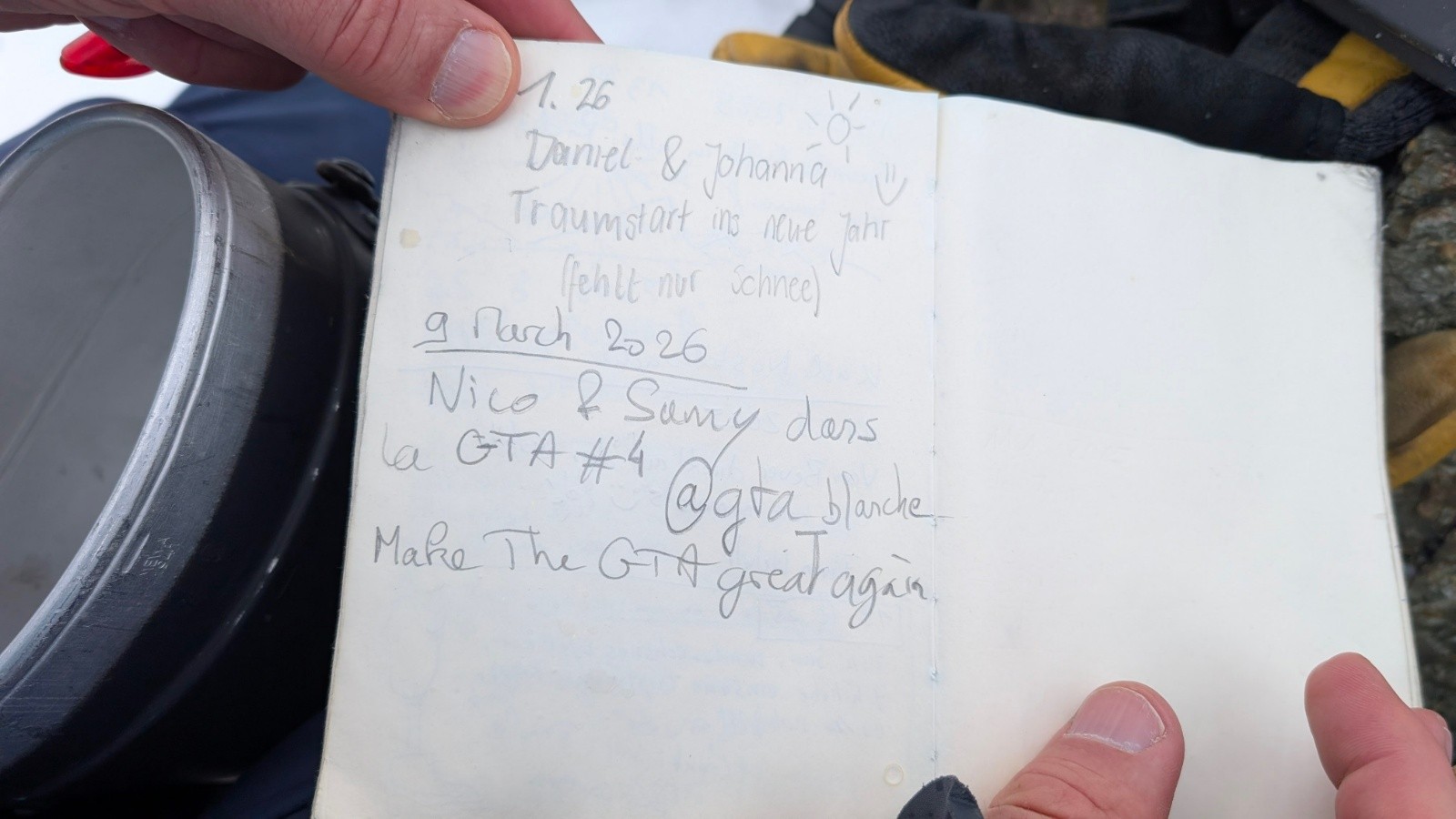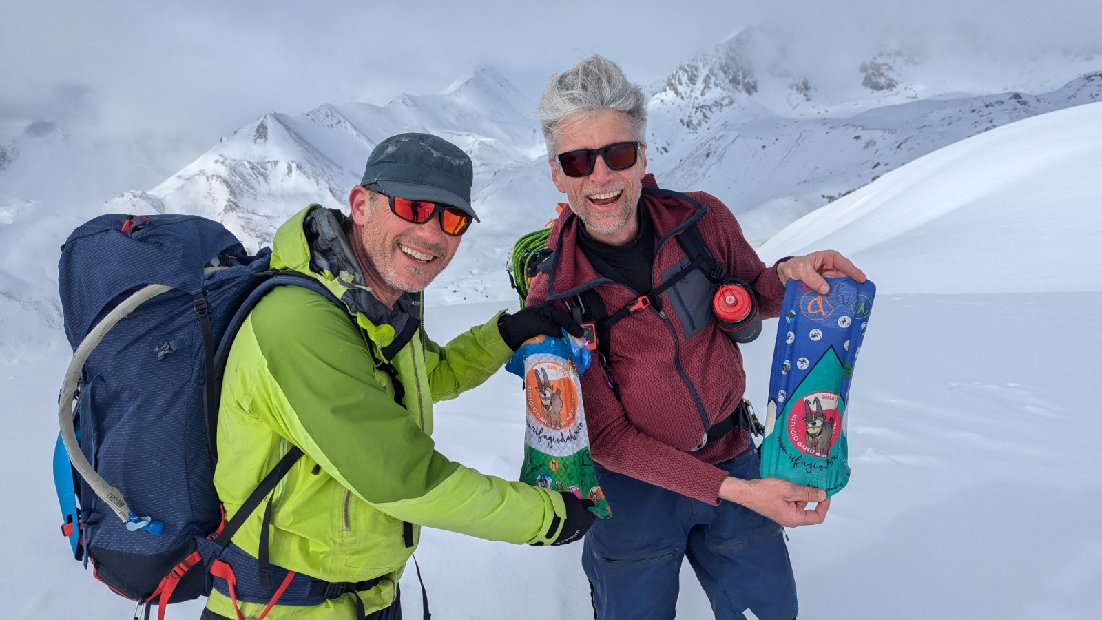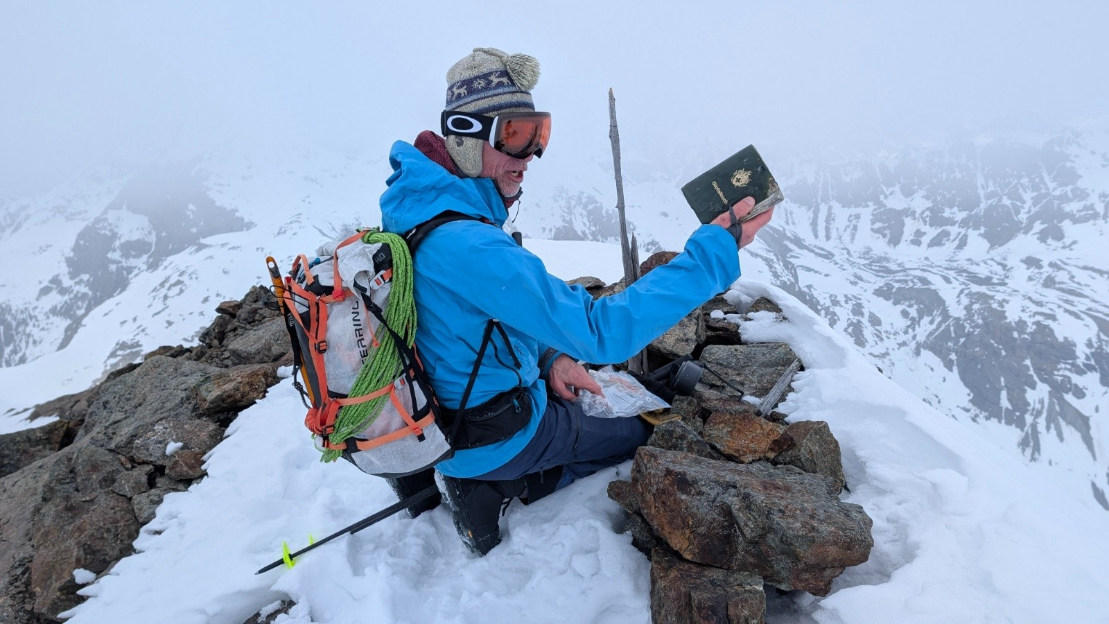 - Le Piz Picuogl en mixte sur plus d'1km aller/retour et ses 3333m d'élévation avec un étui à jumelles de la Wehrmacht en guise de livre d'or. Humour franco-allemand au sommet, on valide 😇