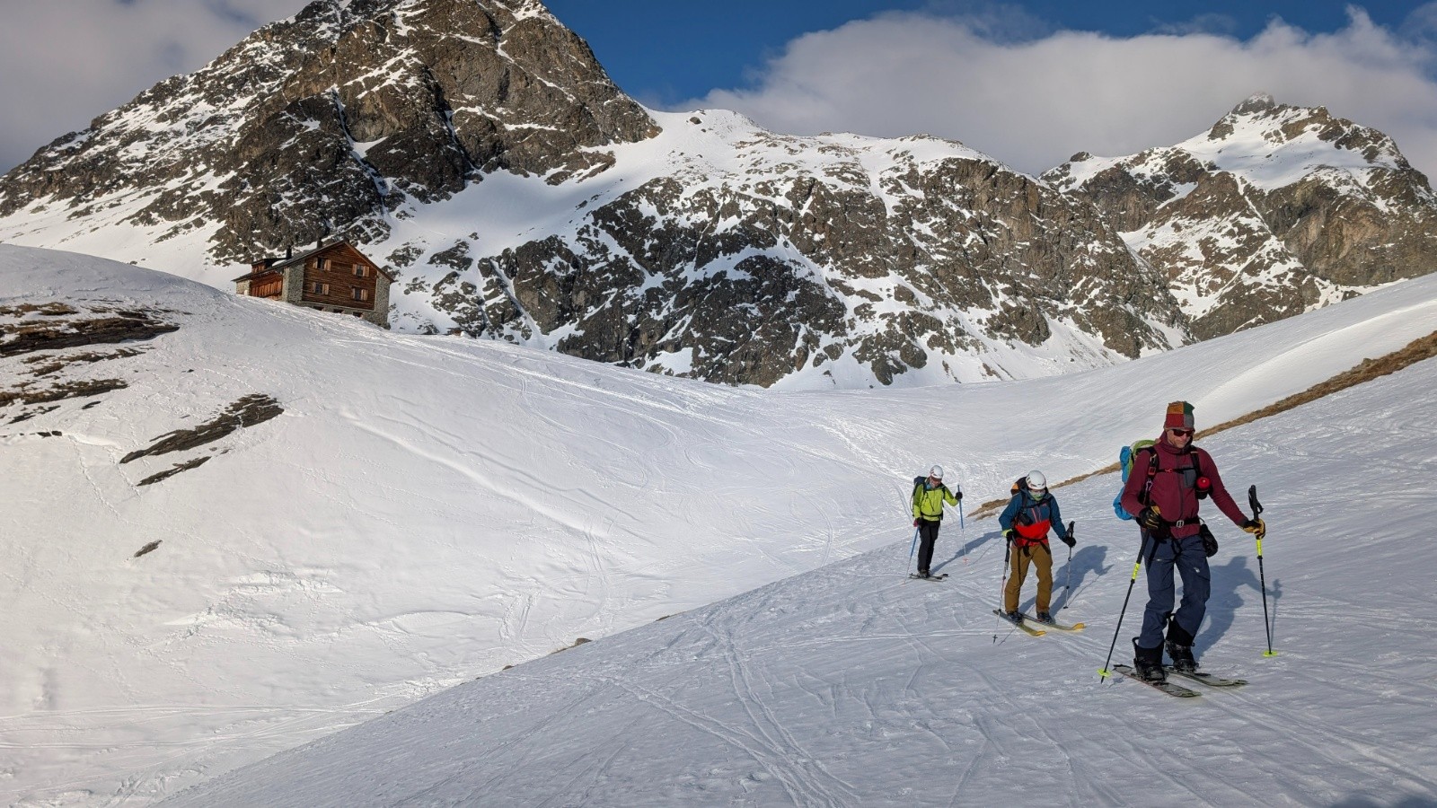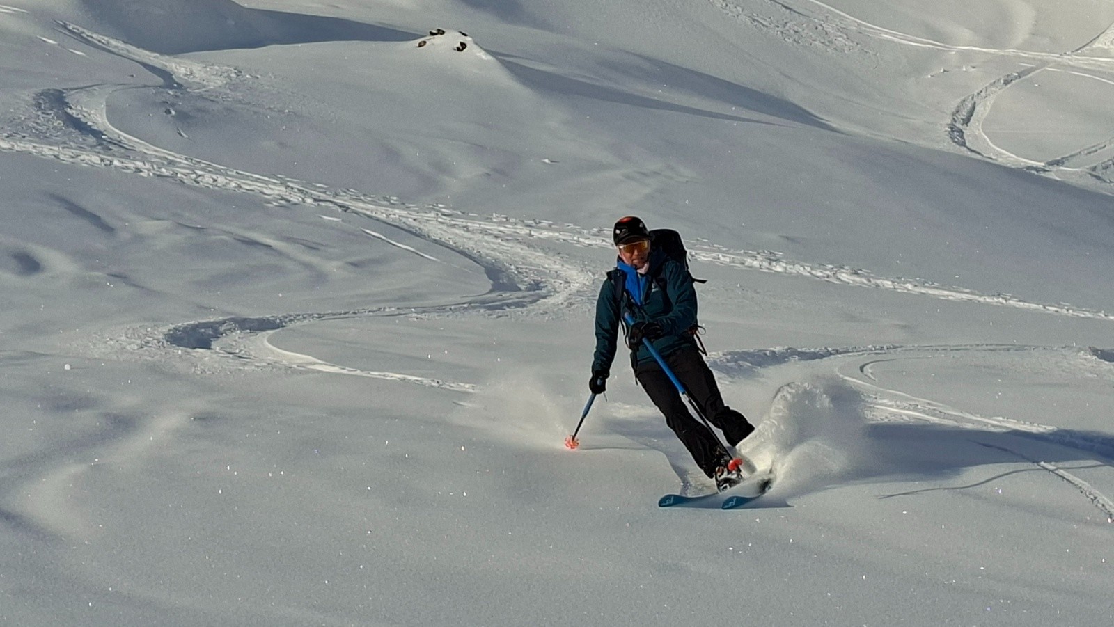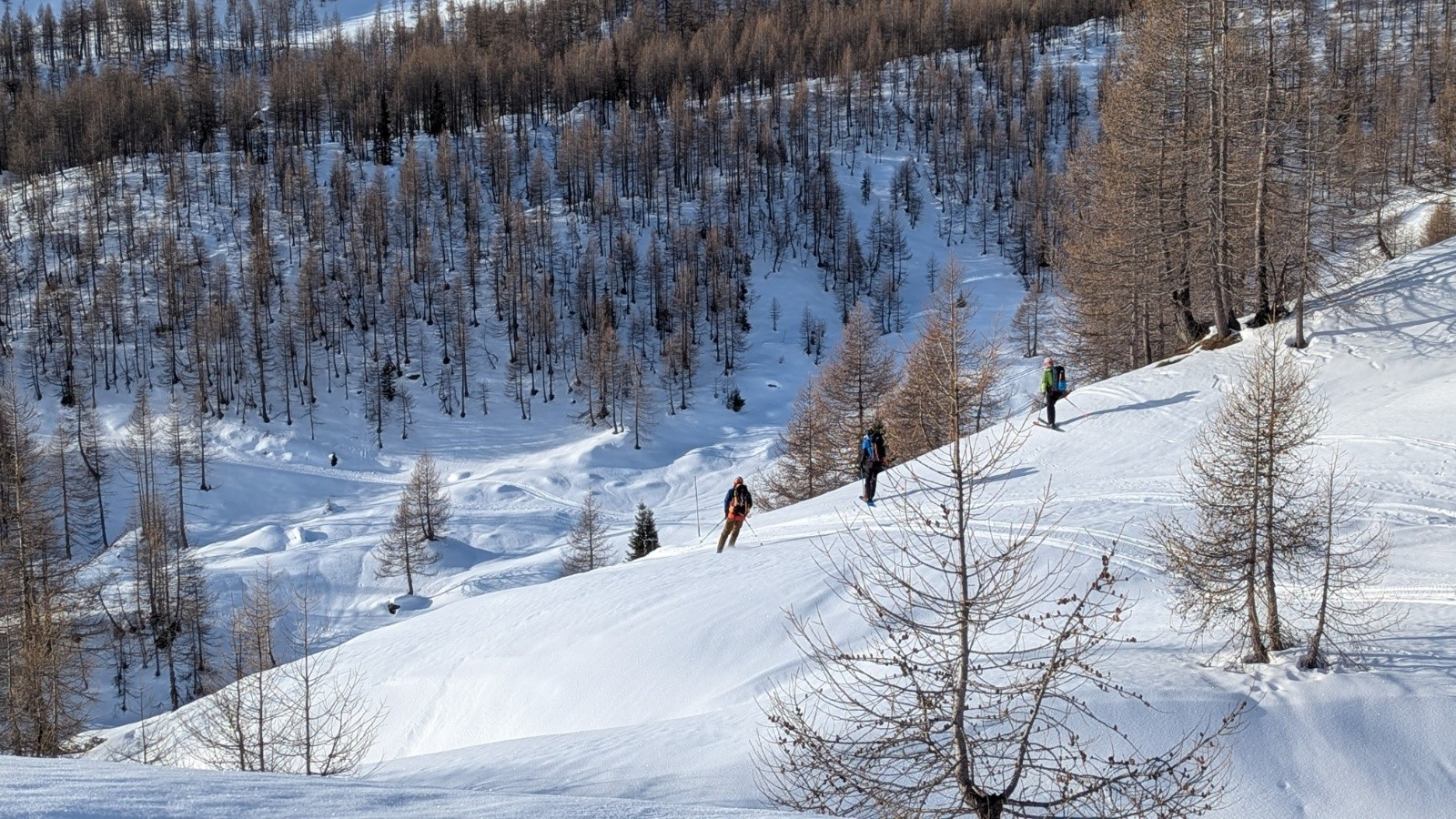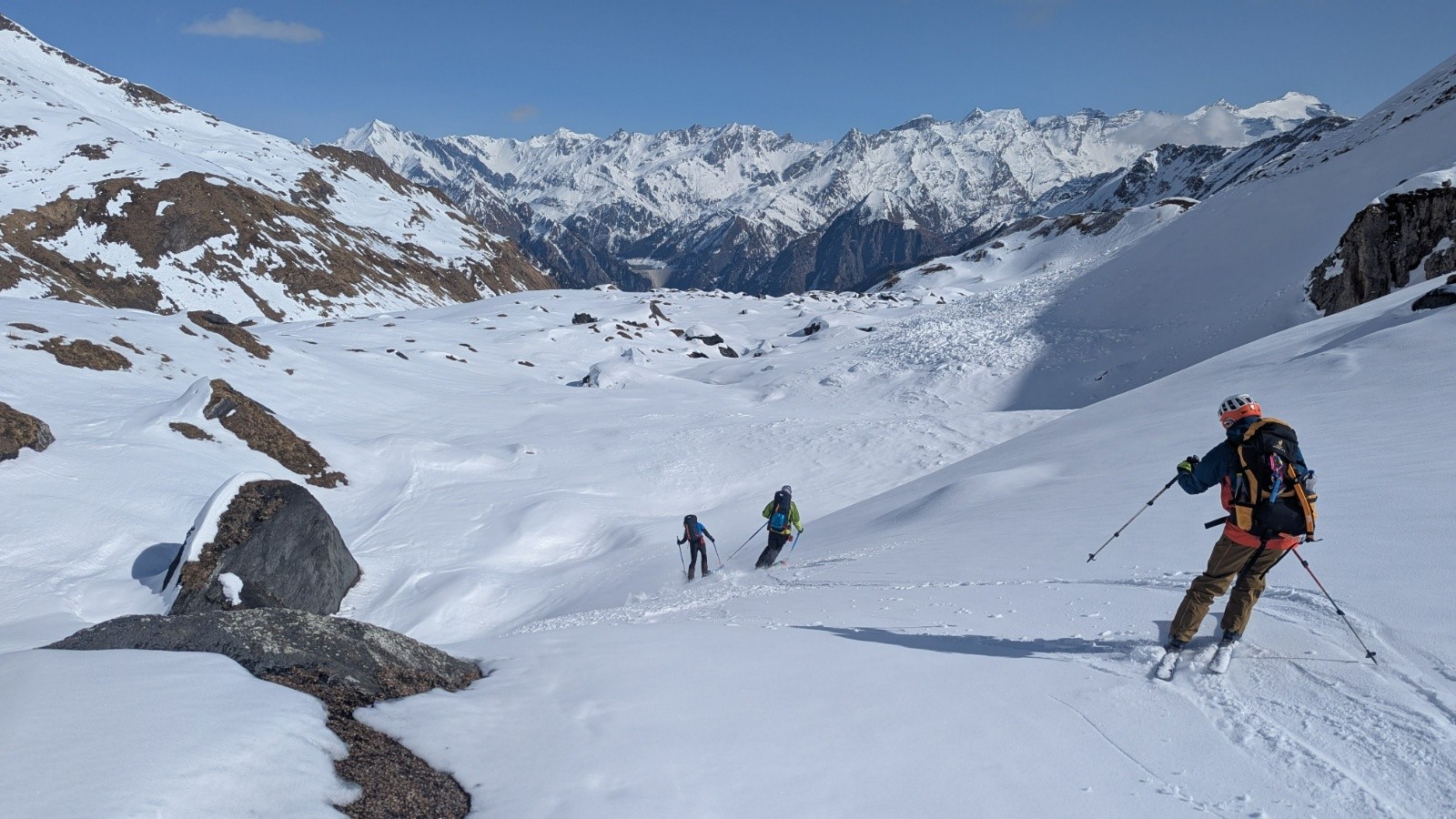 On est toujours orienté ski en privilégiant si possible des descentes Nord ou à la limite du sud en moquette plus ou moins profonde. On est étonné cette année par la différence entre les grosses chutes neigeuses de février en France et un enneigement correct mais parfois insuffisant en face sud.