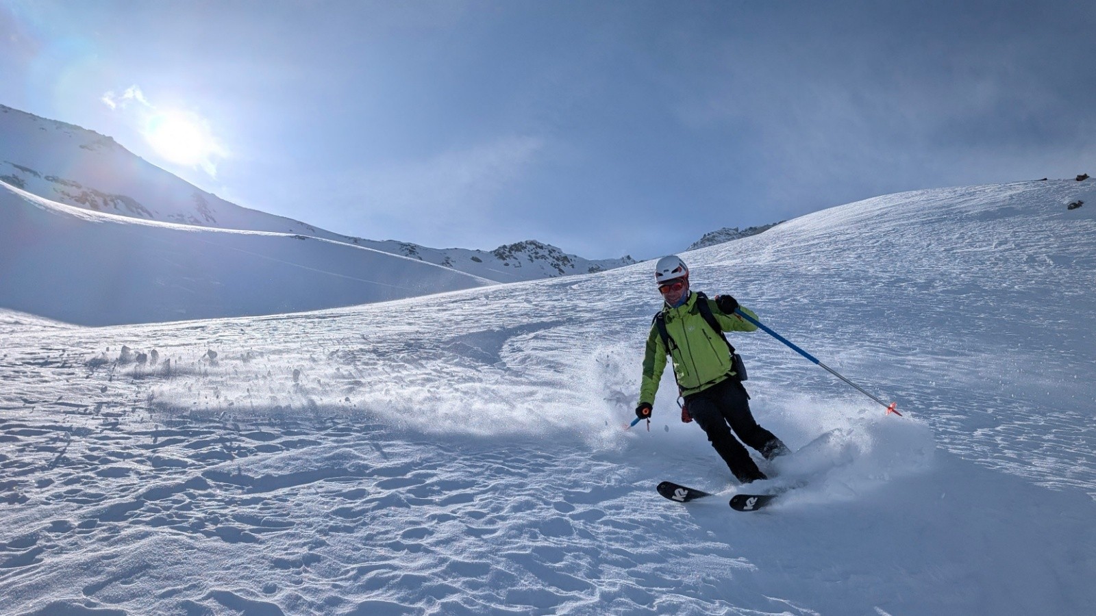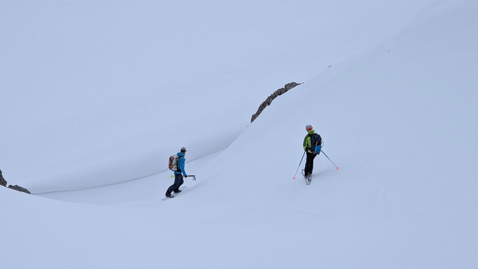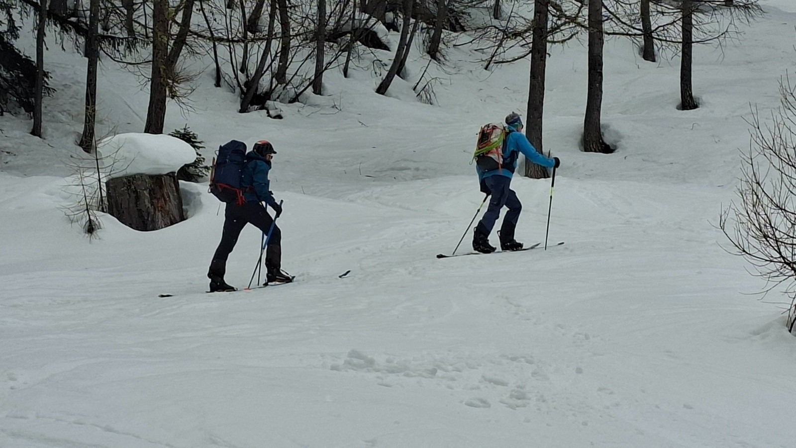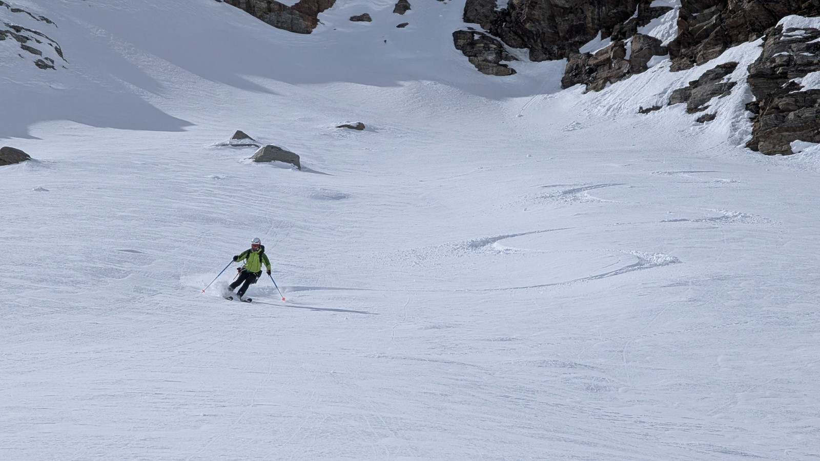 On est toujours orienté ski en privilégiant si possible des descentes Nord ou à la limite du sud en moquette plus ou moins profonde. On est étonné cette année par la différence entre les grosses chutes neigeuses de février en France et un enneigement correct mais parfois insuffisant en face sud.