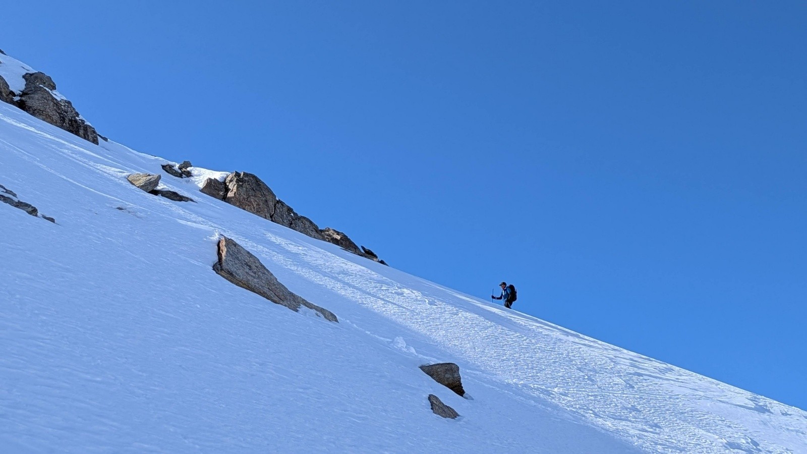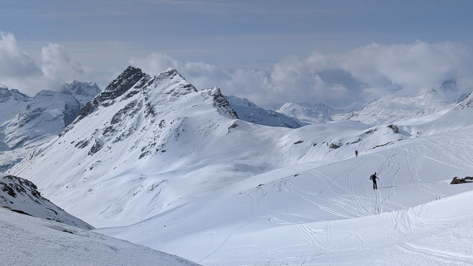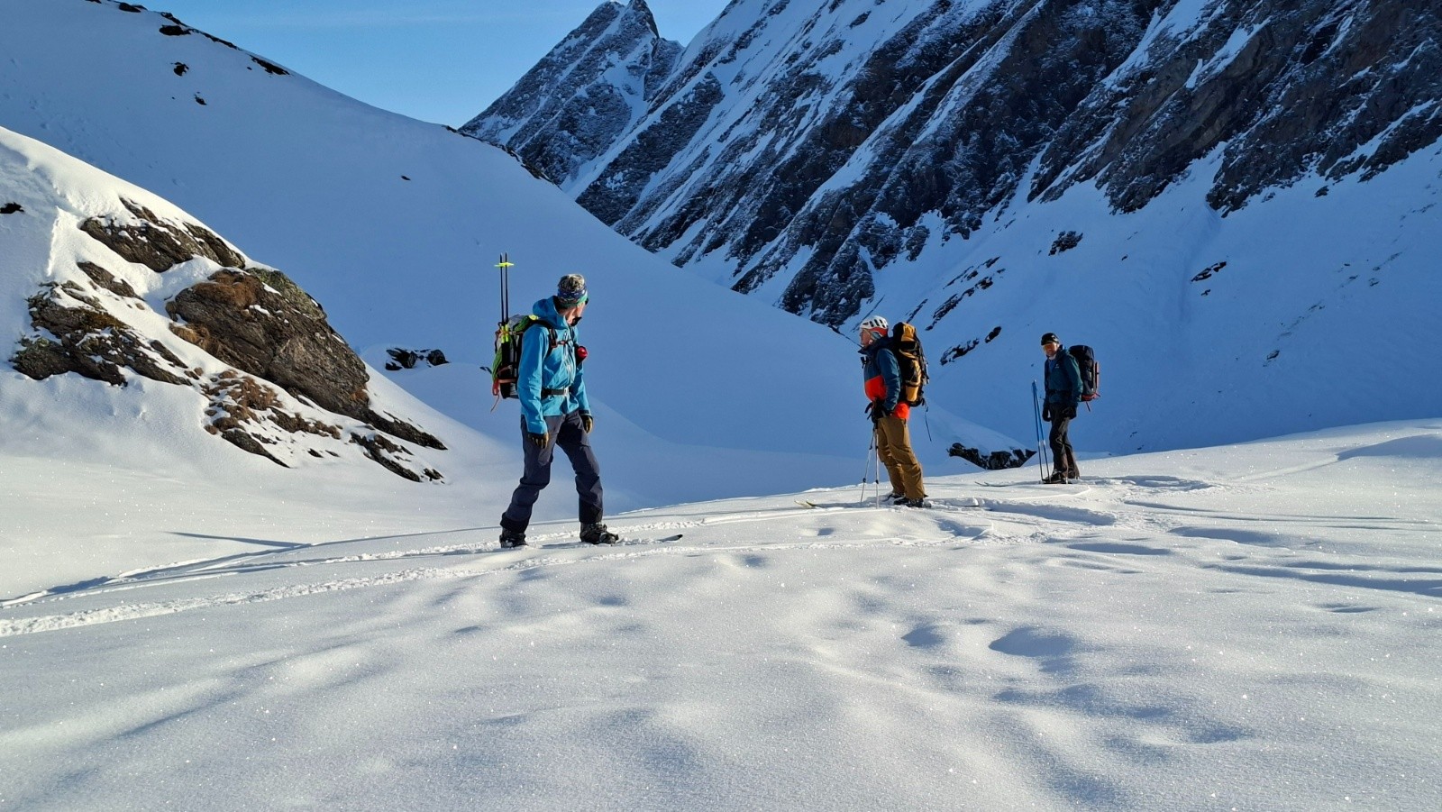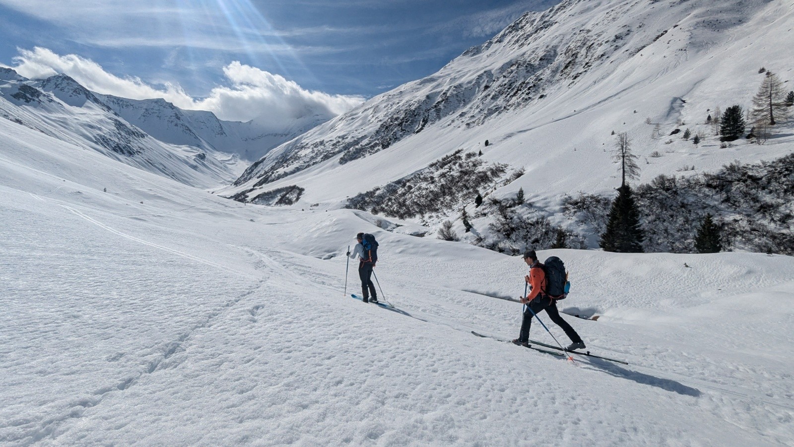 On est toujours orienté ski en privilégiant si possible des descentes Nord ou à la limite du sud en moquette plus ou moins profonde. On est étonné cette année par la différence entre les grosses chutes neigeuses de février en France et un enneigement correct mais parfois insuffisant en face sud.