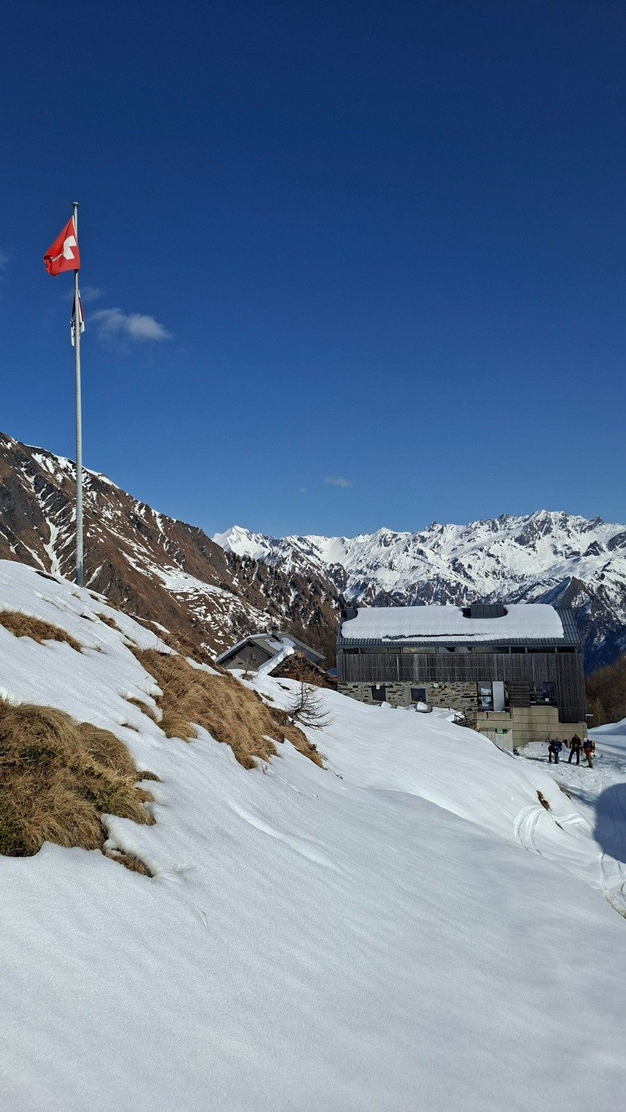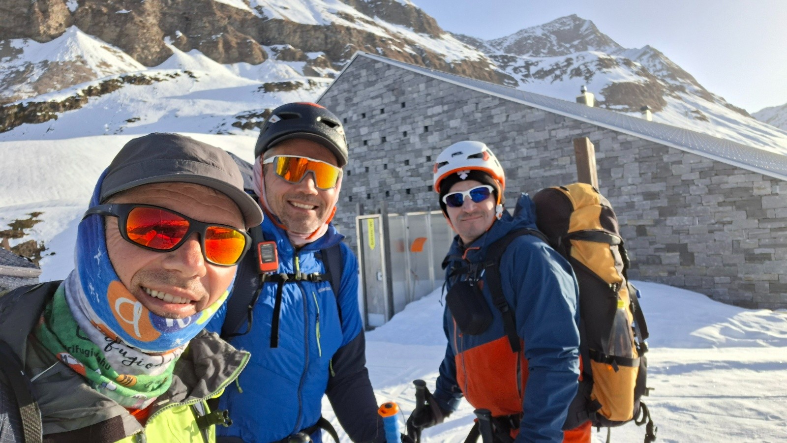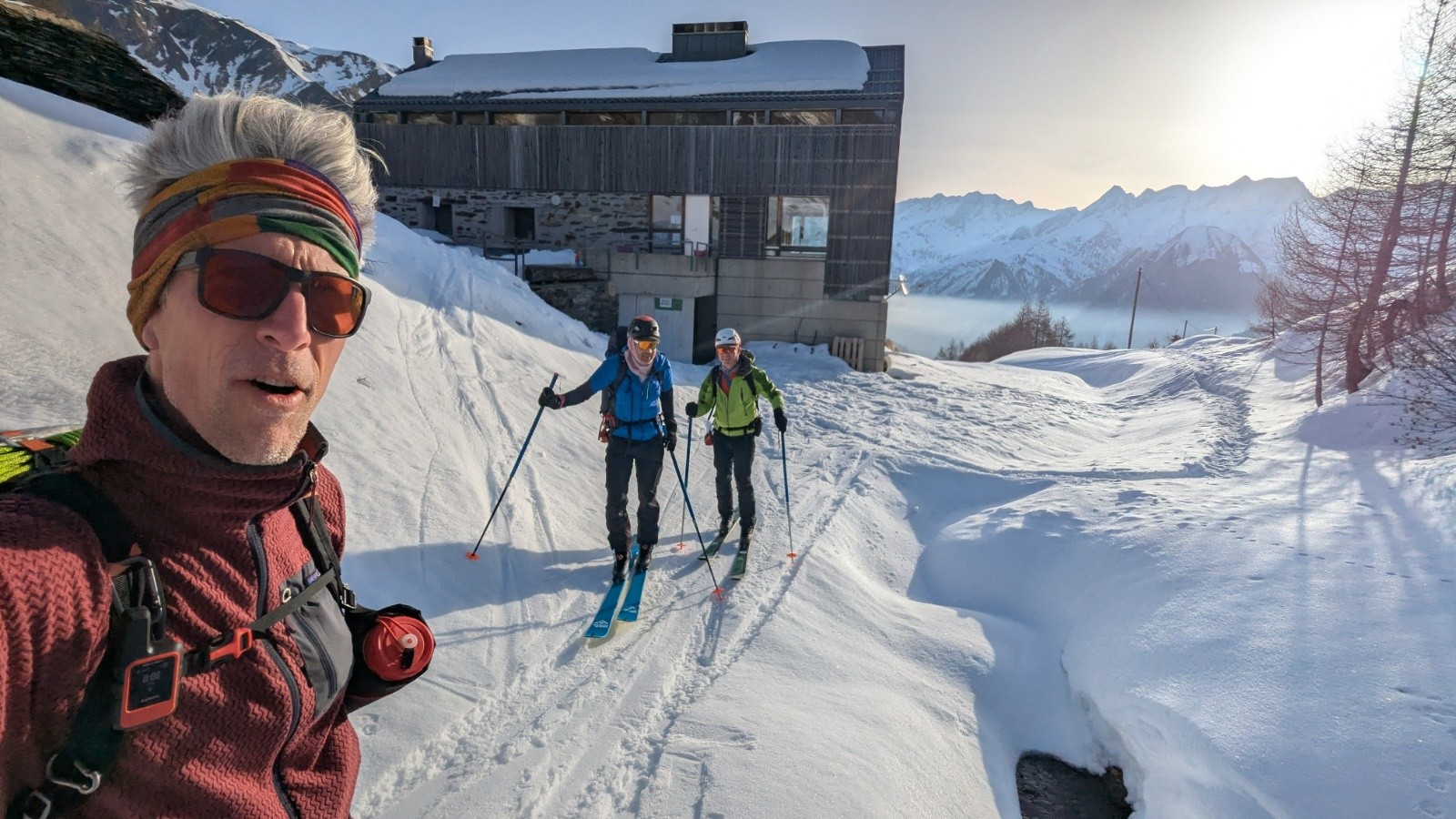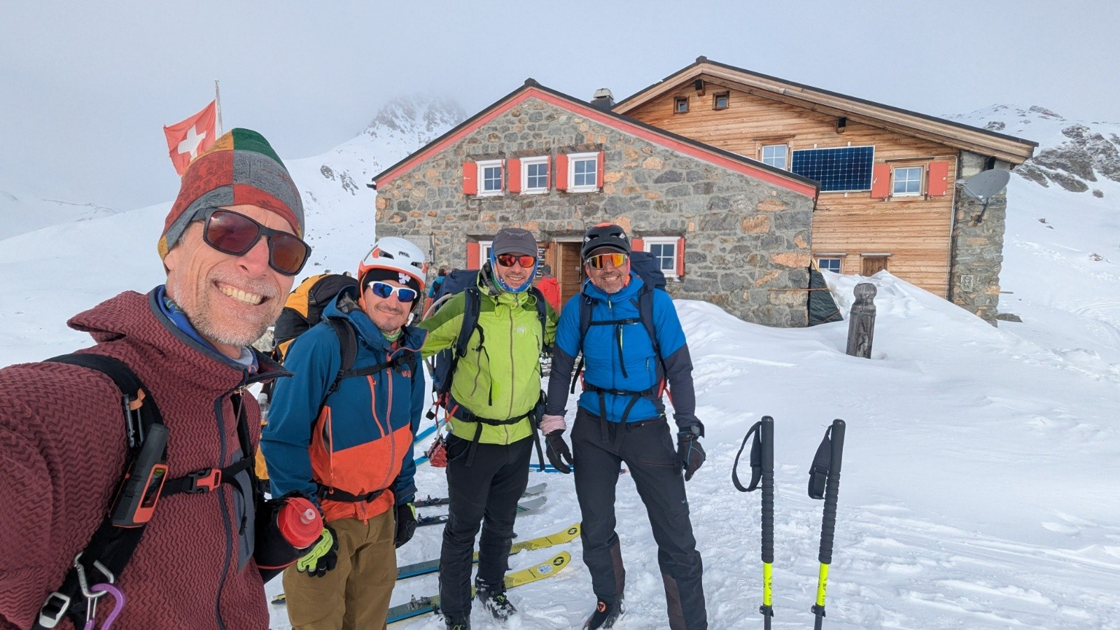 Cette année on repart de Binn, Valais Orientale et on traverse Tessin et Grisons pour arriver dans l'Engadine, pays de la luge et des images d'Épinal Suisse, entre Saint-Moritz et Susch. L'équipe s'est agrandit avec David qui a succombé à nos images, à l'envie ou tout simplement à la bonne camaraderie de cette histoire 🤩 On part sur un programme de 13 jours cette fois ci en jouant un éventuel but météo et gagner en flexibilité avec un mixte de cabanes CAS tout confort, de refuges non gardés en mode rustique, et de quelques étapes "luxe" avec hôtels pour sécher les peaux et les bonshommes.