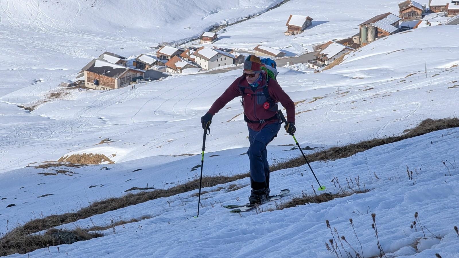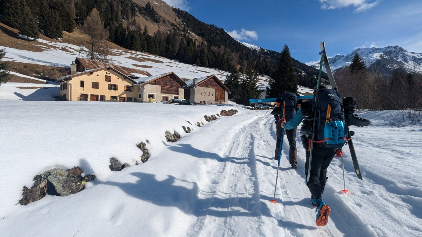 - Incroyable isolement avec 2/3 du temps à la trace et quasi personne dans les vallons. Juf et Bivio sont de véritables spots à ski de rando en plus de la luge qui semble être un loisir local important avec montée en train et descente en luge sur les kilomètres de routes fermées