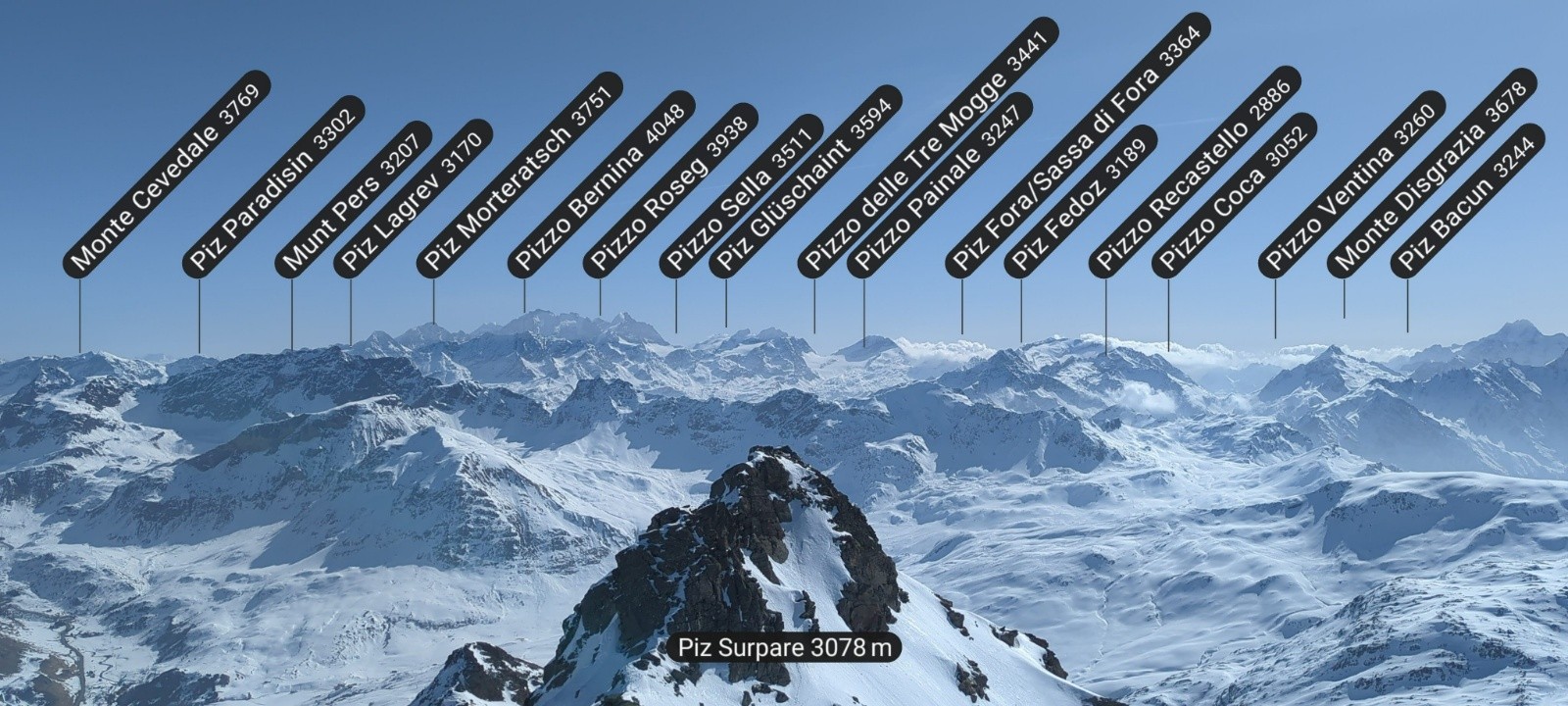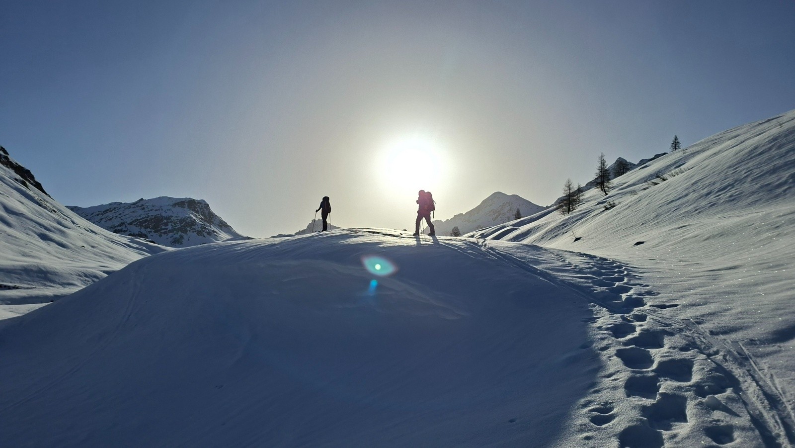 - L'instant "Aladin tapis volant" pour la descente du Fuorcla Laviner en vielle poudre encore bien conservée et où tu te demandes si tu n'as pas changé de planète et tu comprends ce qu'est l'esprit de la Traverse.