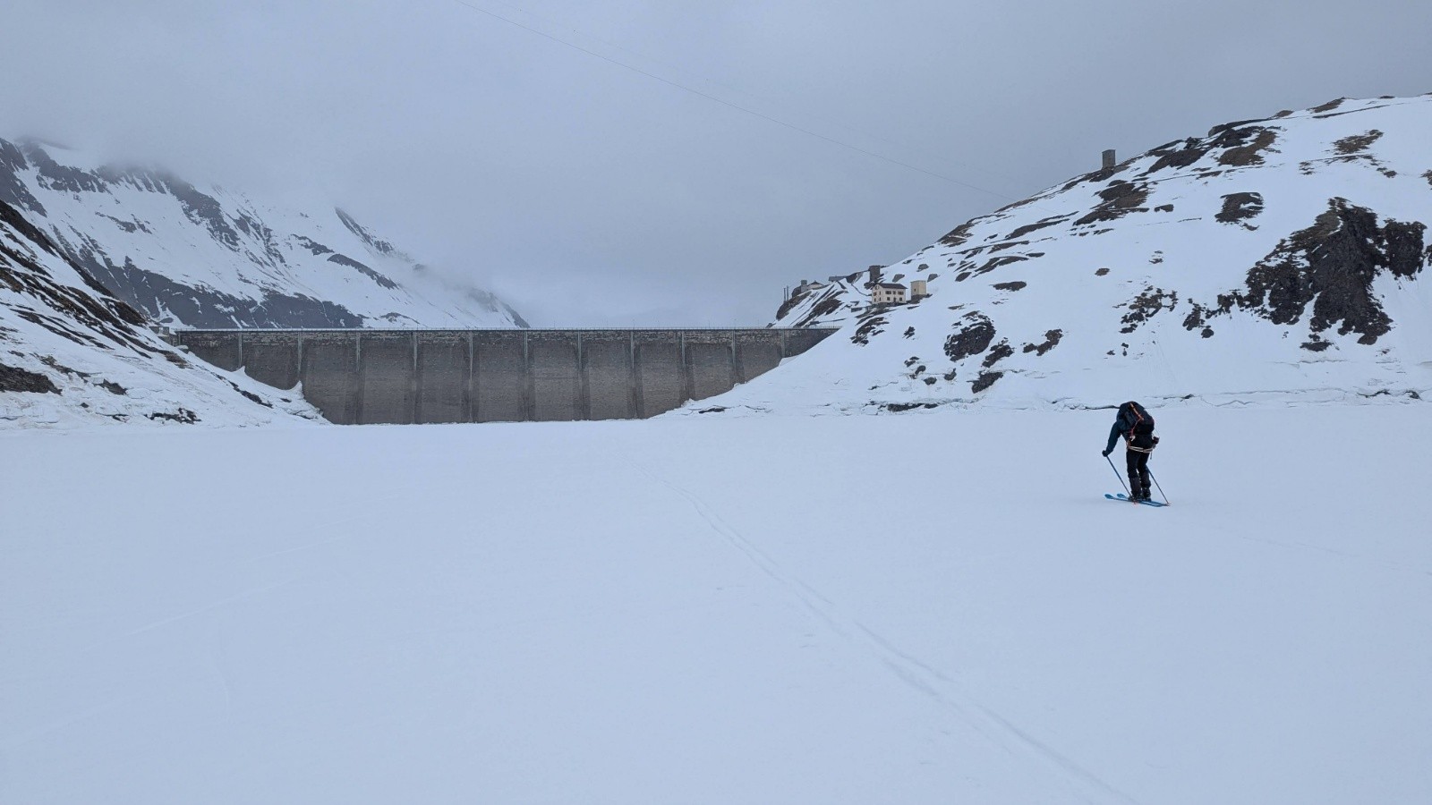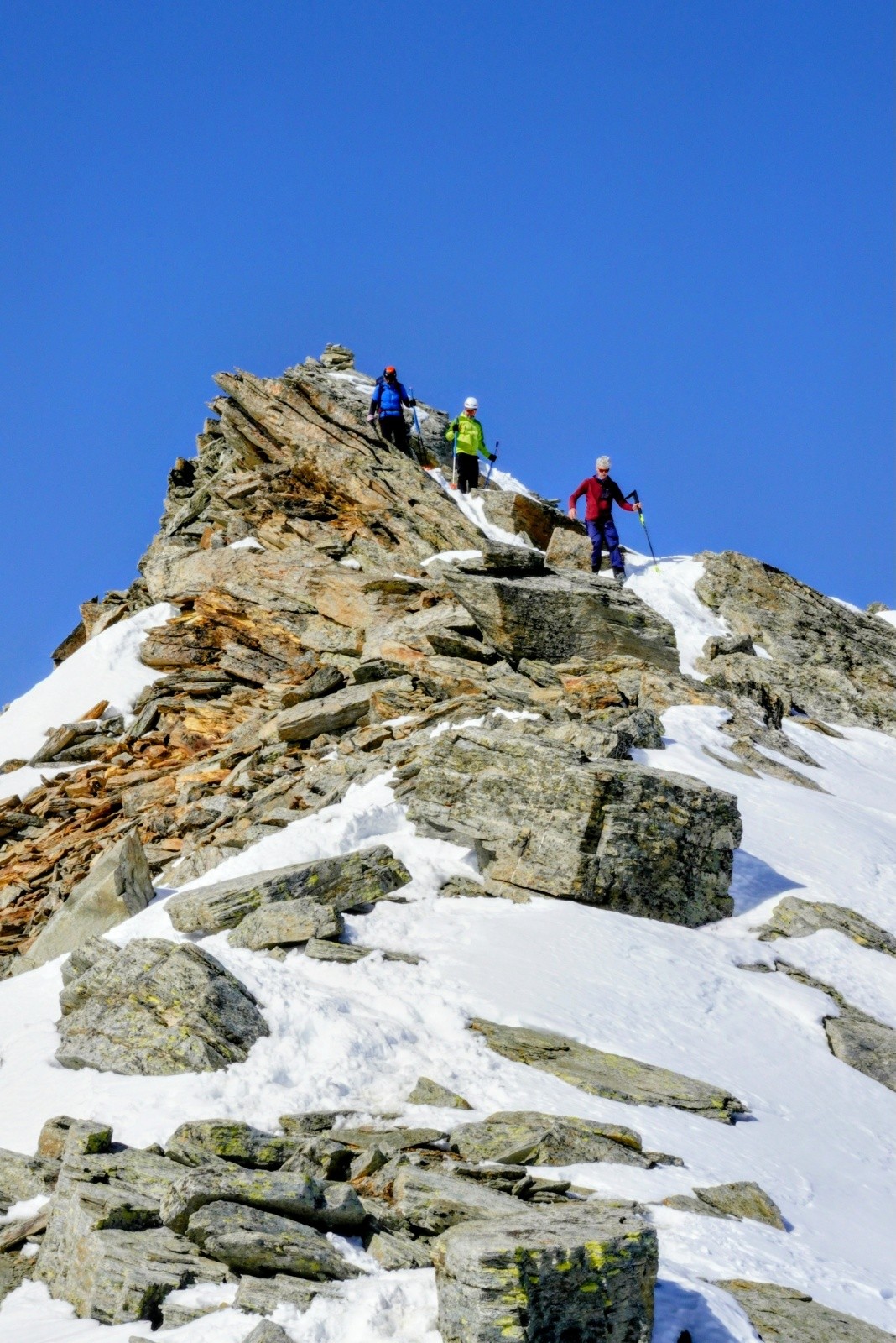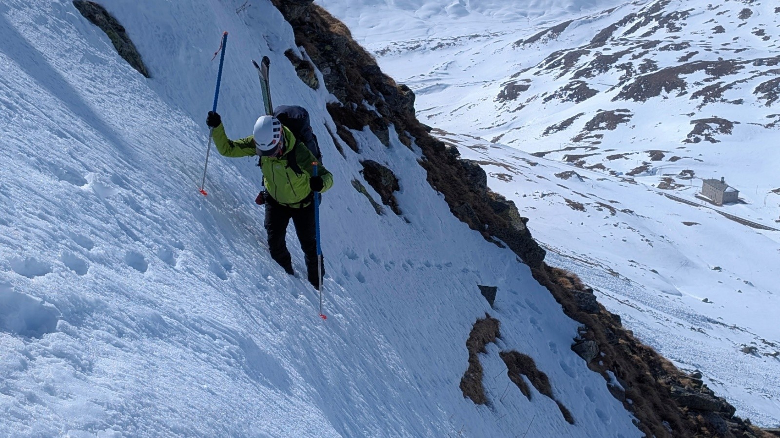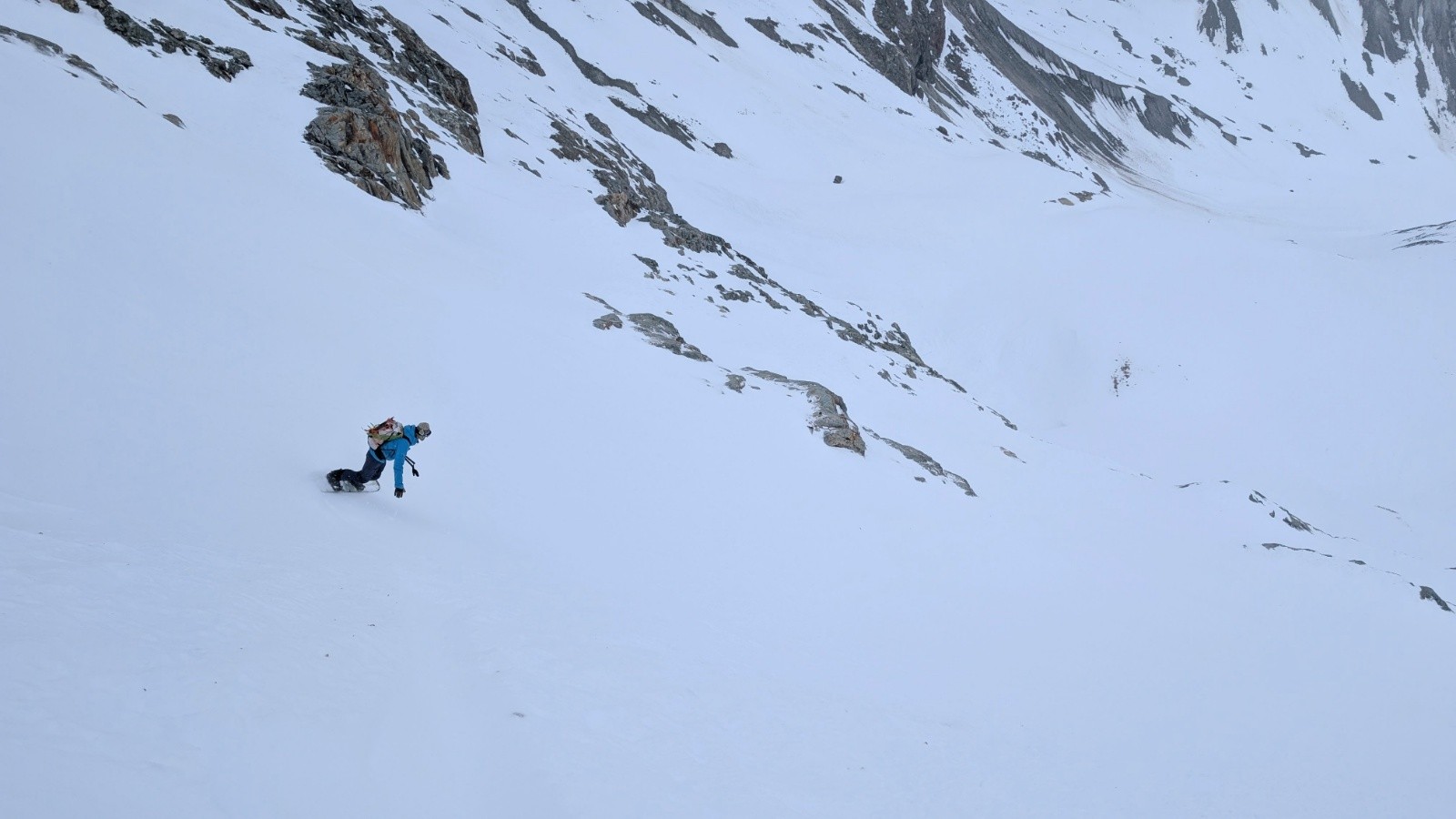 Côté avalanche, risque 2, pas mal de gros écoulements et plaques déjà en bas après les fortes chutes de février, mais rien de rédhibitoire, à part un doute et de la distance prise au Rheinwaldhorn.