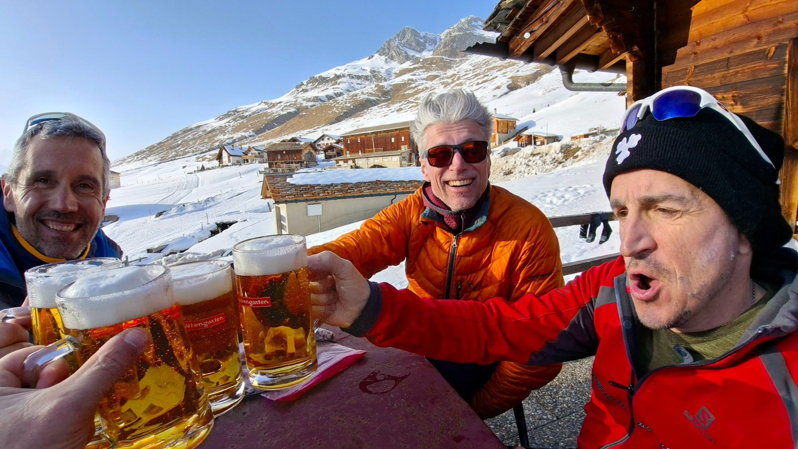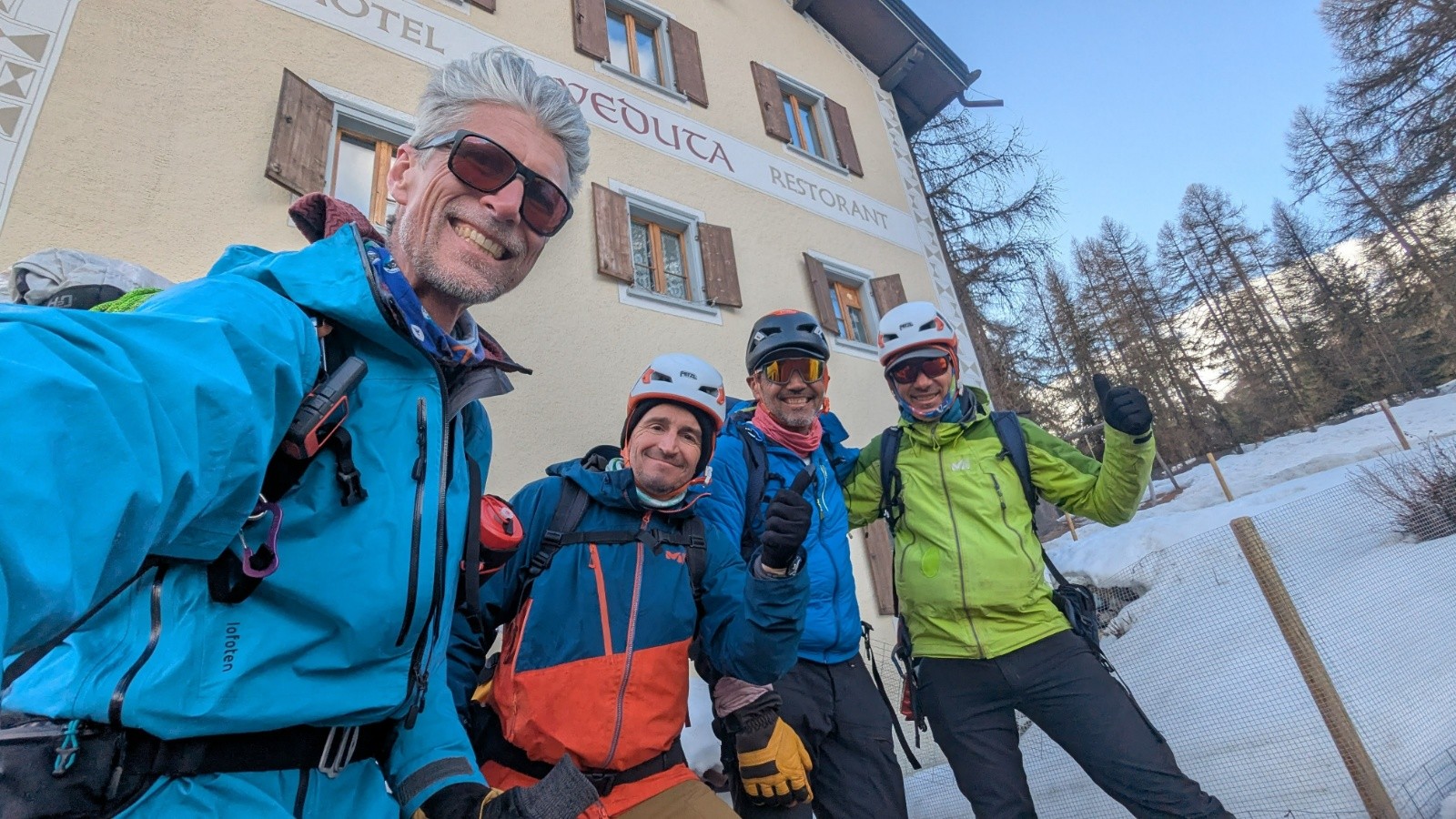 Une étape de notre GTA qui tient toutes ses promesses avec un isolement incroyables la majorité du temps, des paysages meringués, des "Ti'Hameaux" déserts, une découverte totale de cette partie de la Suisse avec toutes ses langues et dialectes et bien entendu une équipe solidaire qui fonctionne. On finit donc en Engadine un peu en aval de Saint-Moritz, entre les Mercedes et les lugeurs du dimanche, avec des kilomètres de skating et des pulls en laine comme dans Martine chez les Helvètes 😂 Une grande certitude certitude : vivement l'Autriche l'an prochain.
