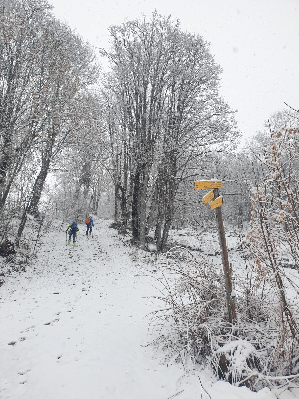 Altitude de chaussage/déchaussage : 1350 - peu voire pas de sous couche jusqu'à la chapelle (environ 1600), mais ça passait par les alpages, à la montee comme à la descente, en rapant parfois les skis à la descente.