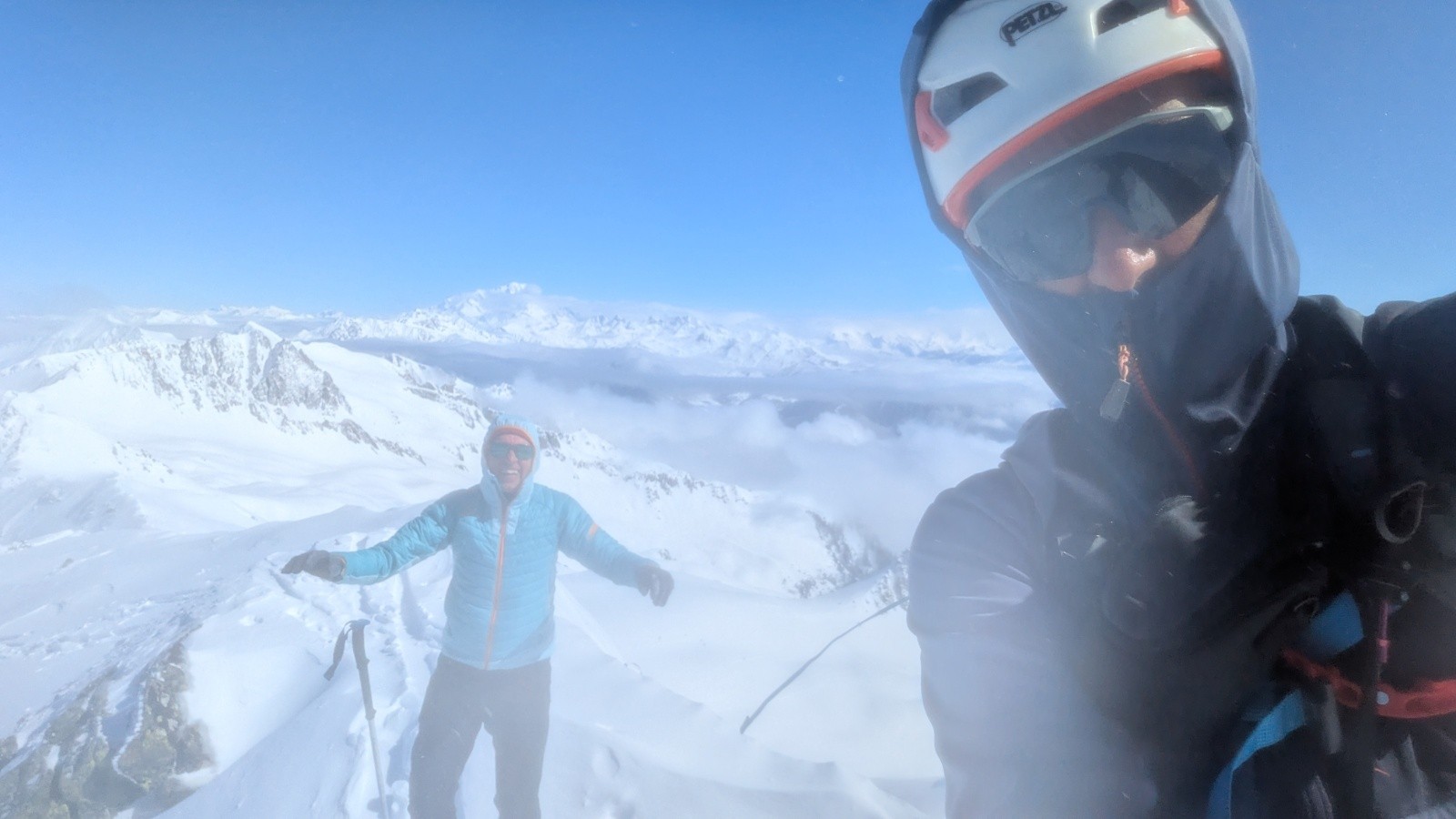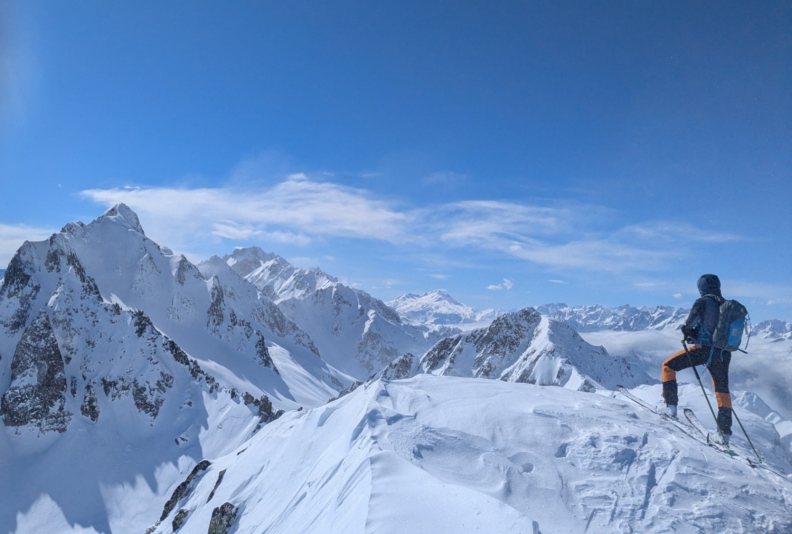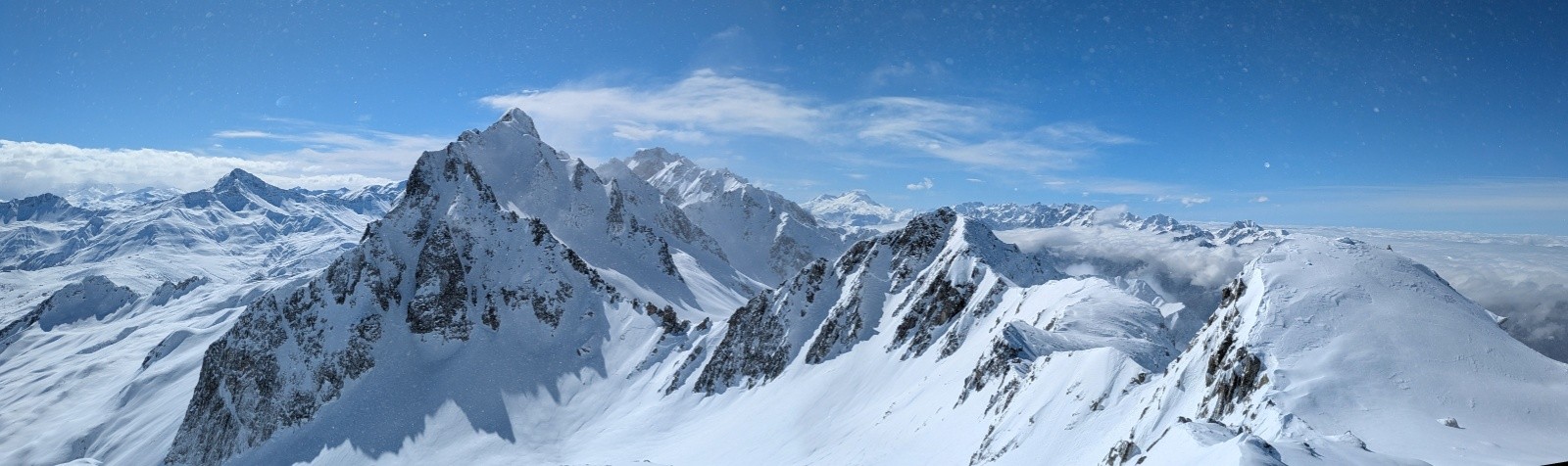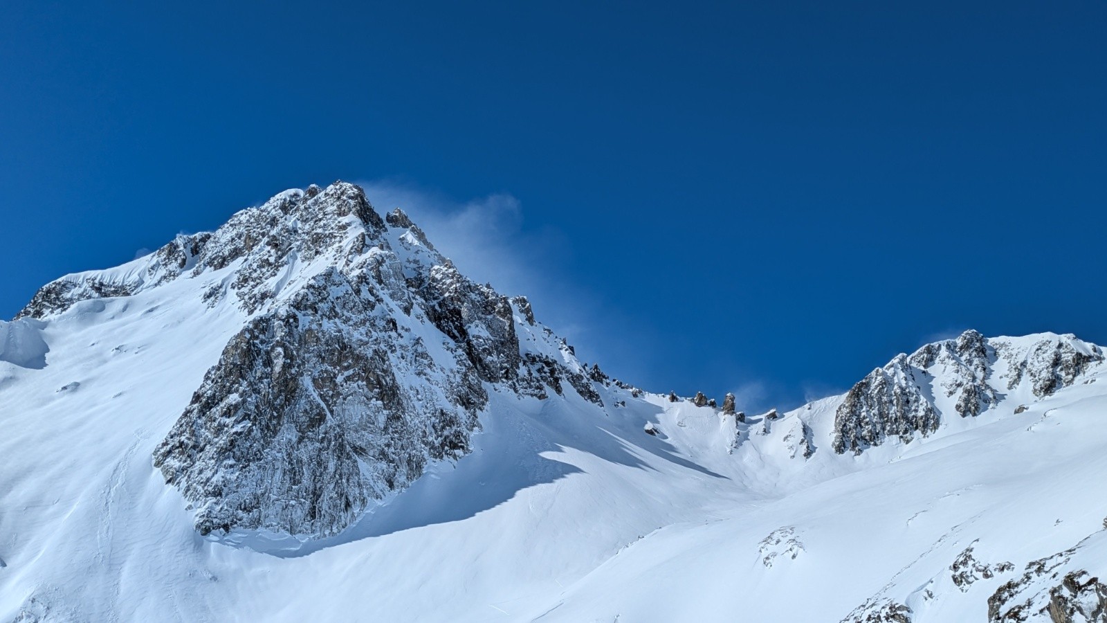 Conditions pour le ski : très bon mais juste à la montée. Poudre lourde et un peu collante au soleil. Très travaillé par le vent à l'ombre