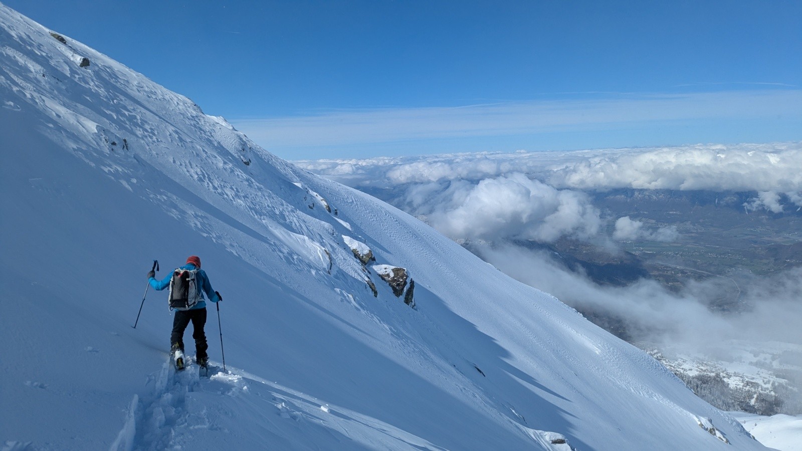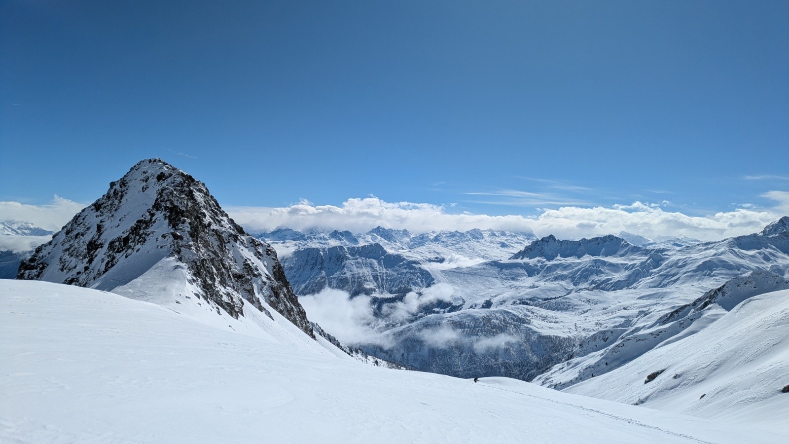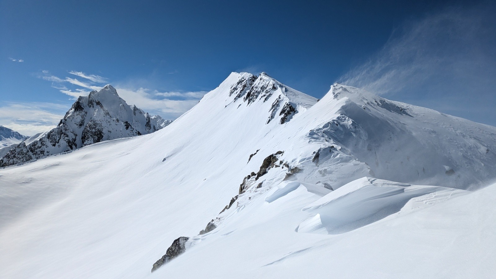 Conditions pour le ski : très bon mais juste à la montée. Poudre lourde et un peu collante au soleil. Très travaillé par le vent à l'ombre