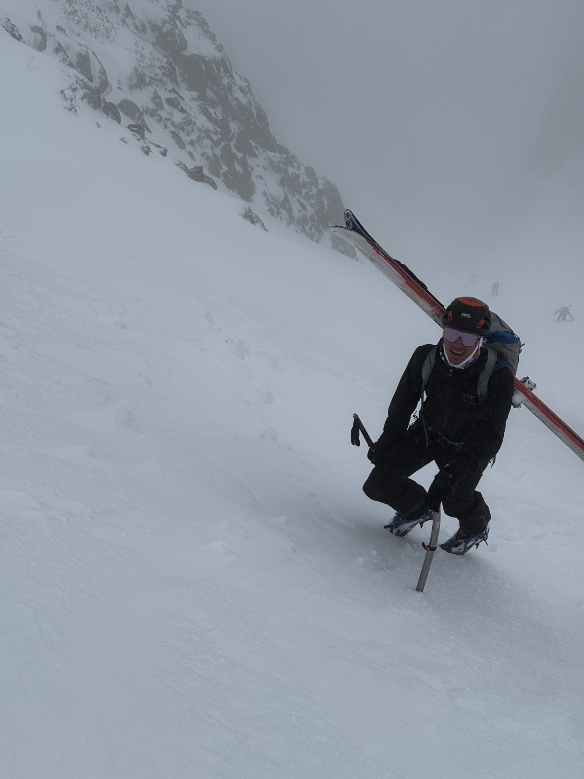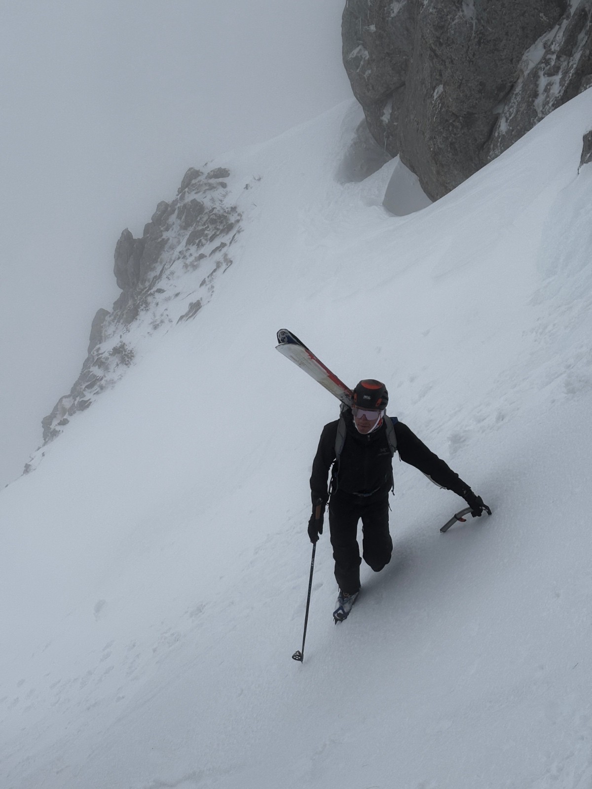 Il y a eu du vent, et on commence à se poser des questions sur la nivo, mais le contact à la neige est plutôt rassurant, et le couloir plus à l'abri.