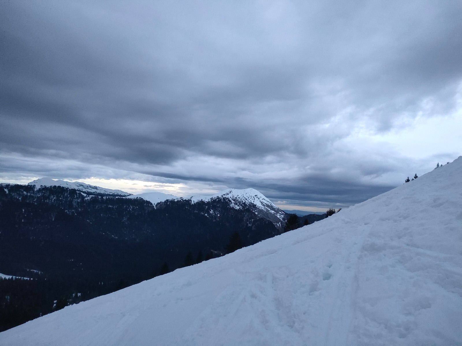 Conditions pour le ski : Au-delà de la forêt, une pure infâmie de neige croutée, en dessous neige humide assez agréable