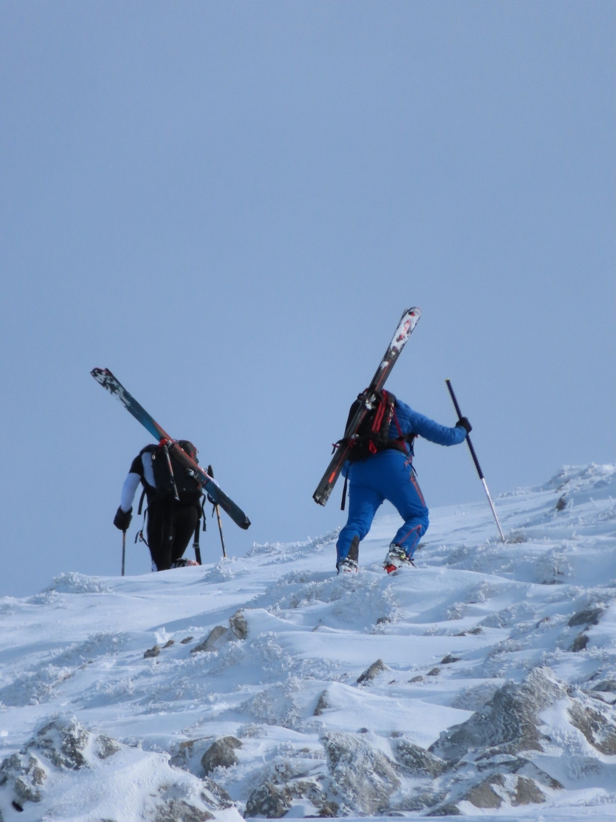 Altitude de chaussage/déchaussage : chaussage a la voiture à la montée. montée par la crète SO à pied, peu enneigée. descente à ski jusqu'à la foret puis à pied (faute de sous couche)