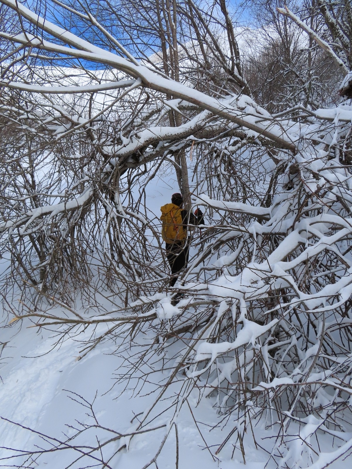 passé le col de la Cochette, neige très lourde jusqu'à l'orée de la forêt puis descente à pied.