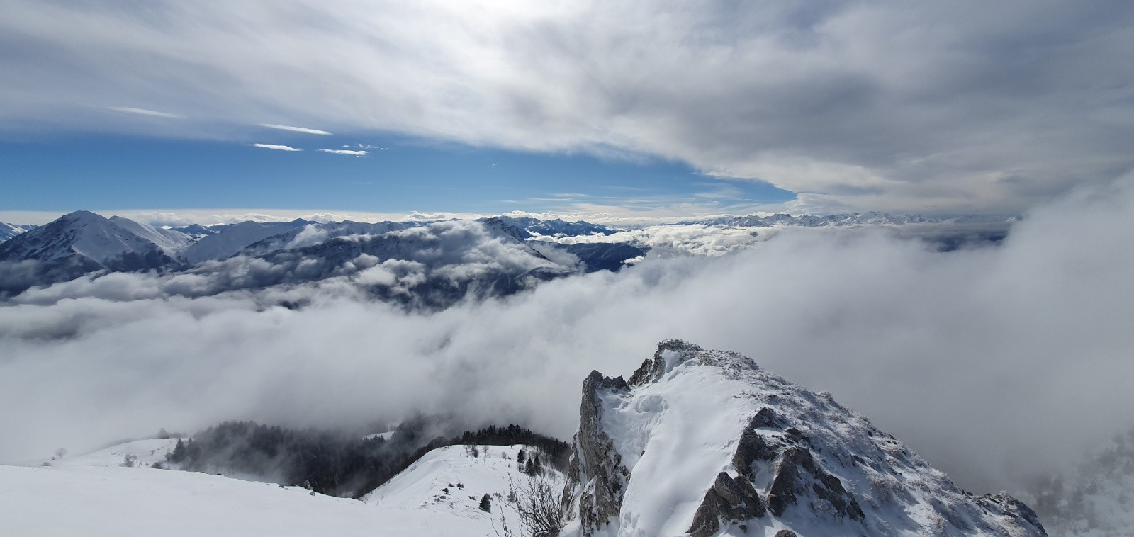 neige ventée au bord des crètes, on sent que ça a soufflé du nord.