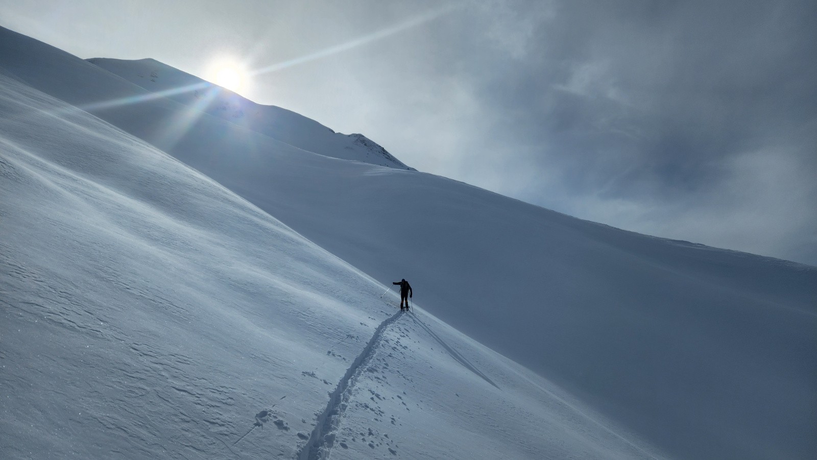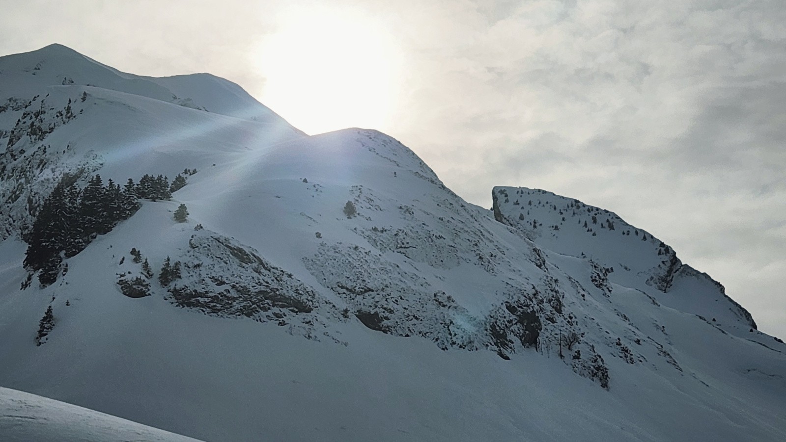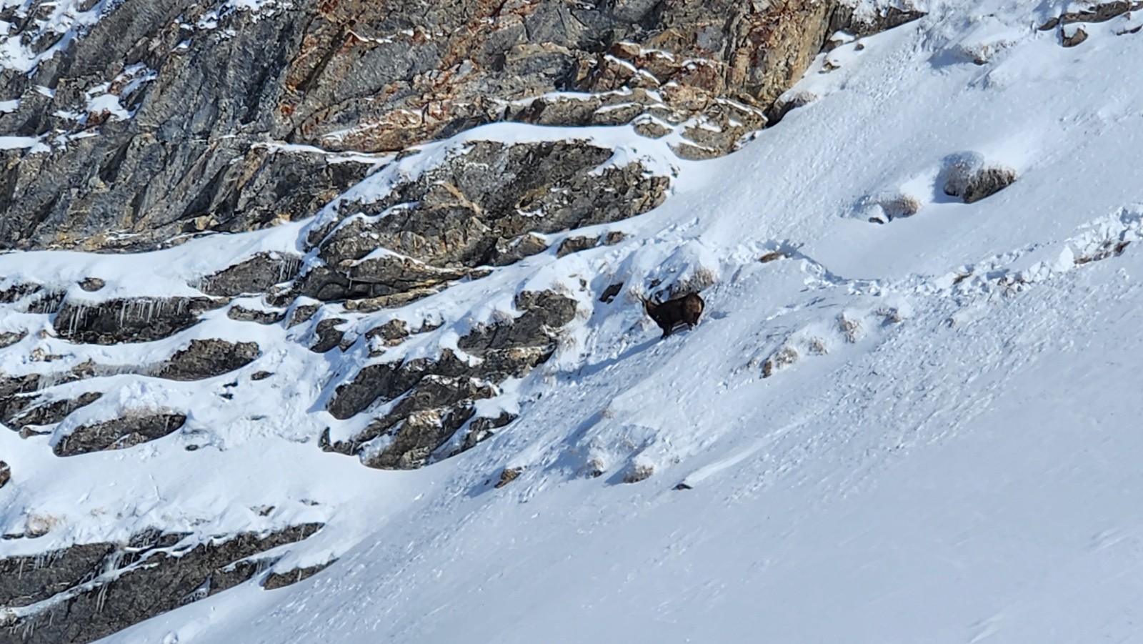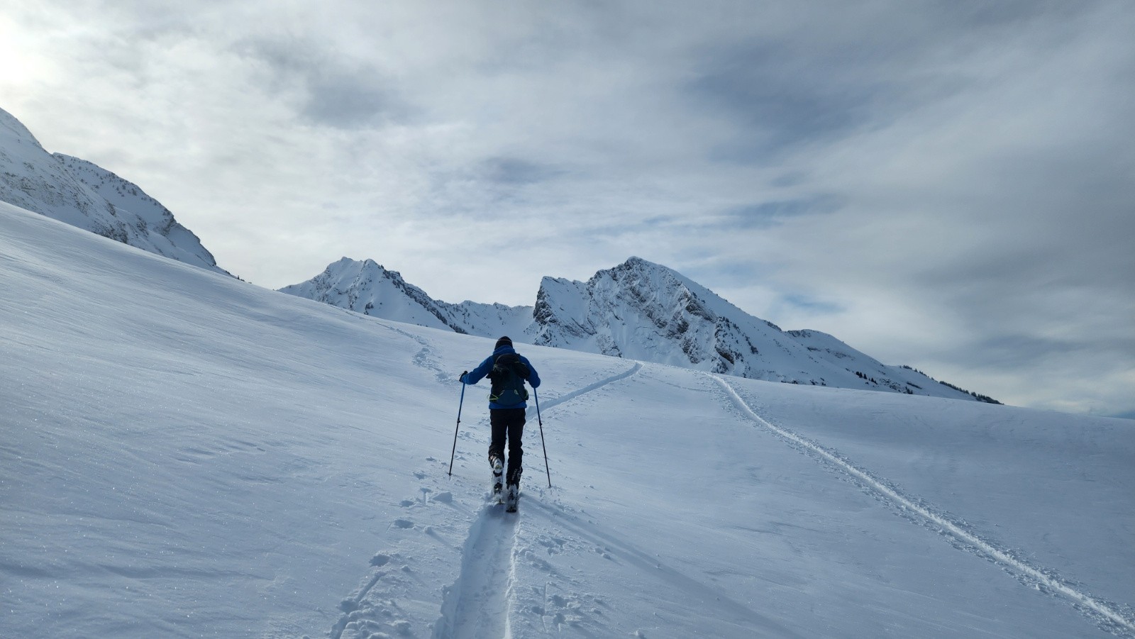 Conditions pour le ski : Bonne poudre, très légèrement durcie en surface à quelques endroits mais globalement excellent. Sur le dernier champ, on sent un peu les vieilles traces mais ça reste bon.