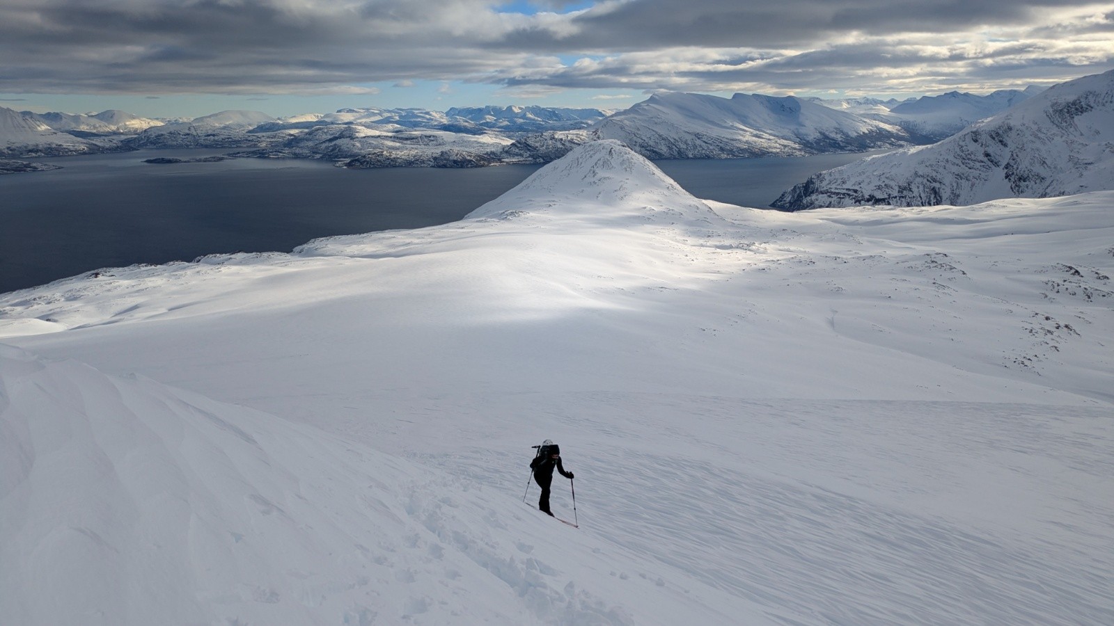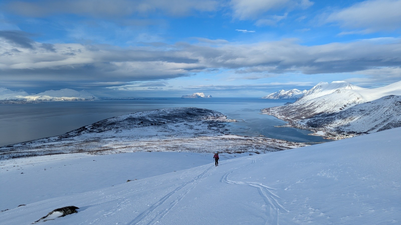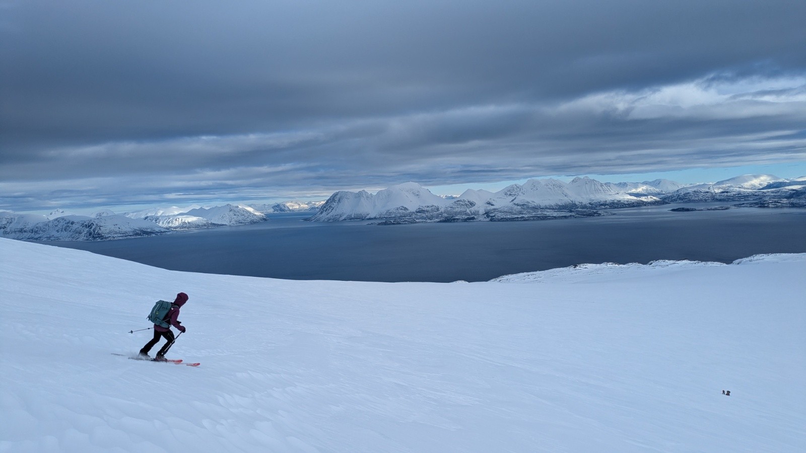 1er jour d'un séjour en Norvège, on découvre les alpes de lyngen et le plaisir de skier en partant de la plage! On a de la chance avec la météo pour le moment du coup on en profite !