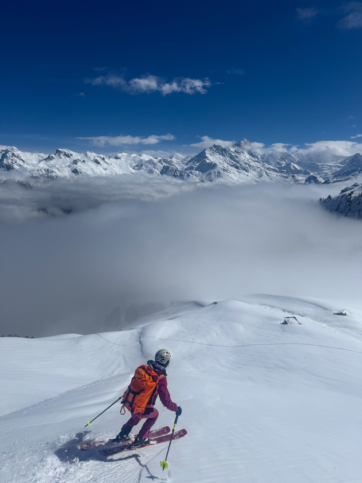 Conditions pour le ski : magnifique conditions poudreuse entré légère et lourde mais toujours agréable à skier , piste crêt du midi Vercorin en conditions merveilleuse !!