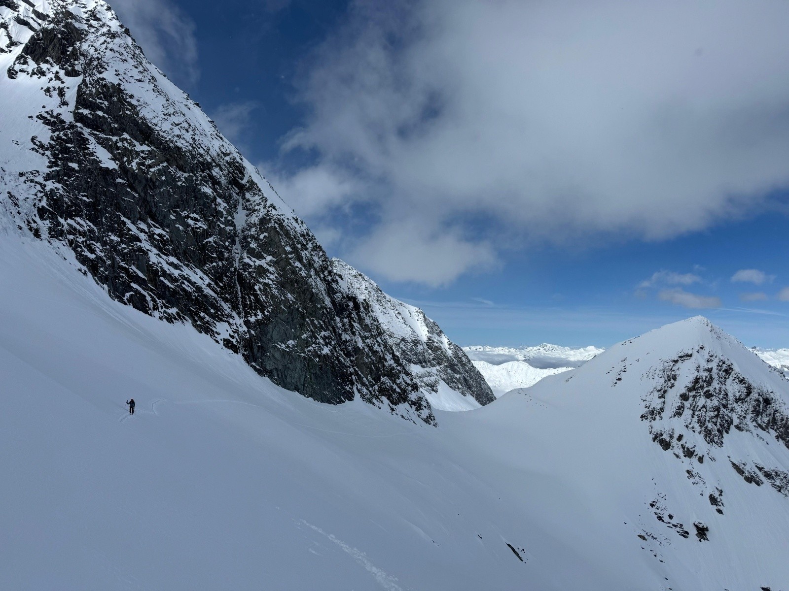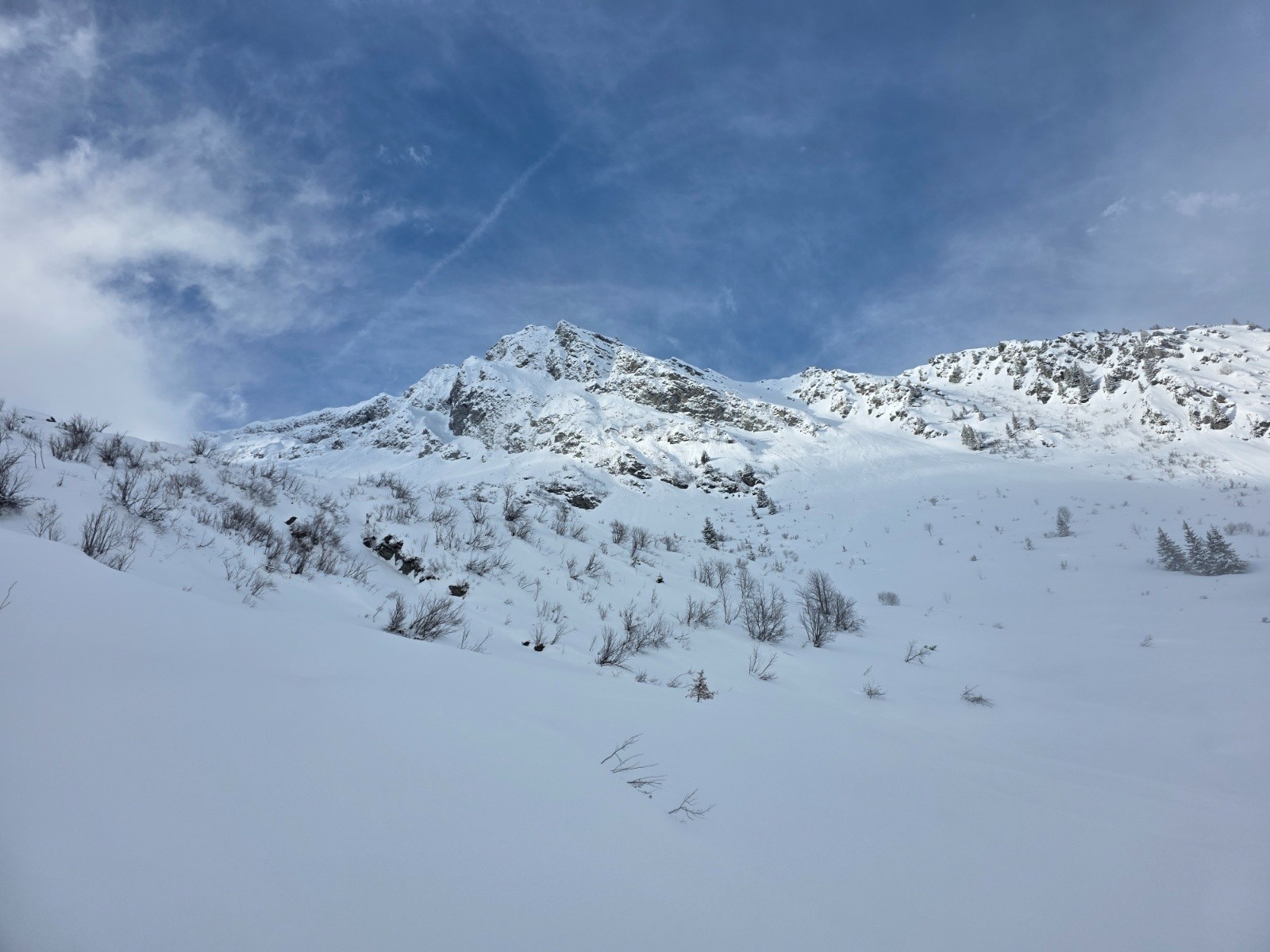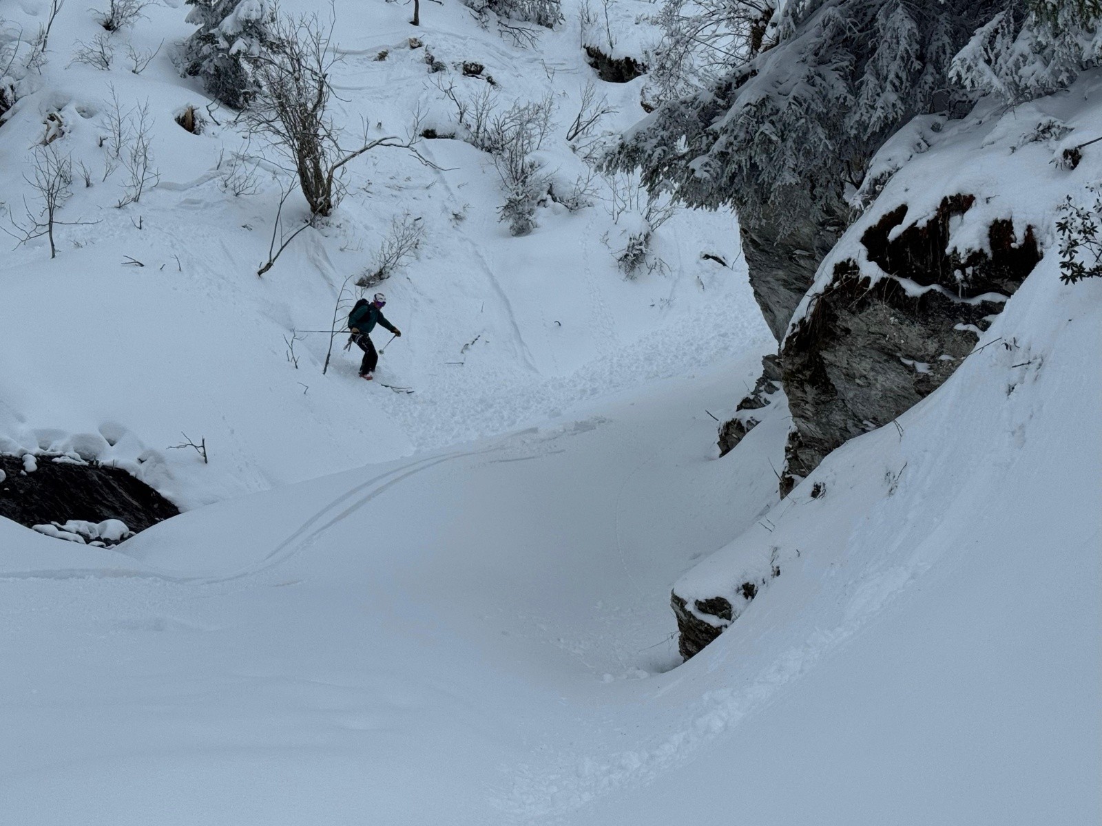 Conditions nivo et activité avalancheuse : nombreuses coulees sur les zones raides ancienne pida en cours à la plagne (ambiance) vent soufflant sud ouest, 1 cassure a la descente 20cm sur 5m nous amenant à changer d'orientation
