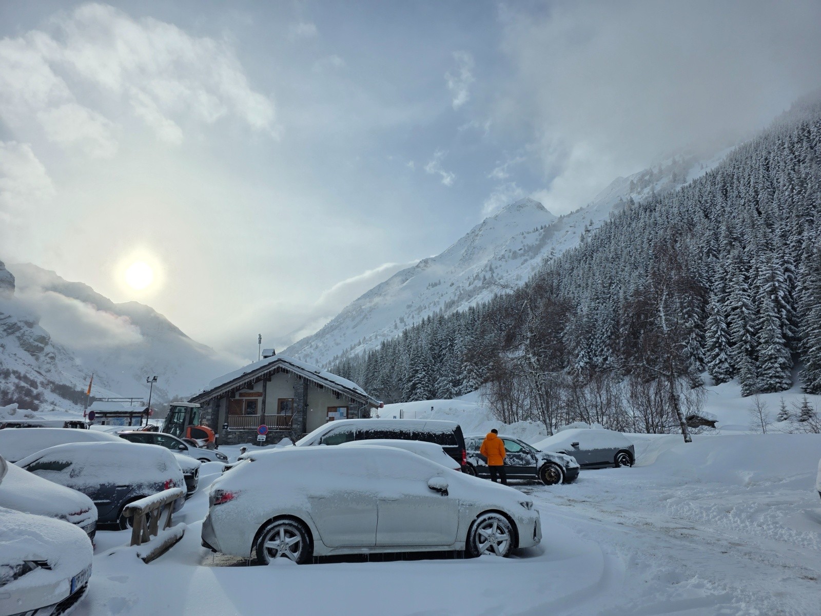 Conditions d'accès/altitude du parking : route en cours de dégagement au matin, complètement dégagé l'après midi