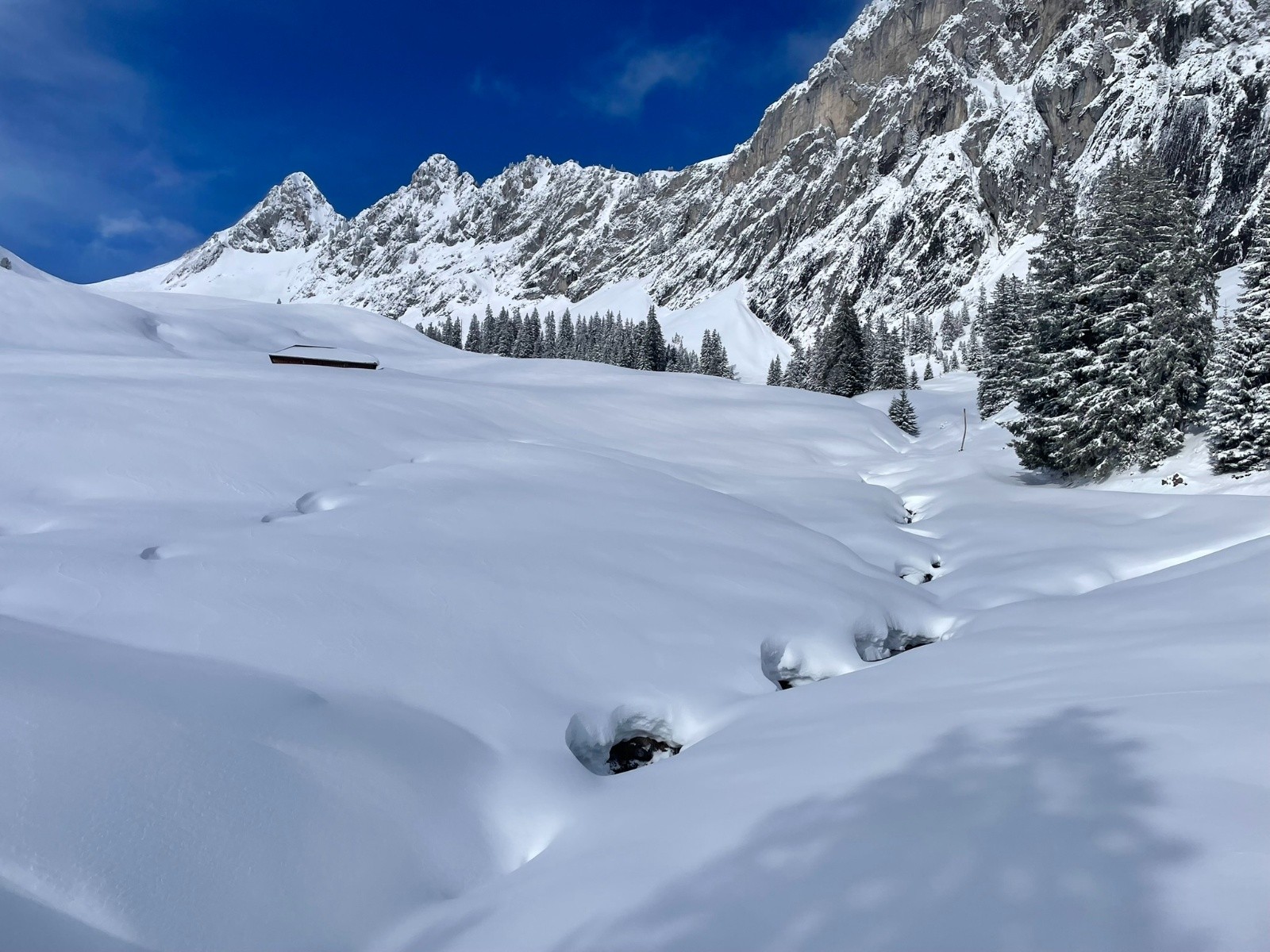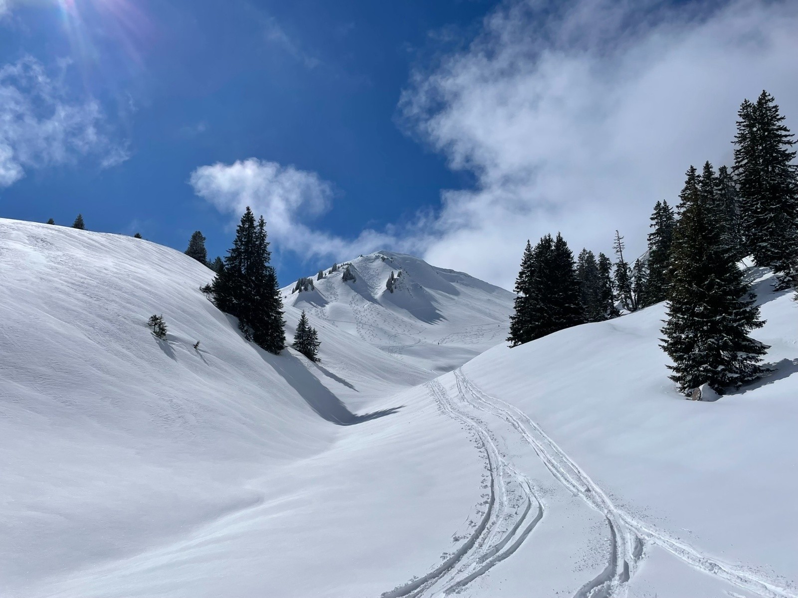 J'hésite un peu à mettre les peaux pour aller à la Wandflue, mais finalement je décide d'aller explorer une autre descente du Husegg.
